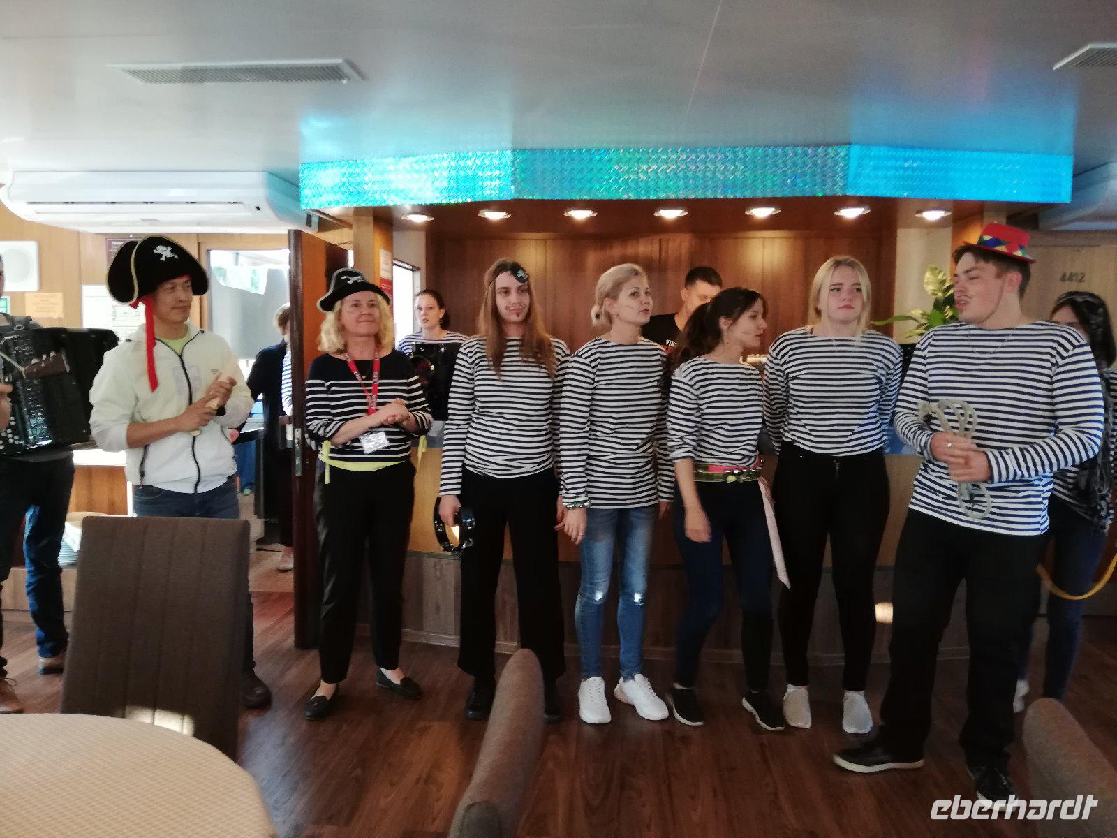 Am Nachmittag trifft sich unsere Gruppe zum Quiz auf Deutsch zu Fragen über Russland und wir sind gut. Danach gibt es eine kurze Chorprobe für den heutigen Piratenabend an Bord.
