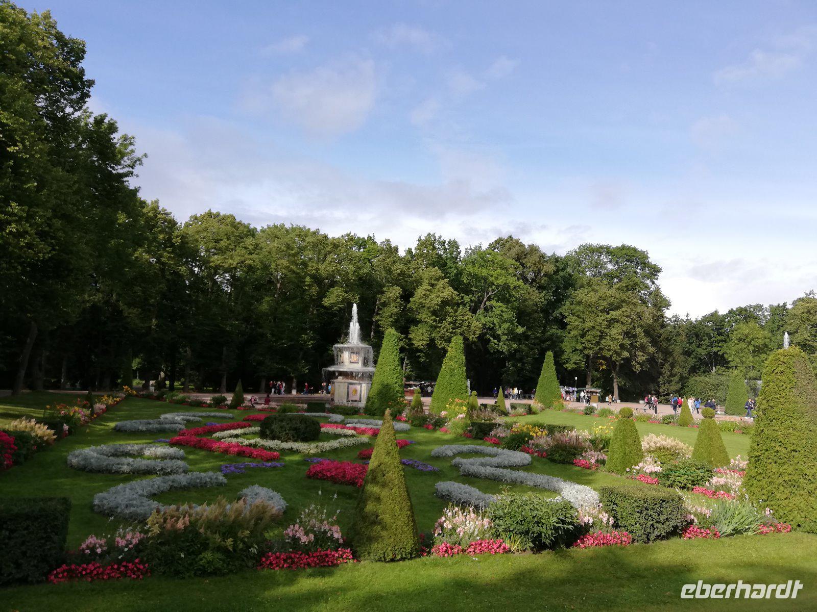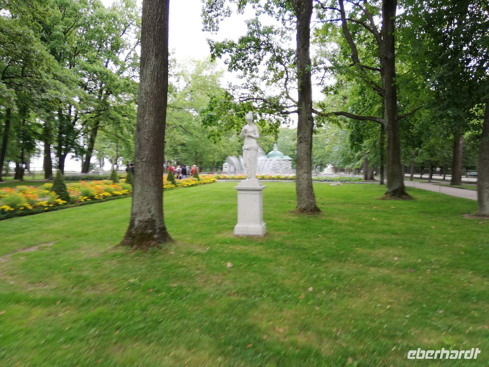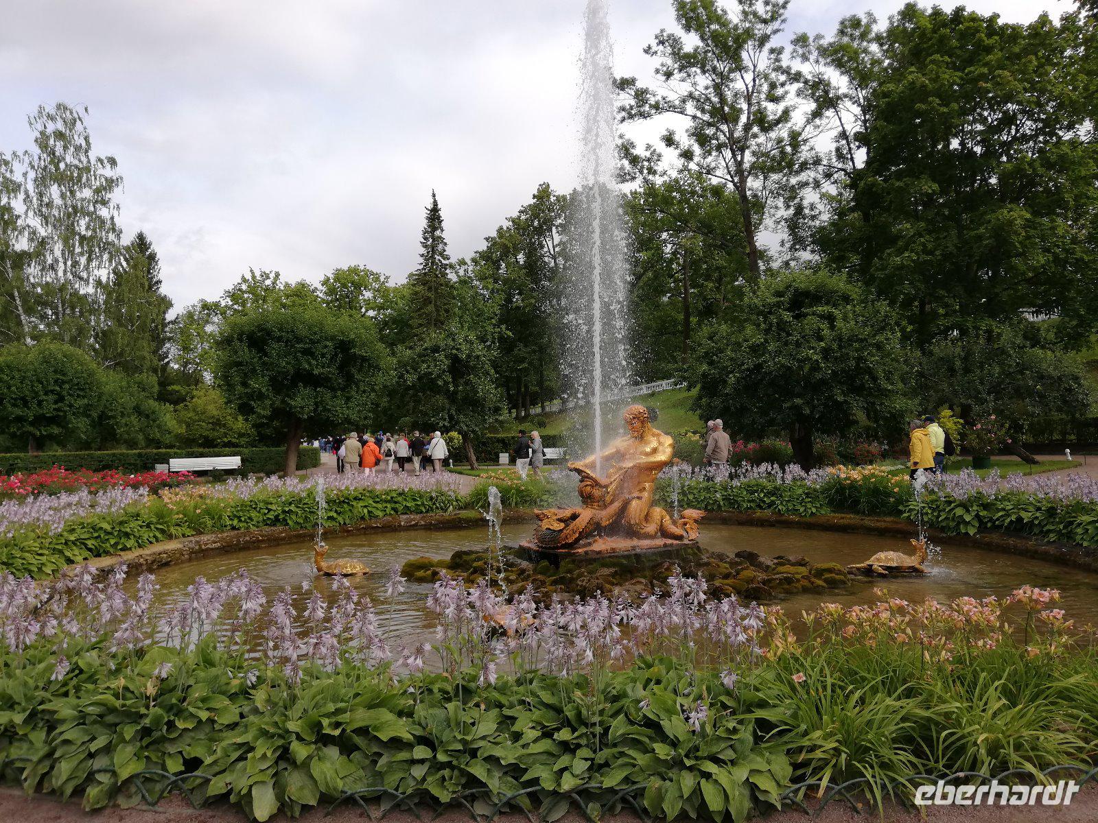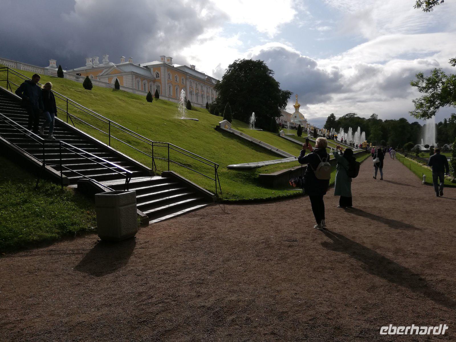 den unteren Park. Das ursprünglich von Peter I. errichtete und von seinen Nachfolgern ausgebaute Gelände gilt als das „russisches Versailles" Wenn wir auch von einem kurzen Regenschauer überrascht werden, spazieren wir entspannt entlang der Kaskaden durch den wunderschönen Park.