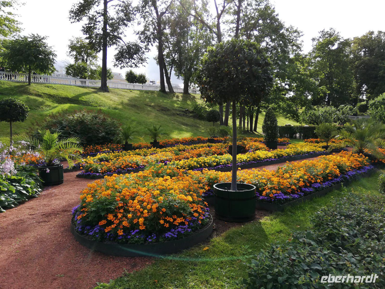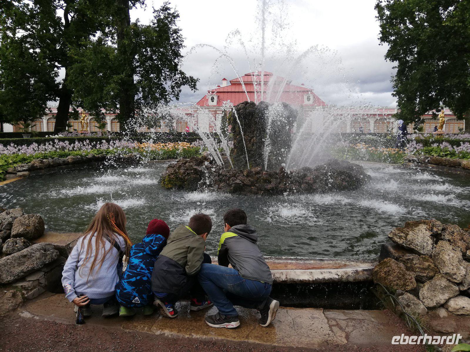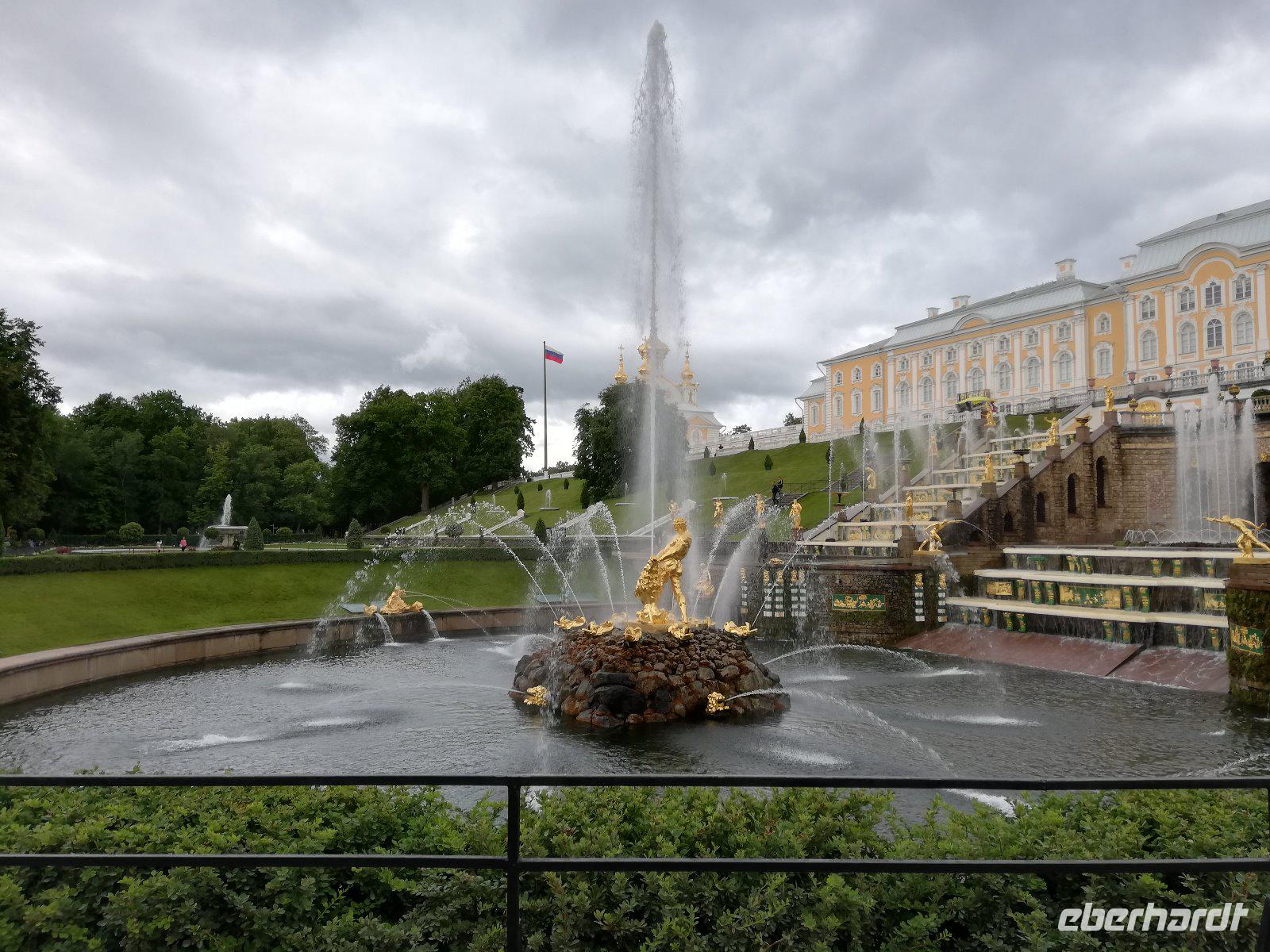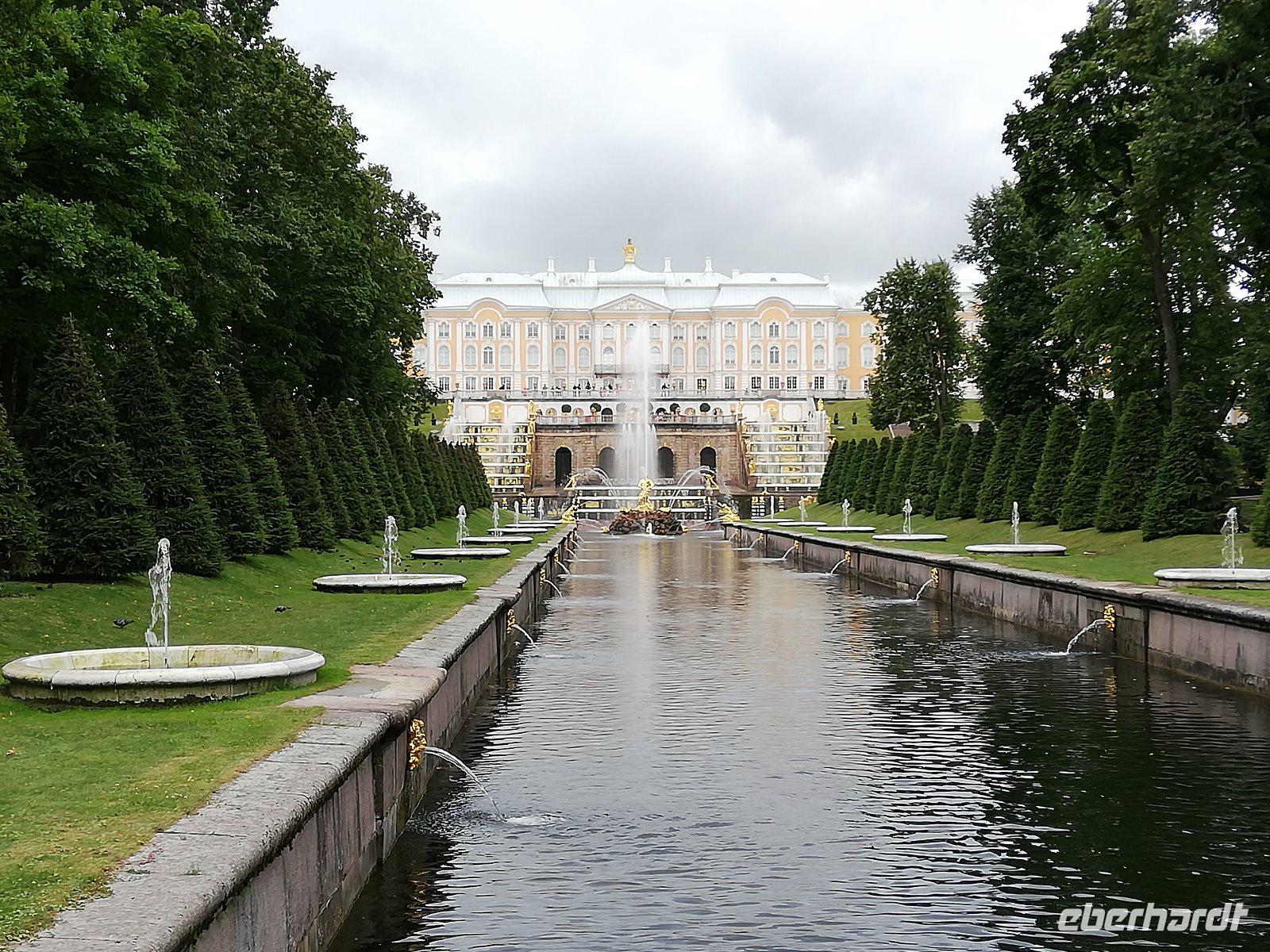 den unteren Park. Das ursprünglich von Peter I. errichtete und von seinen Nachfolgern ausgebaute Gelände gilt als das „russisches Versailles" Wenn wir auch von einem kurzen Regenschauer überrascht werden, spazieren wir entspannt entlang der Kaskaden durch den wunderschönen Park.