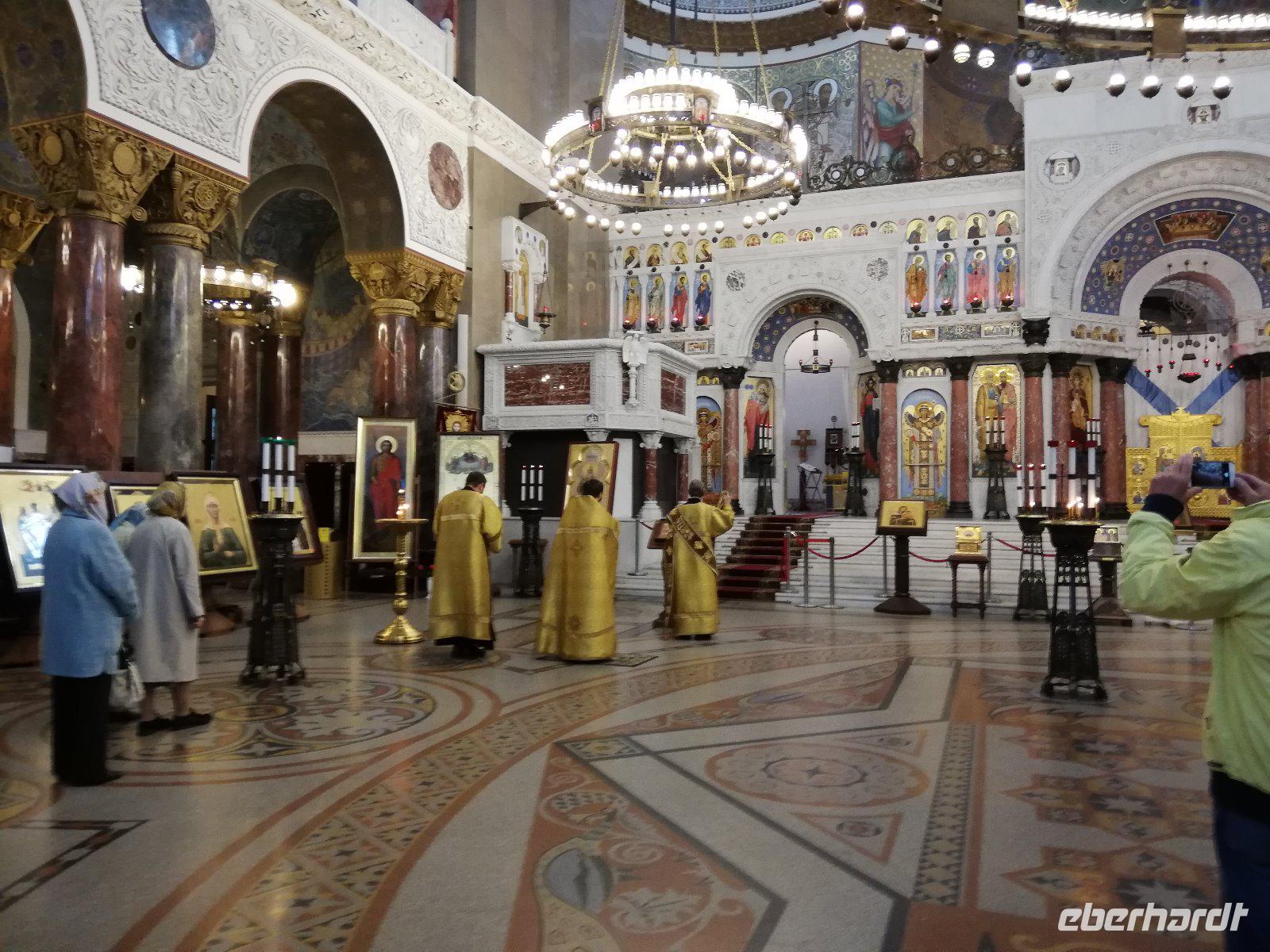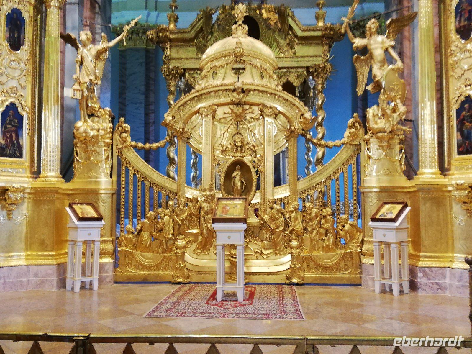 Wir planen heute den Besuch von Kronstadt und lernen die Stadtführerin Anna kennen, die uns hervorragend informiert. Sie gibt uns nicht nur Informationen zur sozialen Situation im Lande, der Schulbildung und dem Straßenbau, sondern wird uns auch in den nächsten Tagen umfassend informieren, zu den Sehenswürdigkeiten in und um St. Petersburg. Dazu gehört für heute Kronstadt,die Stadt und frühere Festung auf der Ostseeinsel Kotlin mit 43.000 Einwohnern. Sie war zur sowjetischen Zeit bis 1996 Militärstadt und Sperrgebiet. Wir fahren über den Petersburger Damm um in die Stadt zu gelangen. Es war Zar Peter I. der die Stadt 1703 als Marinestützpunkt an der Ostsee ausbaute. Bekannt wurde der Ort durch die Matrosenaufstände Anfang des 20. Jahrhundert und im Zweiten Weltkrieg konnte die Rote Armee Kronstadt von 1941 bis 1944 gegen die anrückende deutsche Wehrmacht halten. Nach einer Rundfahrt durch die Stadt besuchen wir den Marine Dom, der einen tiefen Eindruck auf uns hinterlässt.