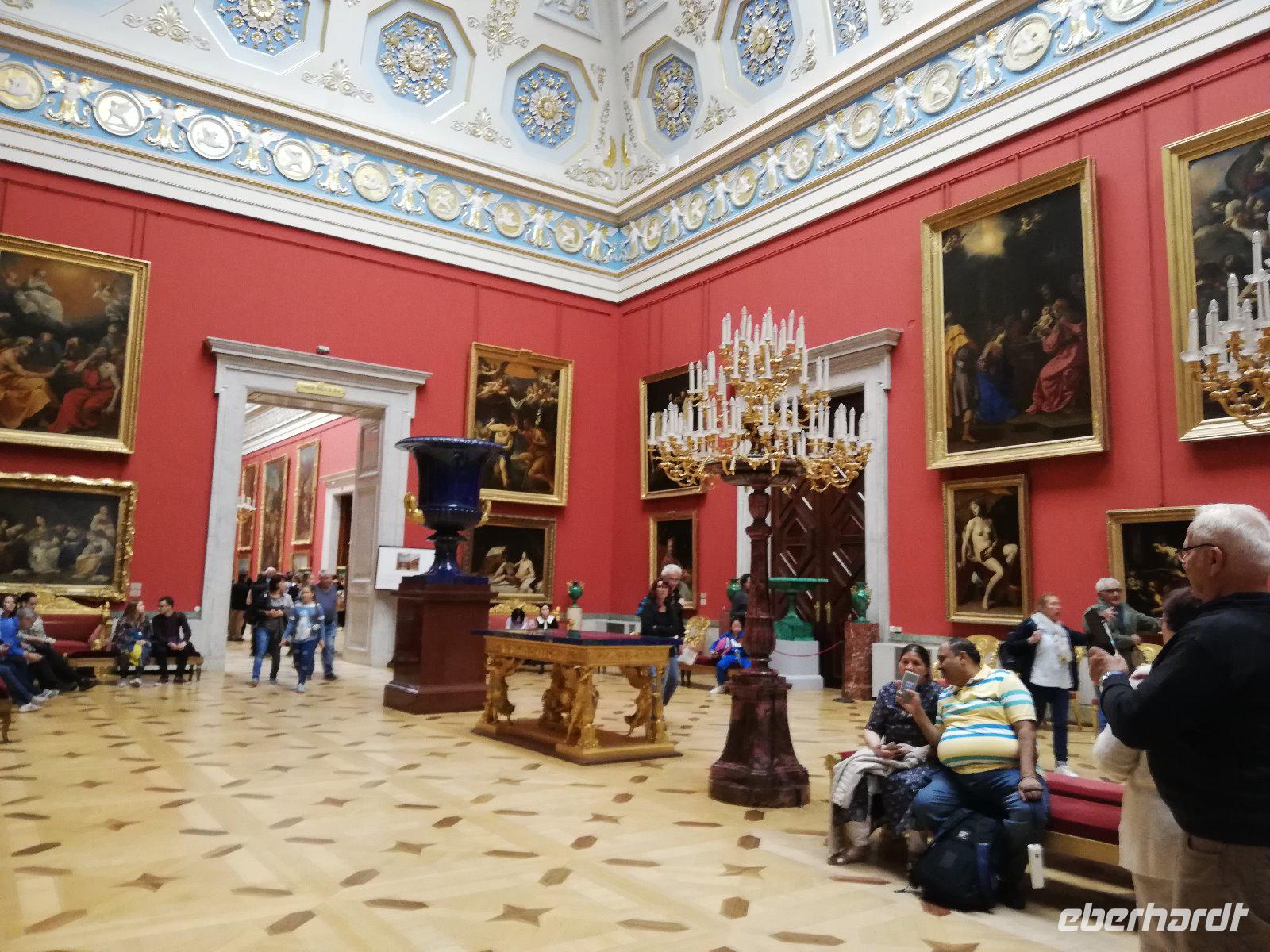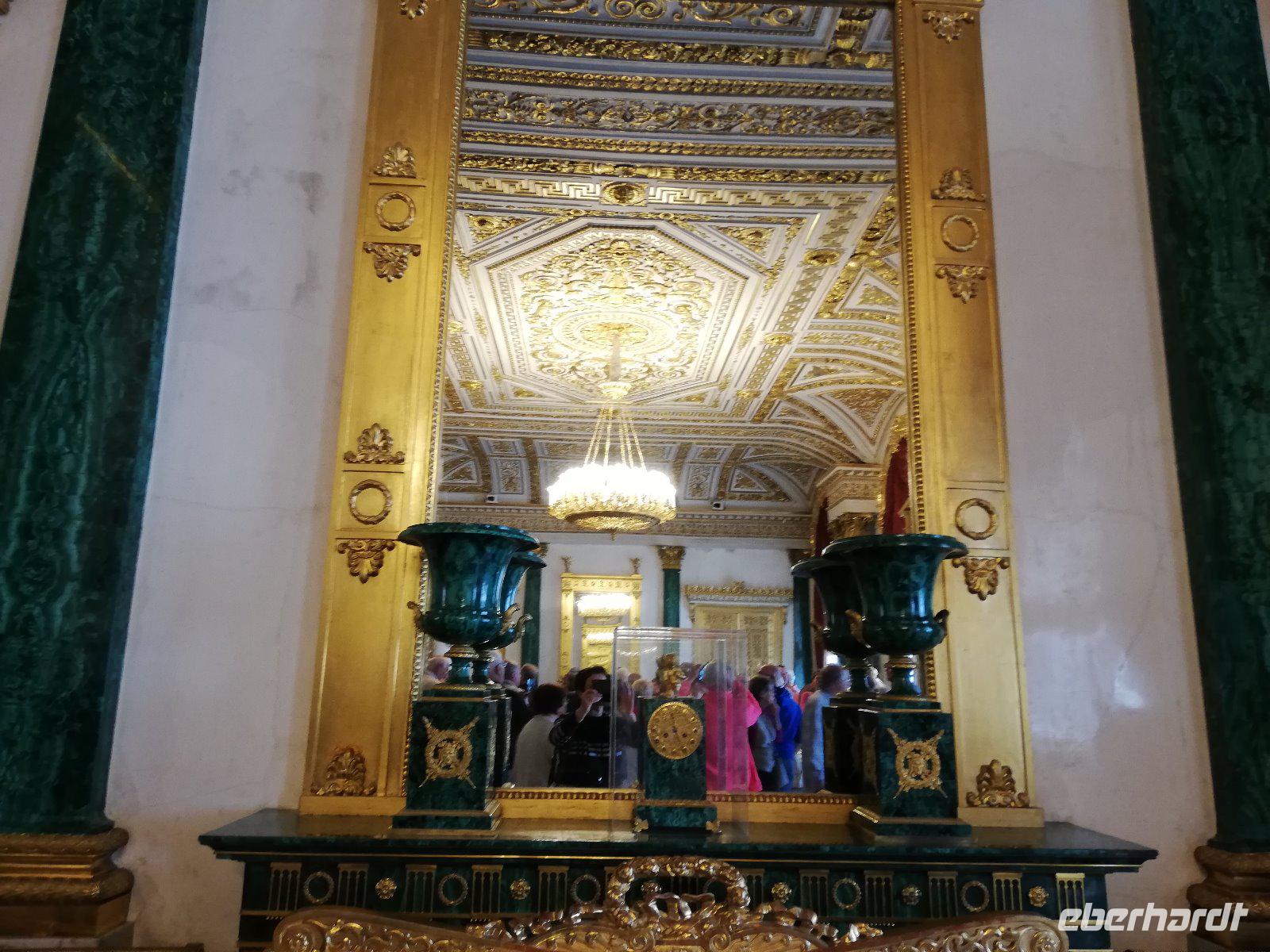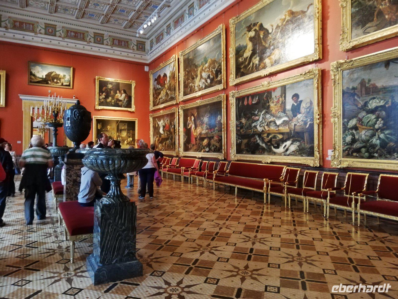 Nach dem Frühstück erwartet uns Anna noch vor 09.00 Uhr. Wir fahren zur Peter-Paul -Festung auf die Hasen Insel, die Ursprung und Mittelpunkt der Stadt aus dem 1800 Jahrhundert ist. Wir halten an der Südspitze der Insel und können von hieraus den Winterpalast fotografierender der Teil der Eremitage ist und den wir später besuchen werden. In das Innere der Peter -und Paul Festung kommen wir erst 10.00 Uhr und somit reihen wir uns in die Schlange vor dem Eingangstor ein. Sehr beeindruckend ist die Führung in der Peter-Paul-Kathedrale in der sich auch das Grab Peters des Großen befindet. Gegen 11 beginnen wir mit der Führung in der Eremitage, die eine der größten und bedeutendsten Kunstmuseen der Welt ist. Zwei Stunden führt uns Anna durch die Räume mit den unterschiedlichsten Kunstgenständen. Wir sehen Gemälde von allen bedeutenden Malern. Darunter eine Vielzahl an Gemälden von den niederländischen Malern. Sehr beeindruckend. Nach den 2 Stunden haben wir nur einen Bruchteil der Ausstellung gesehen und sind doch sehr zufrieden mit unserer Führung durch Anna. Einige Gäste bleiben in der Stadt um am Nachmittag die Bootsfahrt auf den Kanälen und Flüssen von St.Petersburg zu erleben. Andere fahren mit zum Mittagessen auf dem Schiff und werden danach wieder in die Stadt gebracht.