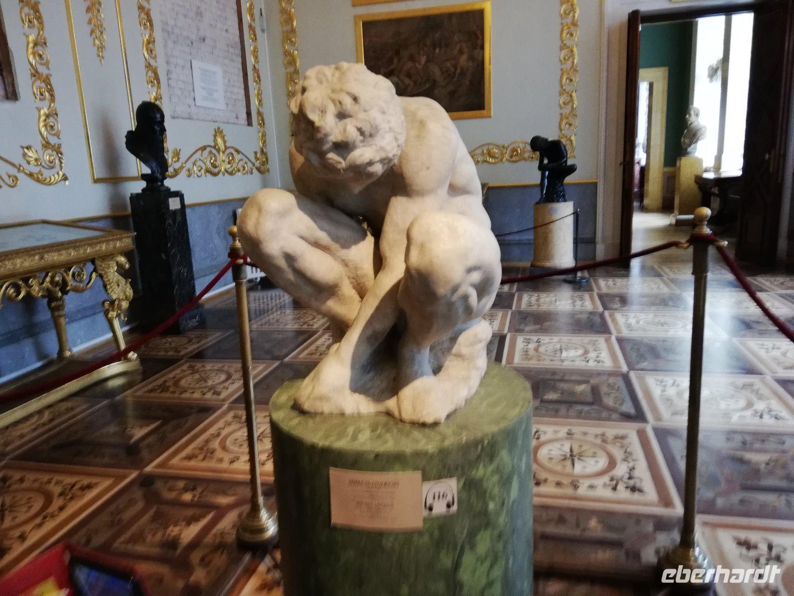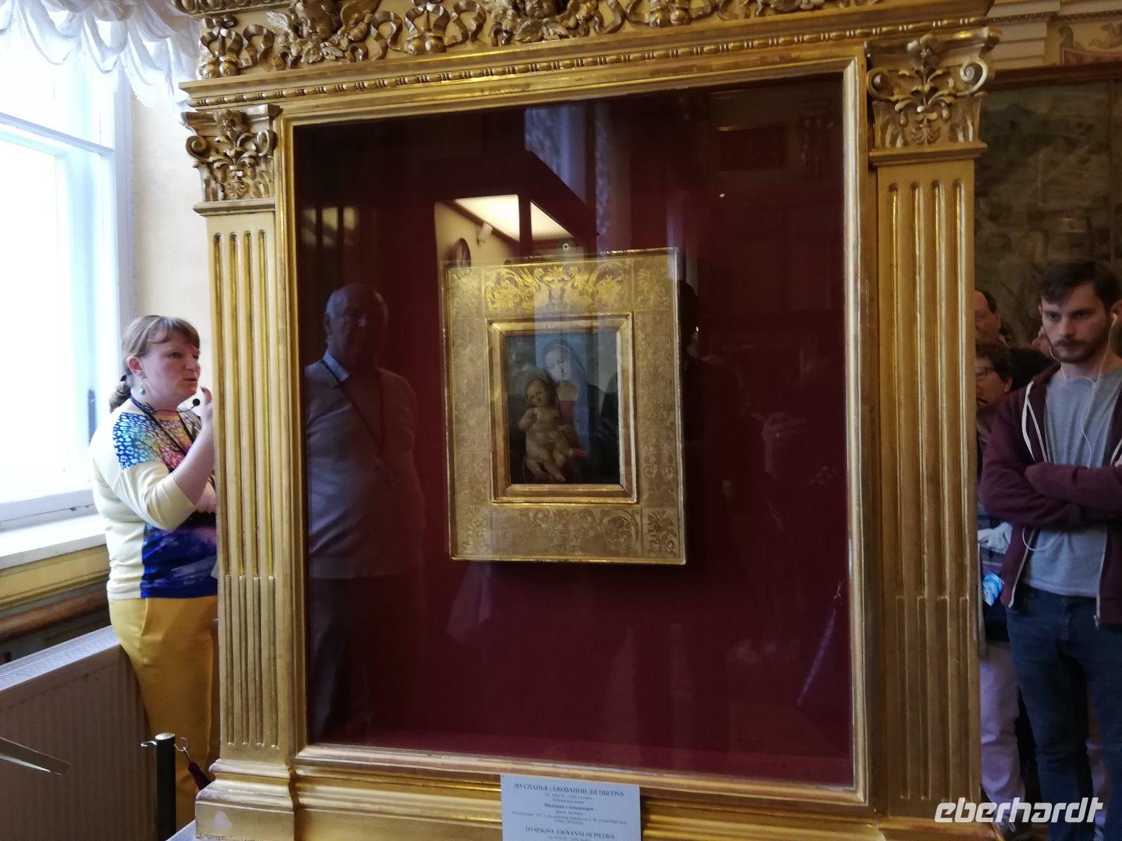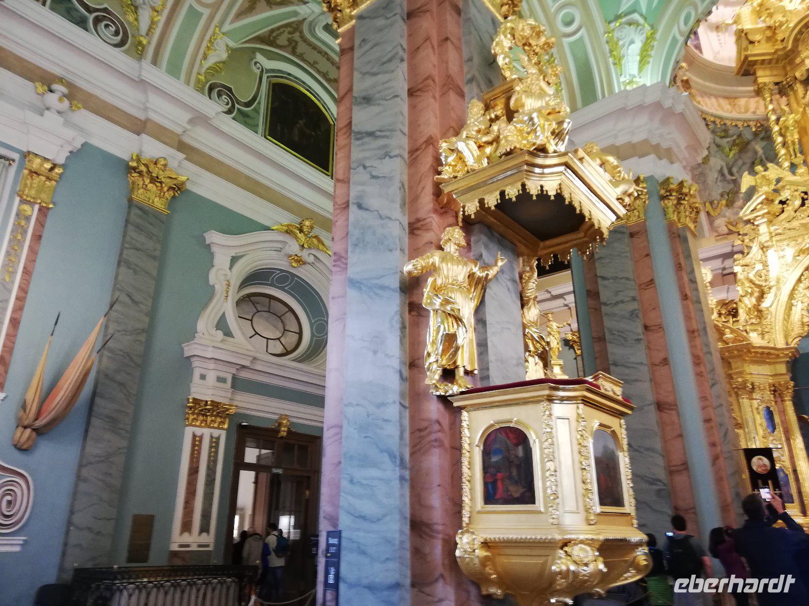 Nach dem Frühstück erwartet uns Anna noch vor 09.00 Uhr. Wir fahren zur Peter-Paul -Festung auf die Hasen Insel, die Ursprung und Mittelpunkt der Stadt aus dem 1800 Jahrhundert ist. Wir halten an der Südspitze der Insel und können von hieraus den Winterpalast fotografierender der Teil der Eremitage ist und den wir später besuchen werden. In das Innere der Peter -und Paul Festung kommen wir erst 10.00 Uhr und somit reihen wir uns in die Schlange vor dem Eingangstor ein. Sehr beeindruckend ist die Führung in der Peter-Paul-Kathedrale in der sich auch das Grab Peters des Großen befindet. Gegen 11 beginnen wir mit der Führung in der Eremitage, die eine der größten und bedeutendsten Kunstmuseen der Welt ist. Zwei Stunden führt uns Anna durch die Räume mit den unterschiedlichsten Kunstgenständen. Wir sehen Gemälde von allen bedeutenden Malern. Darunter eine Vielzahl an Gemälden von den niederländischen Malern. Sehr beeindruckend. Nach den 2 Stunden haben wir nur einen Bruchteil der Ausstellung gesehen und sind doch sehr zufrieden mit unserer Führung durch Anna. Einige Gäste bleiben in der Stadt um am Nachmittag die Bootsfahrt auf den Kanälen und Flüssen von St.Petersburg zu erleben. Andere fahren mit zum Mittagessen auf dem Schiff und werden danach wieder in die Stadt gebracht.