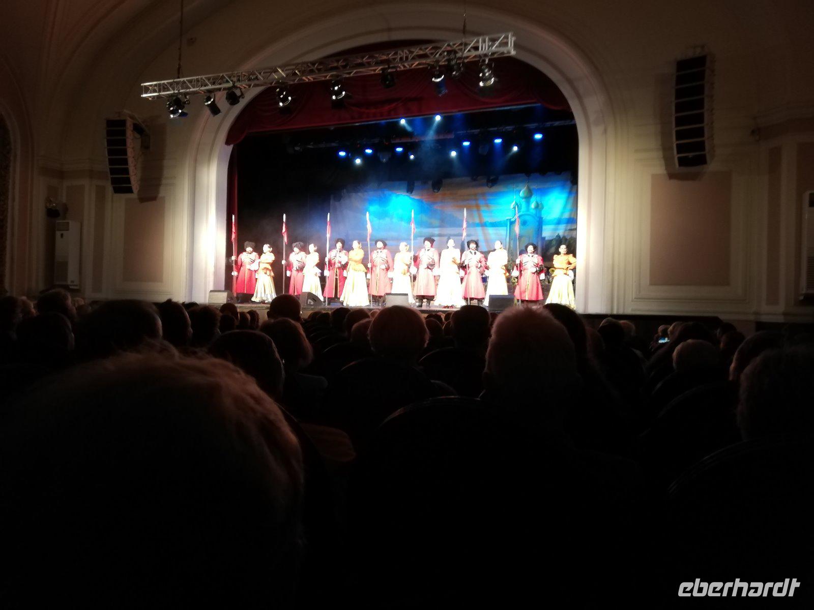 Heute Abend haben wir noch einen tollen Abschluss unserer Reise im geänderten Programm. Wir fahren zur Volksshow"Bagatitsa." Diese Show gibt uns Einblicke in das Leben der Kosaken. Sie zeigen uns in ihren Gesängen und dem Tanz wie sie leben, voller Liebe und Leidenschaft. Manch einen von uns drückte es Tränen in die Augen als wir zum Schluss Kalinka, Kalinka, Kalinka moja... hörten. Es war ein sehr schöner Abschluss.