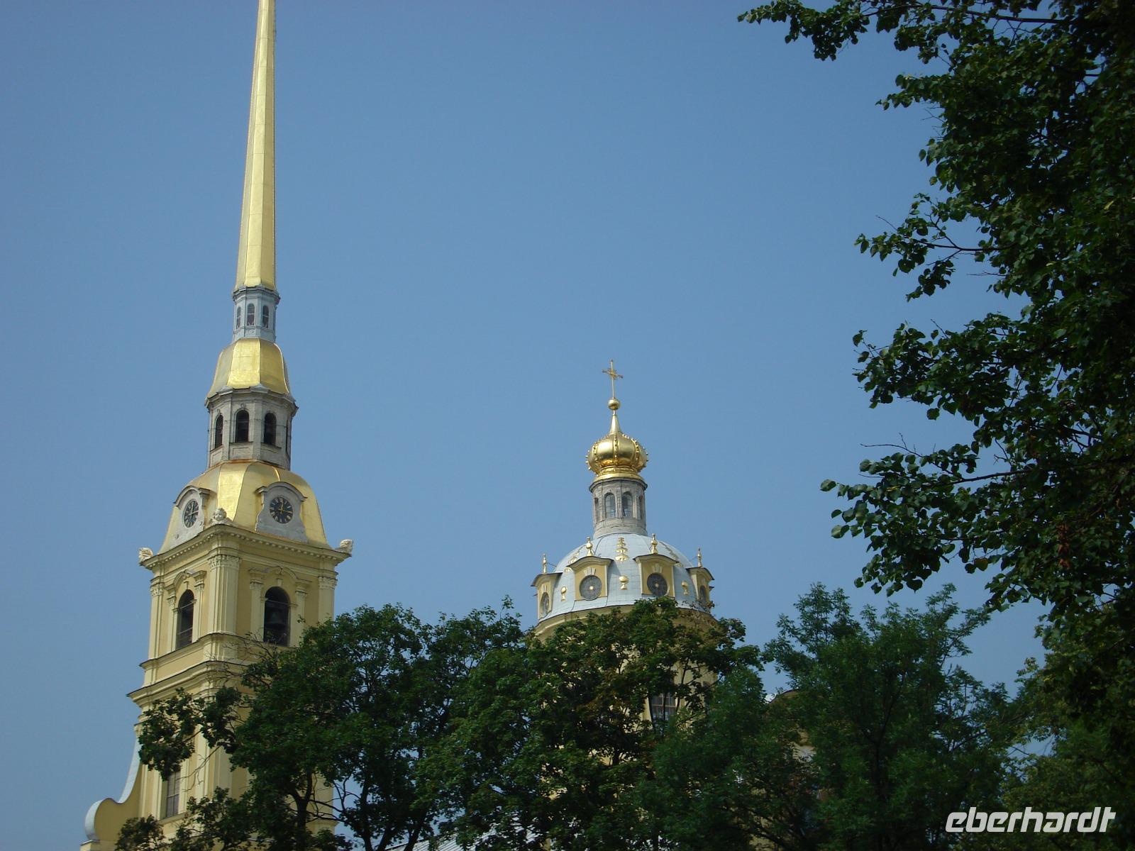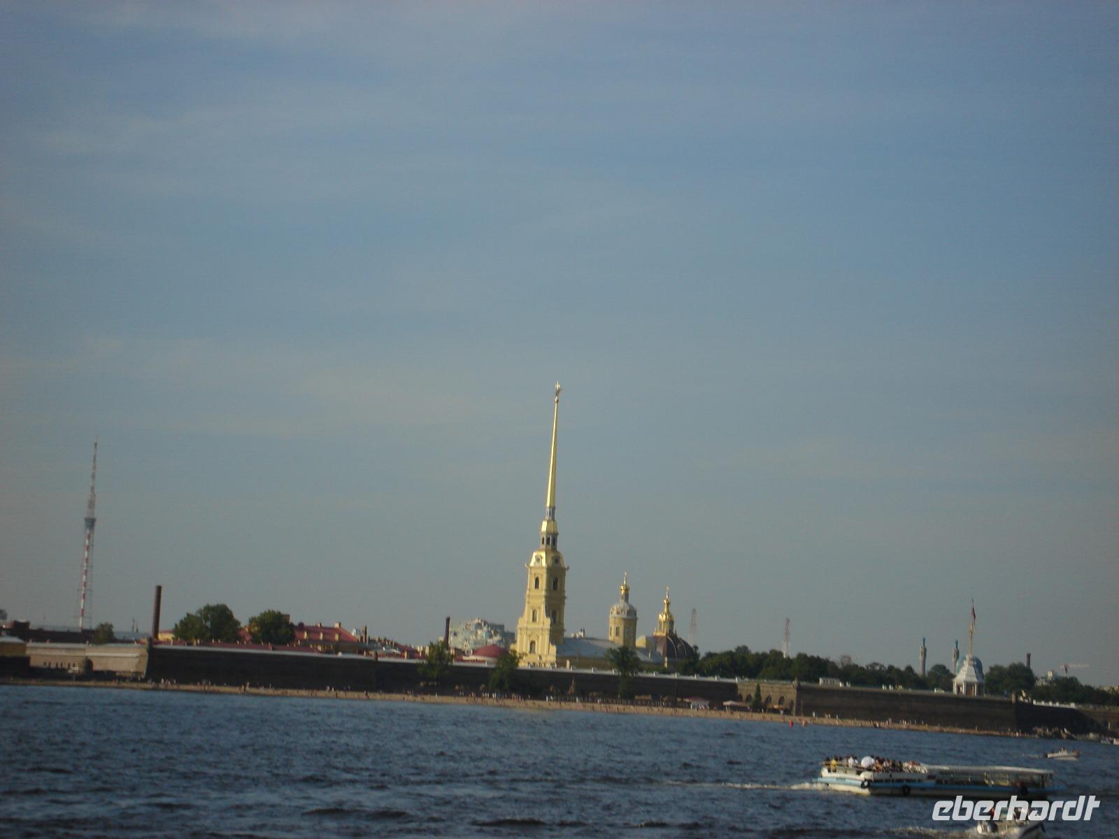 Nach dem Frühstück ging es mit dem Bus zur Stadtrundfahrt: zunächst über den berühmten Nevskij-Prospekt, den einige Gäste schon am Vorabend ein wenig erkundet hatten. Wir sahen das noble Kaufhaus Gostinnyj Dvor, die Kasaner Kirche, die äußerlich dem Petersdom in Rom sehr ähnlich ist, und zahlreiche berühmte und vor allem sehr schöne Gebäude. Weiter ging es zur Heilig-Bluts-Kirche, zur Peter- und Pauls-Festung und dort in die Peter- und Pauls-Kirche, später vorbei an der Isaaks-Kathedrale, der Admiralität und dem Winterpalais.