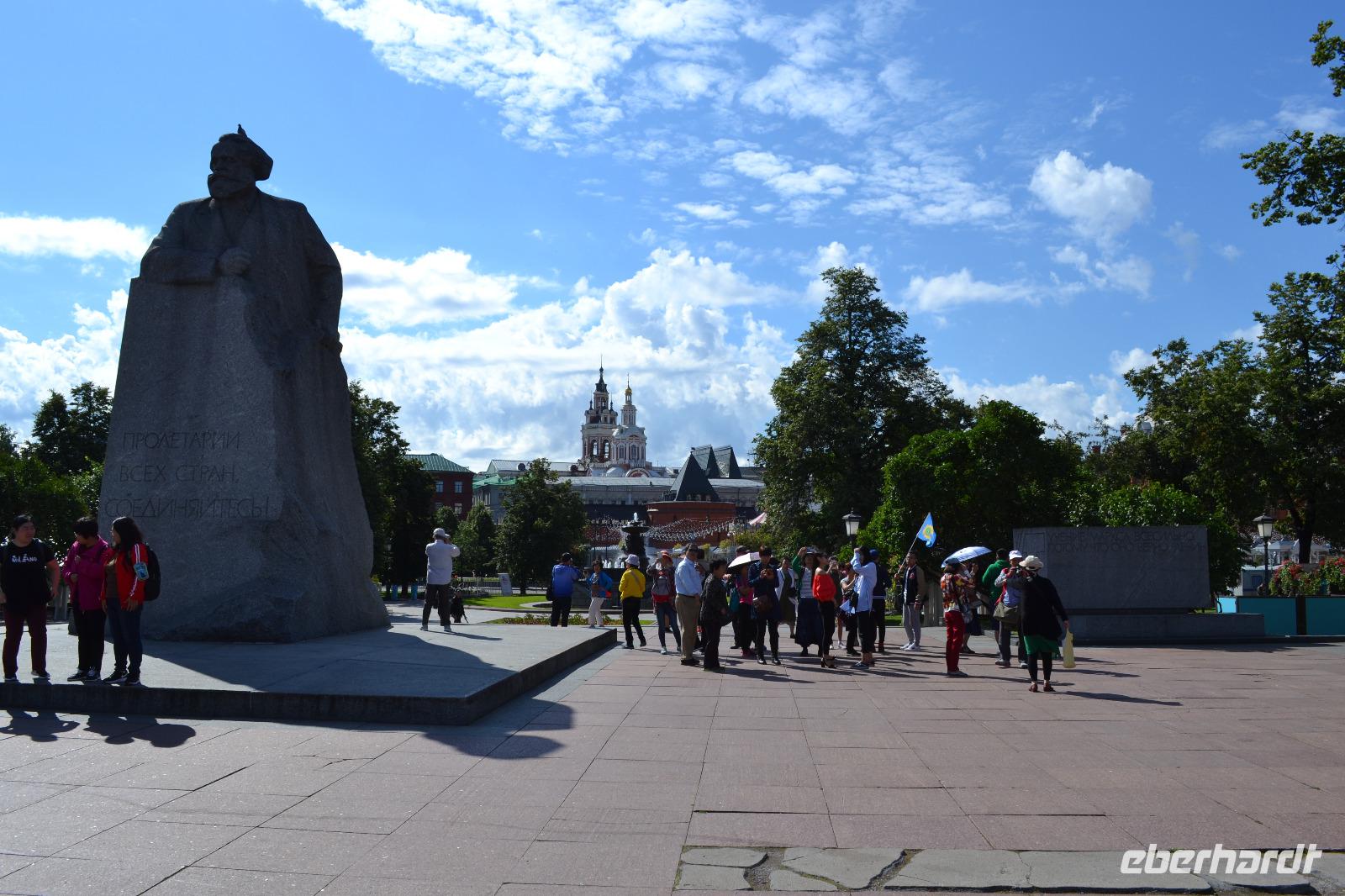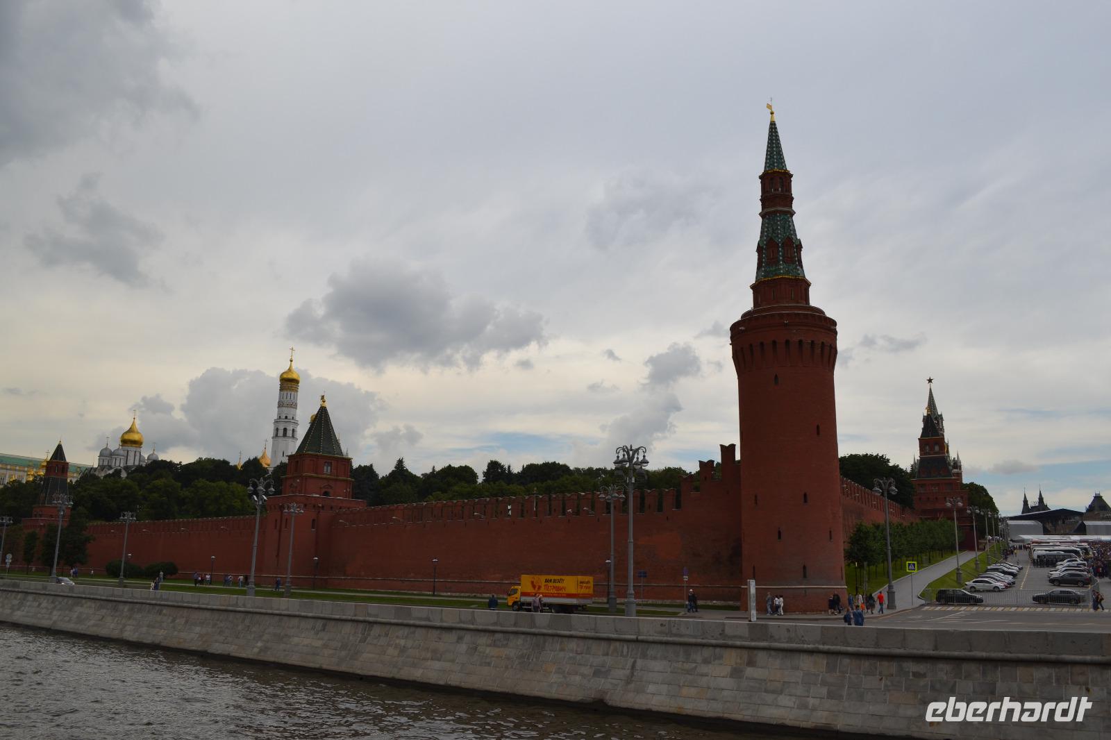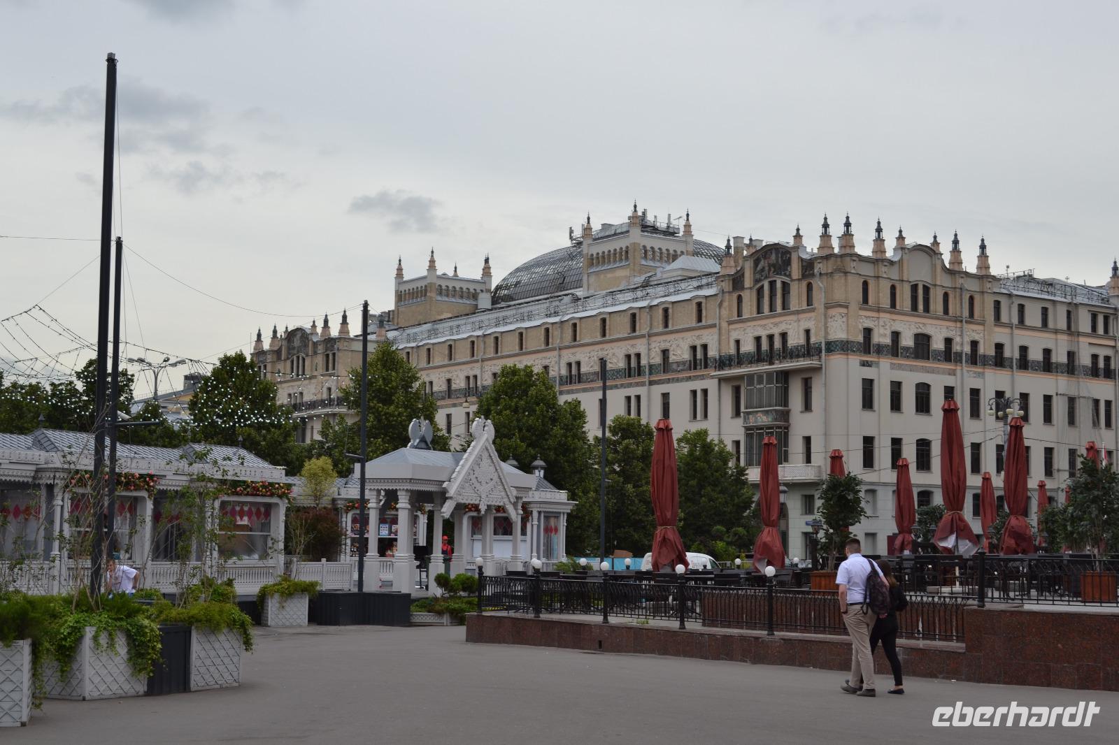 Unsere örtliche Reiseleiterin Tatiana holt uns nach dem Frühstück im Hotel ab. Sie will heute als erstes mit uns mit der Metro zum Roten Platz fahren. Die Stationen der Metro gelten ja für sich genommen schon als ein sehenswertes Highlight. Mit der Rolltreppe geht es ganz lange und ganz tief hinab. Dann fühlen wir uns unten fast wie in reich verzierten Tempeln. Je nach Station huldigt die Dekoration mal Glanz und Glorie militärischer Siege aus der Zarenzeit, ein anderes Mal werden sozialistische Arbeiter und Bauern geehrt. Wieder oben gehen wir am berühmten Kaufhaus "GUM" vorbei und stehen dann auf einmal tatsächlich auf dem Roten Platz. Das ist schon ein ganz besonderer Moment, denn wir kennen ihn ja alle nur aus dem Fernsehen. Die Kreml-Mauer mit ihren Türmen, das Lenin-Mausoleum, die Basilius-Kathedrale - alles ist da und wir sind mittendrin im Getümmel. Nur ein Flugzeug könnte heute hier nicht landen, denn auf dem Platz wird gerade alles für die "Große russische Nacht des Boxens" vorbereitet. Wir wollen uns zwar nicht, doch müssen uns irgendwann sattsehen, denn hinter der Basilius-Kathedrale wartet schon unser Bus. Unsere kleine Stadtrundfahrt führt uns zunächst zum Neujungfrauen-Kloster und dann zum Aussichtspunkt auf den Sperlingsbergen, direkt gegenüber der ehrwürdigen Lomonossow-Universität. Von hier aus haben wir einen guten Blick über die Stadt, sehen das neue, moderne Finanzviertel und die alten Stadien. Ein bisschen Hunger verspüren wir jetzt schon. Gut, dass auf dem Schiff schon ein typisch russisches Mittagessen auf uns wartet, das wir genüßlich verspeisen, während das Ausflugsschiff unter vielen Brücken hindurch an Palästen, Ministerien, am Gorki-Park und am Kreml vorbeigleitet. Der Nachmittag steht meinen Gästen zur freien Verfügung. Mit gut der Hälfte meiner lieben Reisegruppe bin ich dann aber am Abend noch verabredet, denn wir wollen mit der Metro noch einmal in die Stadt fahren und den Roten Platz und das Kaufhaus "GUM" im Glanz der vielen Lichter erkunden.