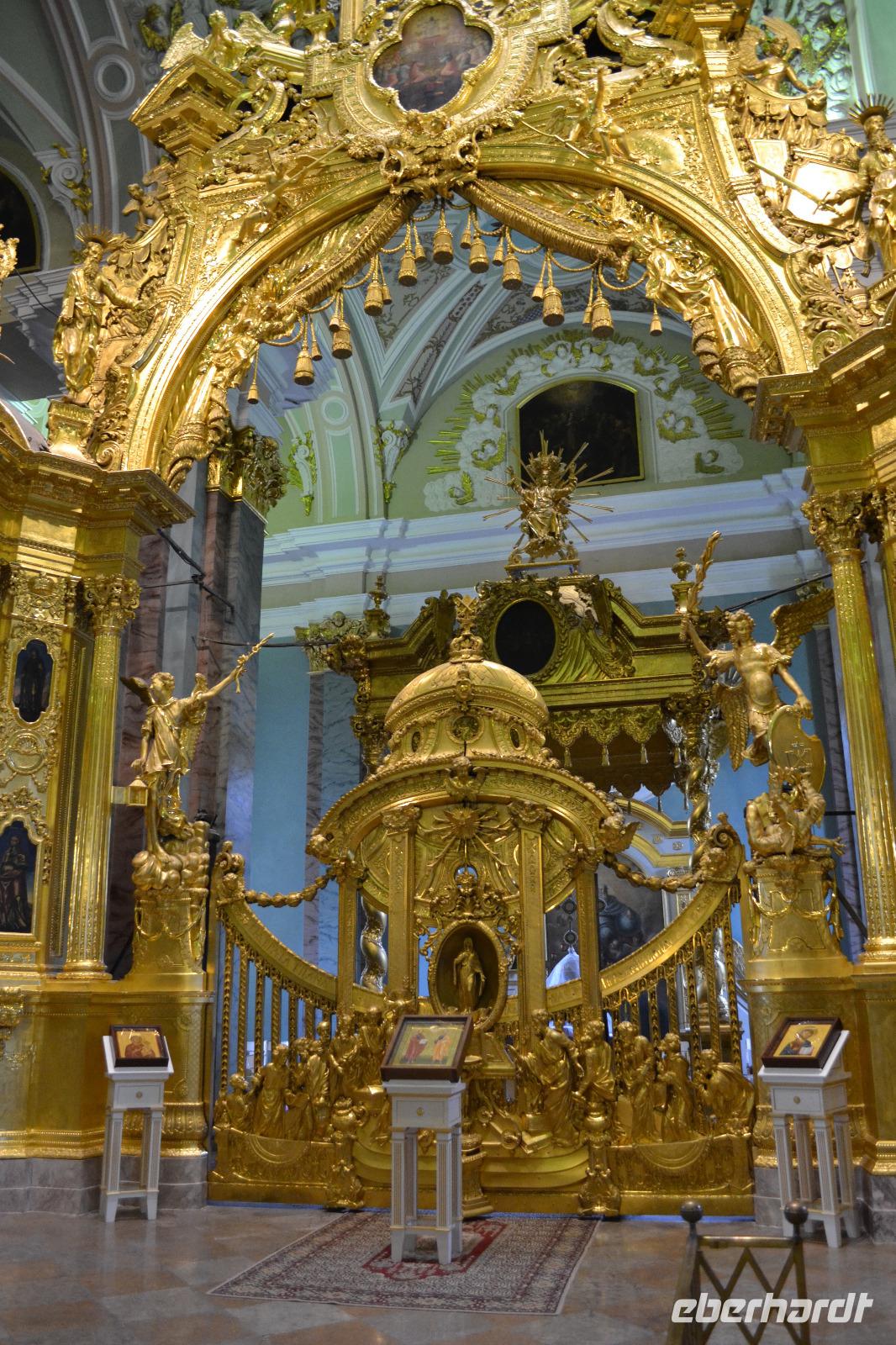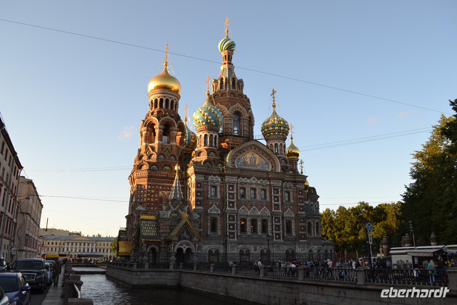 Wir beginnen unsere Entdeckungsreise durch die Stadt St. Petersburg an ihrem Gründungsort, der Peter-und-Paul-Festung. Auf der Fahrt dorthin sehen wir den Newski-Prospekt und die berühmten Rostra-Säulen an der Spitze der Wassiljewski-Insel. Der Turm der Peter-und-Paul-Kathedrale in der Festungsanlage auf der Haseninsel ist das höchste Bauwerk der Stadt. In der vom Architekten Trezzini erbauten Kathedrale, die vom Baustil eher an eine klassisch barocke denn an eine russisch-orthodoxe Kirche erinnert, sind fast alle Mitglieder der russischen Zarenfamilien bestattet. Auch die sterblichen Überreste des von den Bolschewiken ermordeten Zaren Nikolaus II. und dessen Familie sind hier beerdigt. Der Kanonenschuss um Punkt 12 Uhr von der Festungsmauer aus läutet unsere wohlverdiente Mittagspause ein. Unsere neue örtliche Reiseleiterin - sie heißt ebenfalls Tatiana, was uns die Umgewöhnung erleichtert - schlägt als Lokalität das Restaurant "Jamie's Italian" in der Nähe der Blutskirche vor und alle sind einverstanden. Anschließend verbringen wir den ganzen Nachmittag mit der Besichtigung der Eremitage. Es ist eine schlicht überwältigende Sammlung an Gemälden und Kunstgegenständen, die hier zusammengetragen wurden. Die berühmtesten Künstler der Welt sind hier vertreten: Michelangelo, Leonardo da Vinci, Tizian, Rembrandt, ... Gleichzeitig können wir im Winterpalast auch den Thronsaal und die Gemächer der Zarenfamilie besichtigen und so in die verwicklungsreiche Geschichte Russlands eintauchen. Ein gemeinsames Abendessen im Restaurant "SOLO-SOLO" rundet den ereignisreichen Tag schließlich ab.