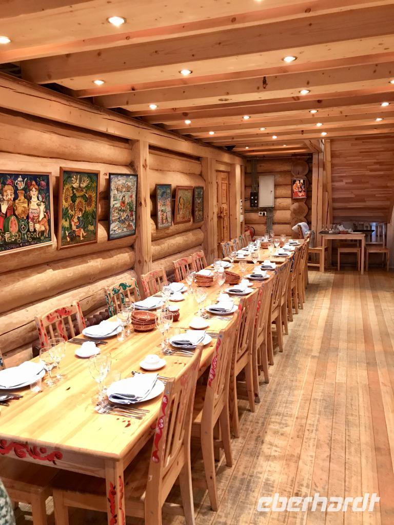 Am nächsten Tag schon hieß es Abschied nehmen von der Hauptstadt Russlands und wir verabschiedeten auch einen Gast. Wir brachen zu neuen Ufern auf und freuten uns auf eine Bahnfahrt zwischen zwei Metropolen, die beide Hauptstädte waren bzw. sind. Wir fuhren zum Leningrader Bahnhof, tauchten ein in das russische Alltagsleben und nahmen den Schnellzug nach Sankt Petersburg. Eigentlich wären wir sehr gern mit dem Sapsan, dem Wanderfalken, der noch schneller ist als der Schnellzug, gefahren. Aber es gab wohl keine Fahrkarten mehr. Der russische Zugbegleiter versicherte mir in tiefstem Bass, dass den Schnellzug auch die deutschen Ingenieure gebaut haben und es da gar keine Unterschiede gäbe, na dann ist ja alles gut. Im Zug saßen wir etwas verstreut in zwei Waggons. Wenn auch der Ehepartner vielleicht etwas weiter weg war, so hatte man doch bei dieser Reise den direktesten Kontakt zu den Menschen in den Abteilen und man konnte bildlich erleben, wie die Kindererziehung funktioniert, wie die jungen Liebenden miteinander umgehen oder wie die Mütterchen verreisen (wen werden sie wohl besuchen?). Und dann lernten wir auch, wie man einen richtigen kräftigen Russen anlächeln muss, damit er den Koffer aus dem obersten Fach herunterbefördert. Unterwegs hatten wir vom Zugbegleiter auch eine individuelle Betreuung, da bekam man ein Sandwich zur Wahl, im Ticketpreis inbegriffen, und etwas zu trinken. Der Tee noch in den besonderen russischen Teegläsern im Metalleinsatz, so wie früher, nur eben jetzt RSCHD, Russische Eisenbahn. Welch ein individueller Service, wenn man seinen Namen genannt und auf der Liste einen Haken bekommen hatte. Ach und das kleine Plastikkästchen mit dem roten Deckel über dem Sitzplatz - da gab es Wasser, Salz und Pfeffer, etwas Süßes... Unsere Fahrt dauert 4,5 Stunden und war doch nicht langweilig. Am Moskauer Bahnhof in Sankt Petersburg, der dem Leningrader Bahnhof in Moskau aufs Haar gleicht, holte uns die örtliche Reiseleiterin Wera ab. St. Peterburg oder Piter, wie die Stadt in Russland liebevoll genannt wird, empfing uns sehr windig, die Ostsee lässt grüßen. Dann ging es sehr schnell mit dem Bus zum Hotel. Das war schon etwas anders als in Moskau. Das Hotel „Gogol House" befand sich direkt im geschichtsträchtigen Stadtteil St. Petersburgs, in dem sehr viele Helden der klassischen russischen Literatur zu Hause waren, direkt am Gribojedow-Kanal und unweit des Heumarktes. Das Haus war 1827 als Wohnhaus im Auftrag eines reichen Kaufmanns erbaut worden und der russische Schriftsteller Nikolaij Gogol hatte hier einige Jahre eine Wohnung bezogen. Wir fanden den kleinen Fahrstuhl „älteren Typs" in der Mitte des schmalen Hauses so interessant, in dem nur eine Person mit Koffer Platz hatte und der dennoch bis in die 6. Etage fuhr. Den erlebnisreichen Tagen beendeten wir im hoteleigenen Restaurant bei einem landestypischen russischen Abendessen.