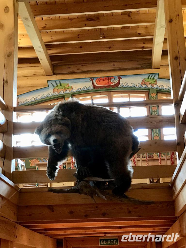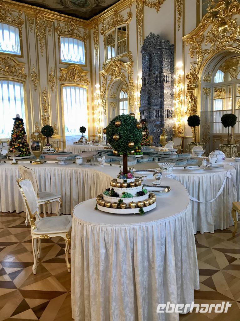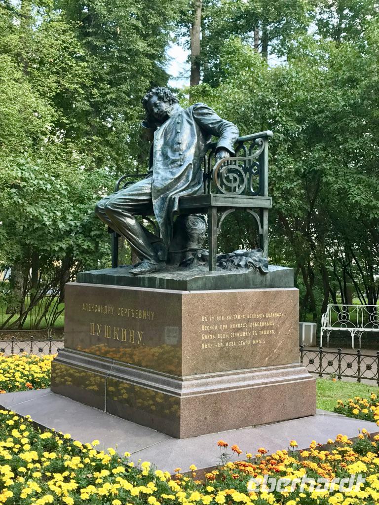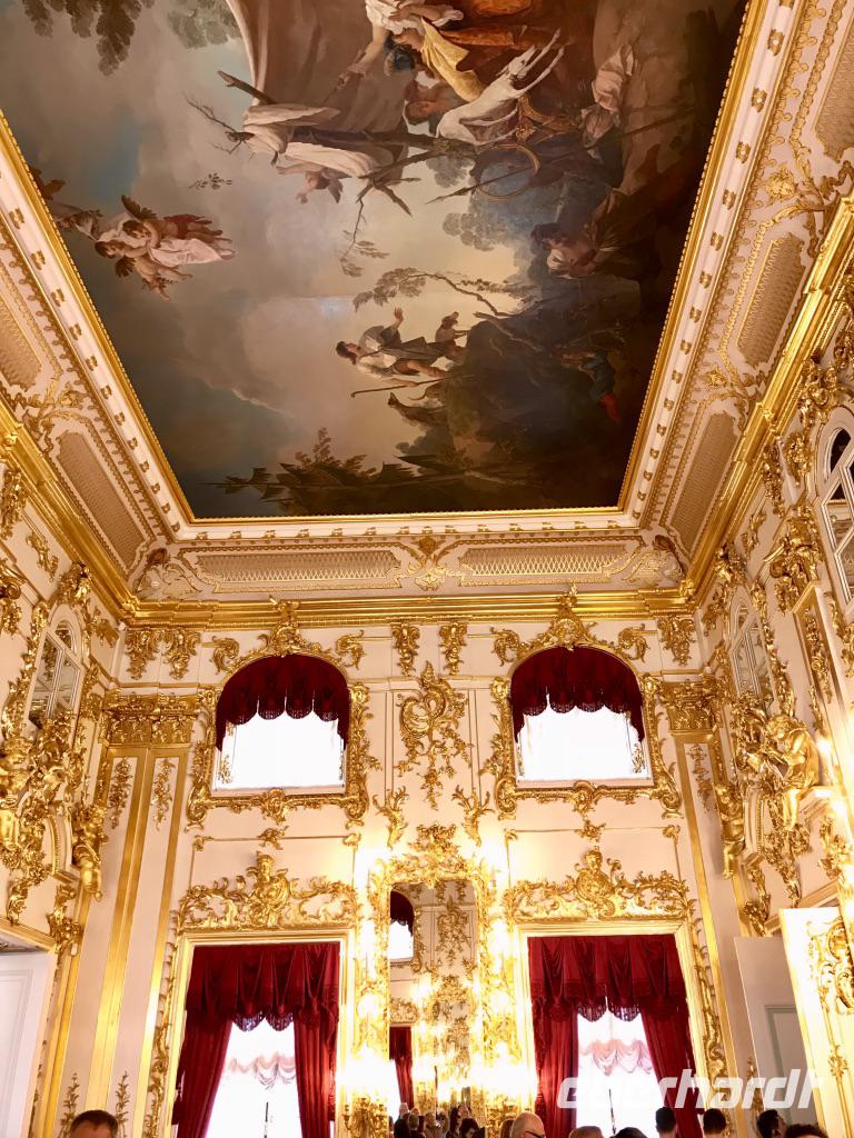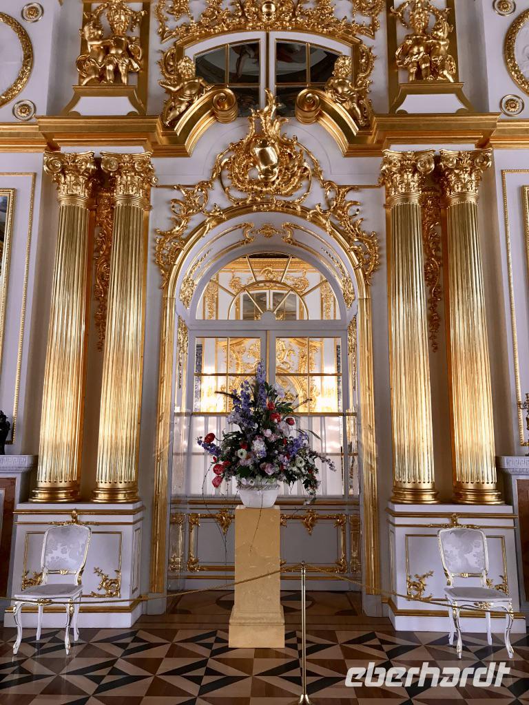 Es war unser letzter erlebnisreicher Tag. Wir starteten auf eine kleine Busreise nach Puschkin, zum geschichtsträchtigen Residenzvorort außerhalb St. Petersburgs, der in den politischen Wirren der Zeit oftmals seinen Namen gewechselt hatte, Zarskoje Selo (Zarendorf), Kinderdorf, Puschkin. Wenn auch unser Ziel Bernsteinzimmer heiß, so erlebten wir zunächst die Welt um das Schlossensemble des Katharinenpalastes, der nach Katharina I., der Ehefrau und Nachfolgerin von Peter dem Großen benannt ist. Das Schloss brachte uns erneut die Pracht dieser Zeit nahe, einen reich verzierten Thronsessel, üppige Stuckaturen, prächtig verziertes Porzellan (auch aus Meißen), riesige farbenfreudige Decken- und Wandgemälde, große reflektierende Wandspiegel, weite Ausblicke nach beiden Seiten zum Park und hinab auf die Ostsee, vergoldetes, barockes Schnitzwerk. Beeindruckend die Goldene Enfilade, eine lange Zimmerflucht von in barocker Üppigkeit gestalteten Räumen. Und dann das Bernsteinzimmer, Geschenk des preußischen Königs Friedrich Wilhelm I., Ausdruck der tiefen russisch-deutschen Beziehungen, die einen Vergleich zur Gegenwart aufkommen lassen. Nur ein kurzer Blick war uns vergönnt auf das Wunder in der Vielfalt der Farben des Bernsteins, des Wunders, das nach seinem bislang ungeklärten Verlust auf der Grundlage von Zeichnungen und Fotos neu entstanden ist. Welche Handwerkskunst. Wir hätten noch gern lange die Schnitzereien und Verzierungen bewundert, aber die Touristen strömten und schoben. Schade, welch kurzer Moment. Vielleicht sollte uns der Besuch in einem neu aus Holz gebauten Bojarenhof „Podworje" mit einem reichhaltigen Mittagessen entschädigen. Wir haben auch dies genossen, natürlich bei einem Wodka. Am Abend dann zurück in das moderne St. Petersburg, ein Abschied von den Mitreisenden und von Russland bei einem gemeinsamen Essen im Restaurant „Polny Balett". Auch nicht schlecht, bei Galina Ulanowa, der berühmten Balletttänzerin, virtuell zu Besuch gewesen zu sein.