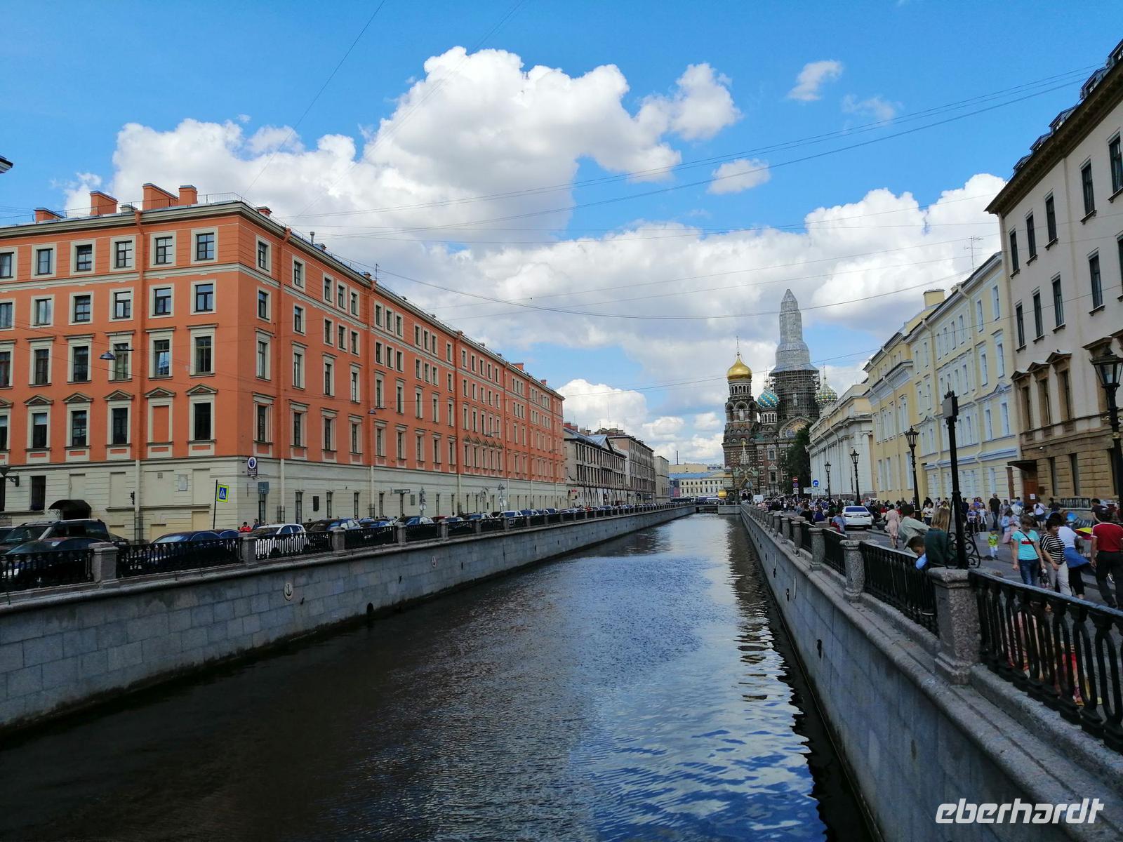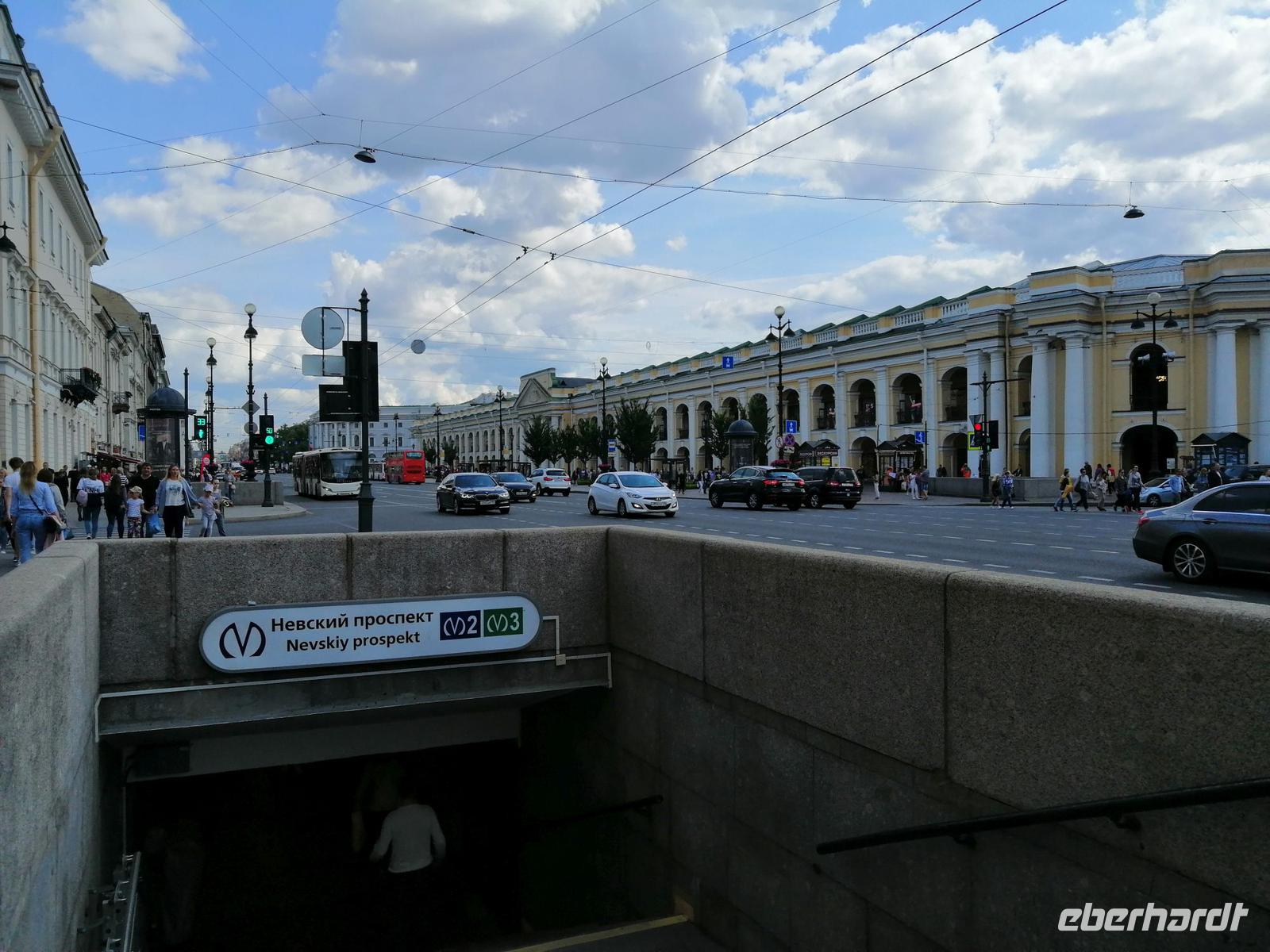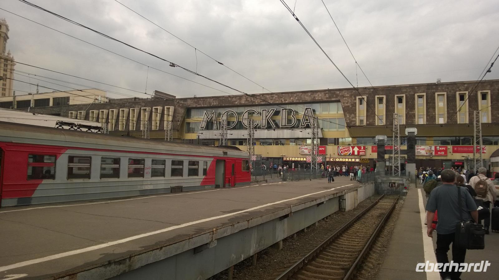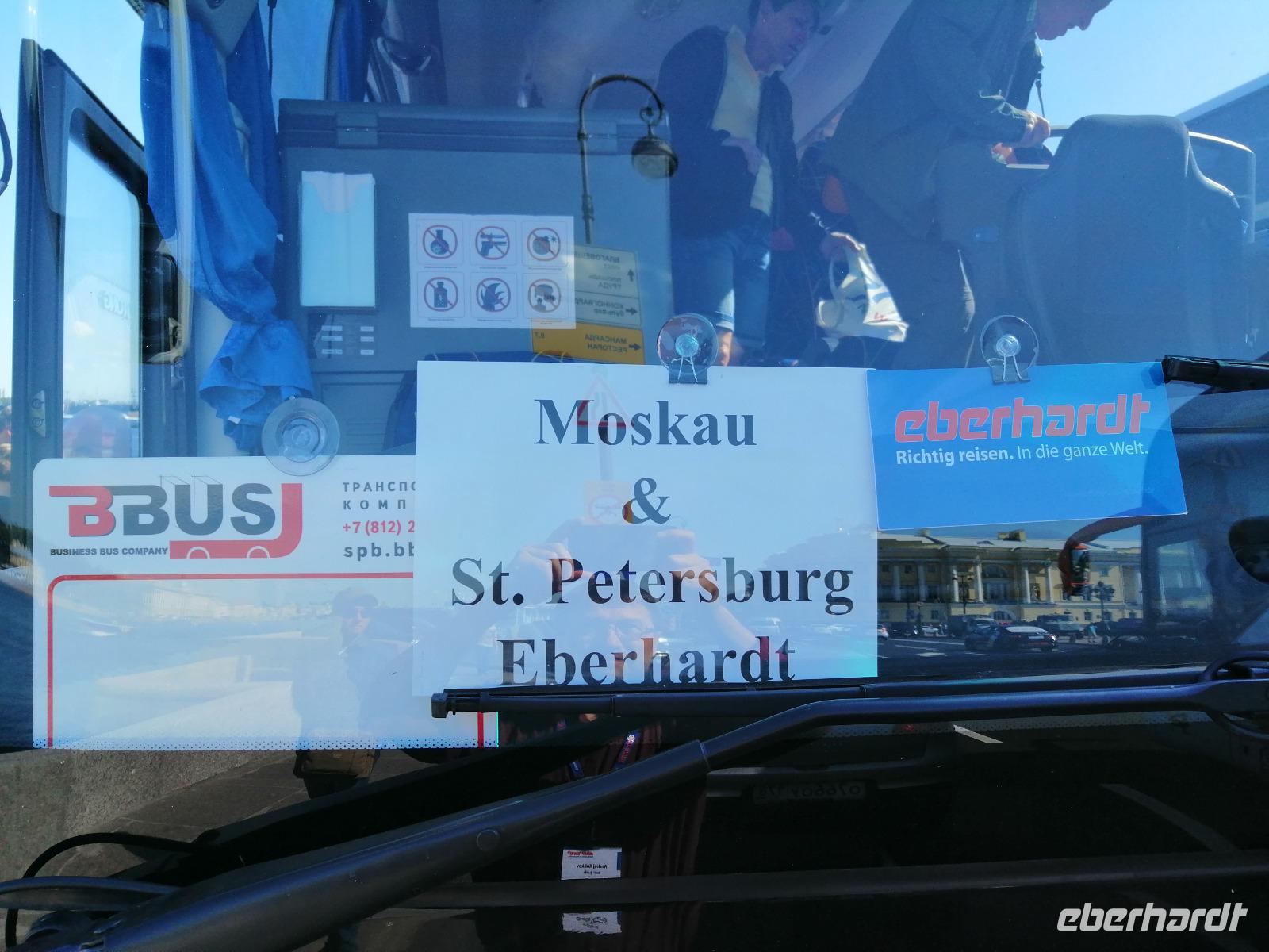 Wir setzten unsere Erkundungstour durch russische Metropolen durch und fuhren mit dem Schnellzug „Newskij Express" nach Sankt Petersburg. Die Fahrt mit „Newskij Express" ist genauso schnell wie mit dem mehr bekannten Schnellzug „Sapsan" und dauerte knapp 4 Stunden. Im Zug wurde uns Tee und Kaffee angeboten, es gab auch Lanchpakete und eine kleine Überraschung von eberhardt travel: die berühmte Russische Schokolade!