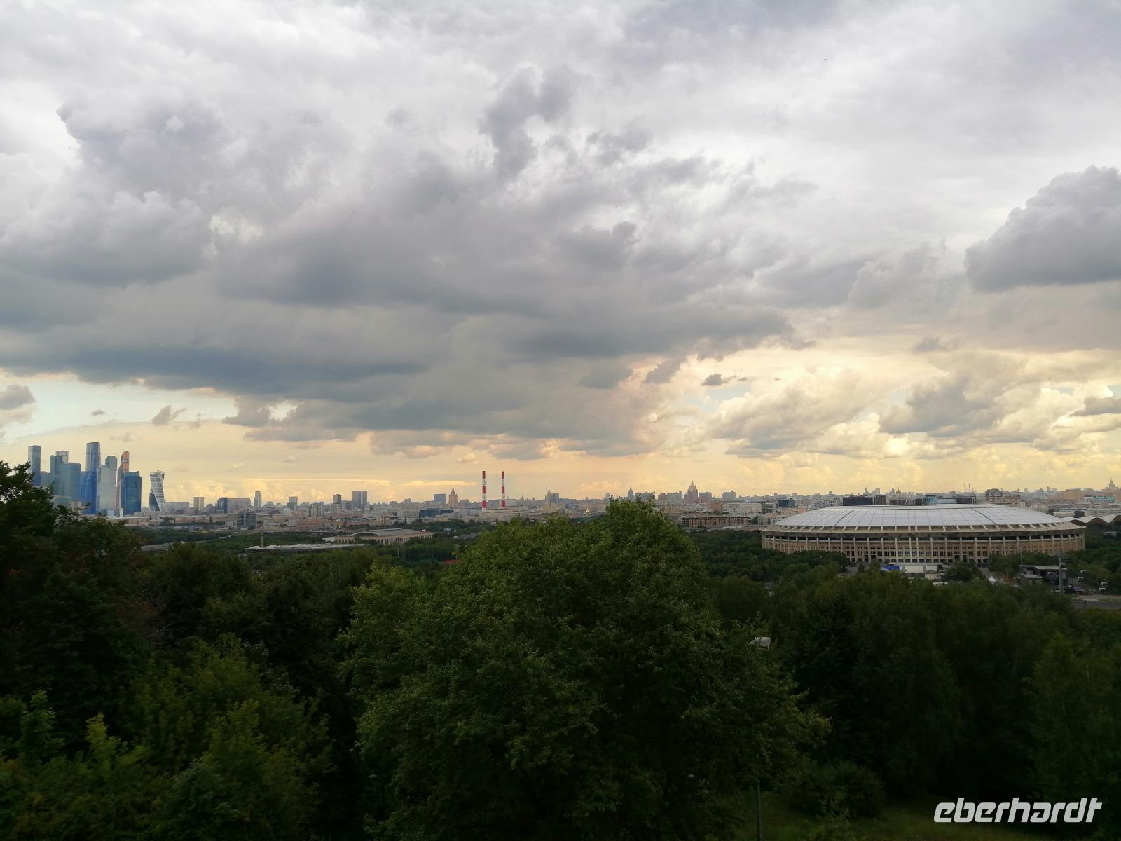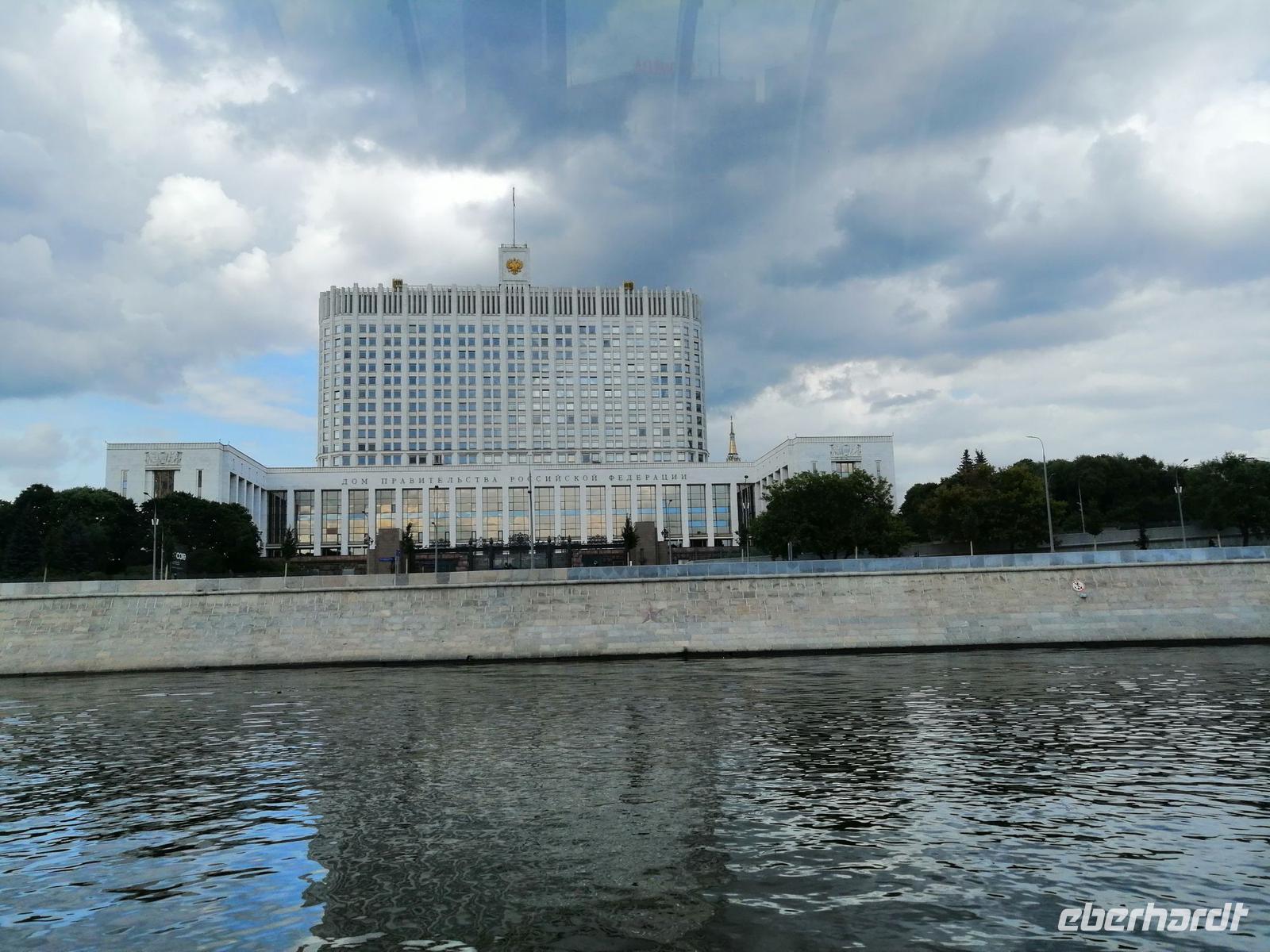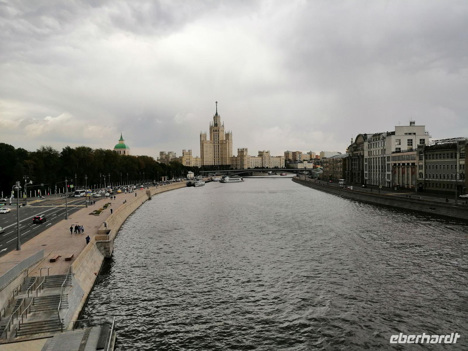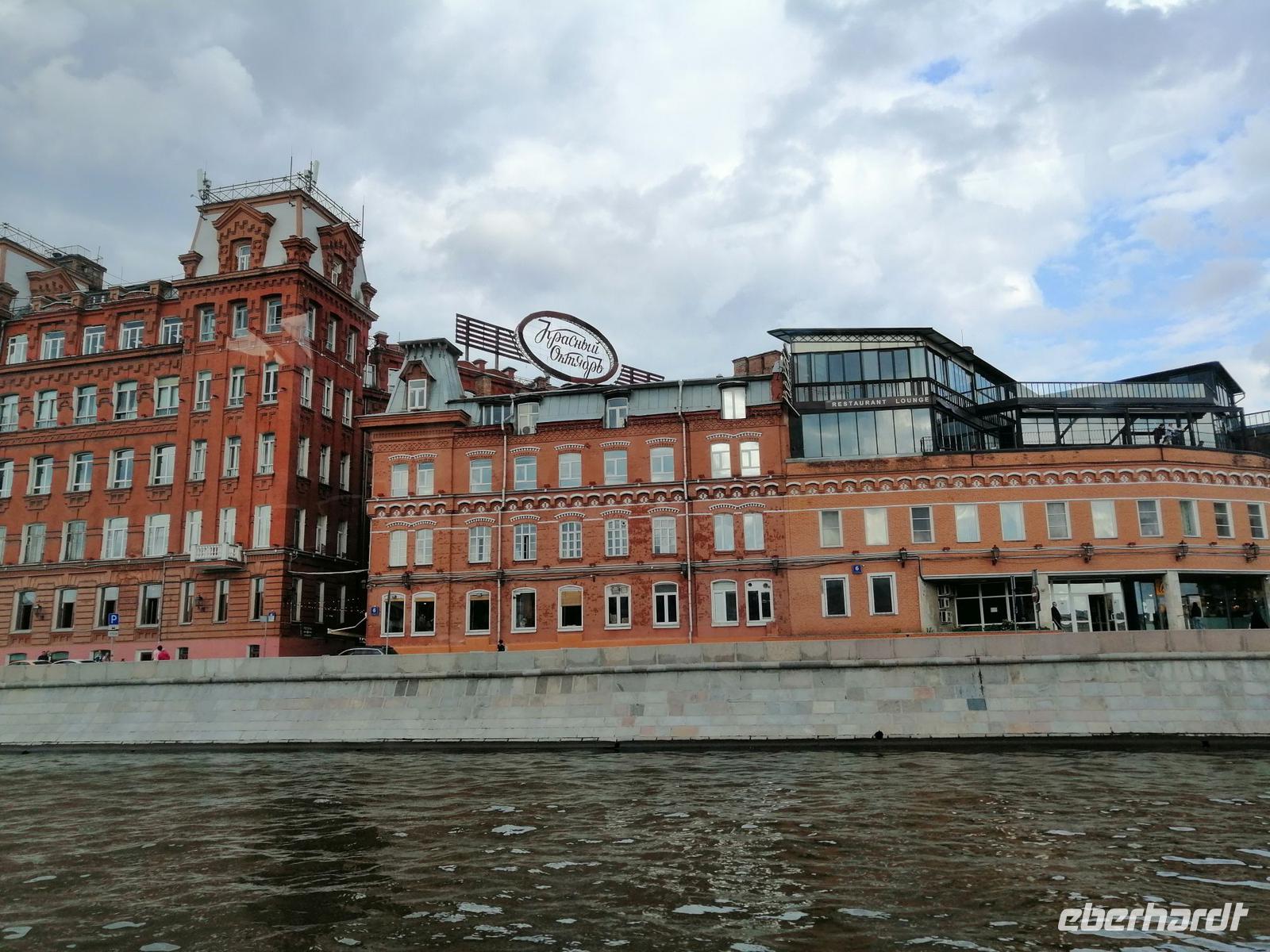 Wir gingen durch den Park zur Uferpromenade, wo sich die Anlegerstellen befanden. Der Fluß Moskwa fließt übrigens auf einer Strecke von 3 km am Park entlang. Die Schifffahrt auf dem Panoramaschiff war sehr komfortabel und angenehm. Nach dem leckeren Mittagessen erzählte uns Valeria über die Gebäude und Sehenswürdigkeiten, die wir links und rechts von uns sahen.