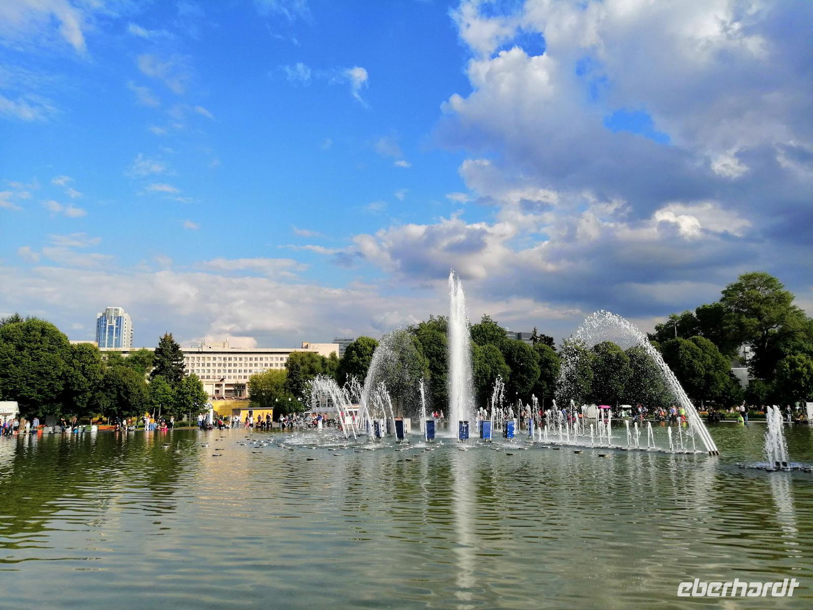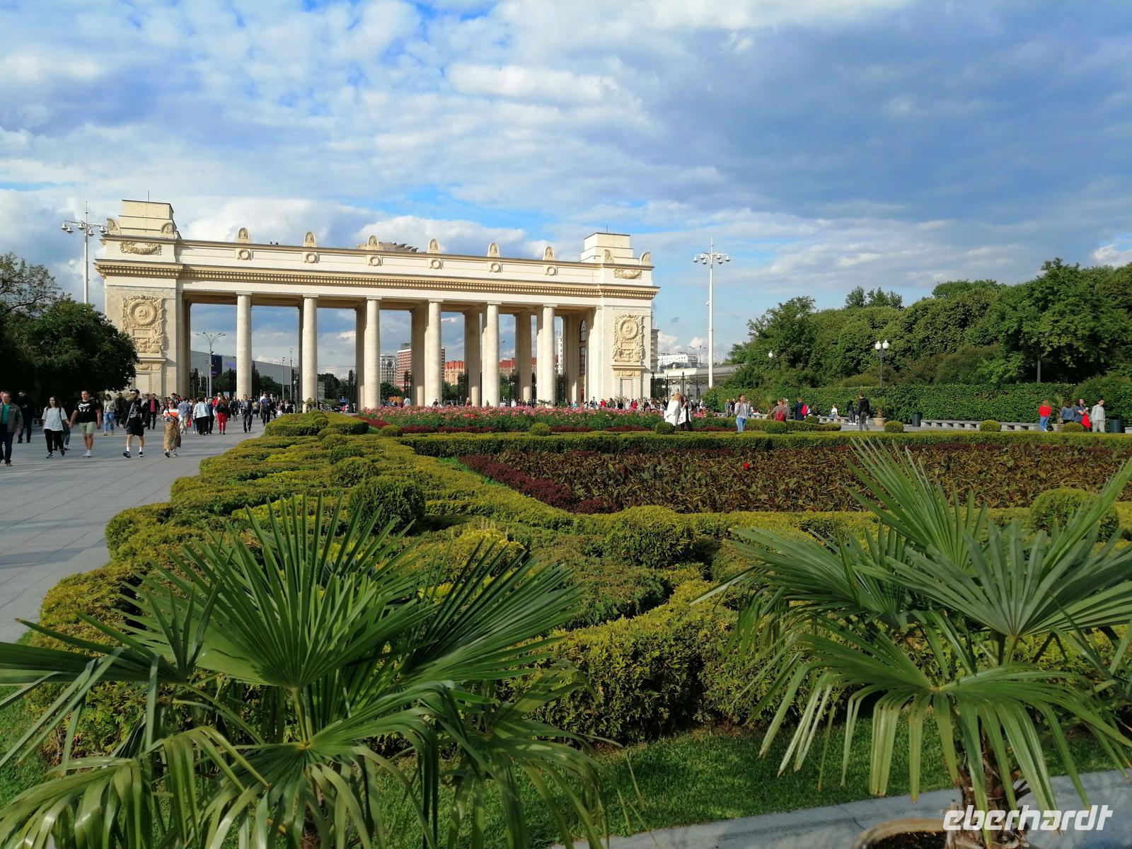 Nach der Besichtigung des Kremls wurden wir direkt am Kreml von unserem Bus abgeholt und fuhren zum Gorki Park. In diesem Park, der ein Territorium von ca. 120 ha einnimmt, gedeihen über 300 Arten Bäume und Sträucher - Eichen und Birken, Ulmen und Linden, sibirische Blautannen, Kastanienbäume, ukrainische Pappeln, Taiga-Lärchen, Apfelbäume, Birnenbäume und andere Obstbäume. Vor allem werden hier jedoch jährlich mindestens 2 Millionen Blumen angepflanzt. Dieser blühende Park entstand an einem Ort, wo es früher nur Kleingärten und Ödland gab. 1923 wurde hier die erste Landwirtschafts-Industrie-und Handwerks-Ausstellung eröffnet. Danach wurde das Territorium planiert und 1928 wurde der Kulturpark eröffnet.