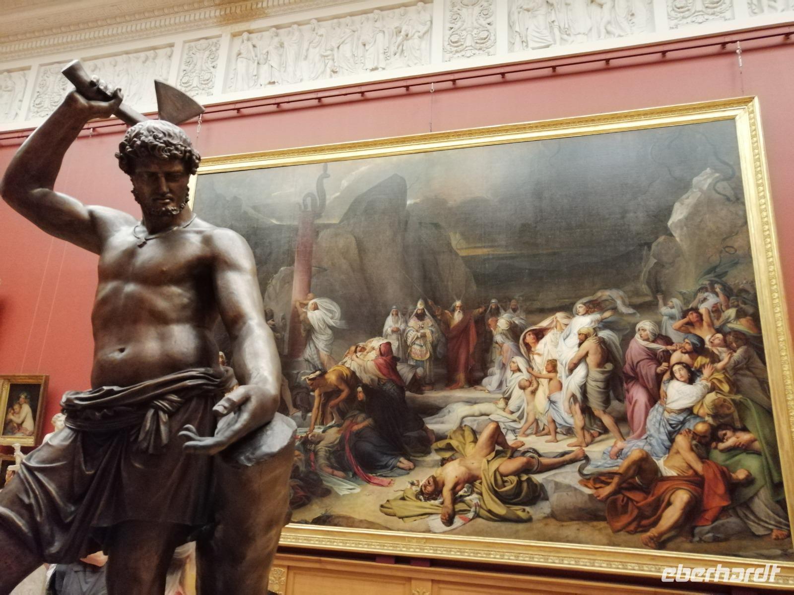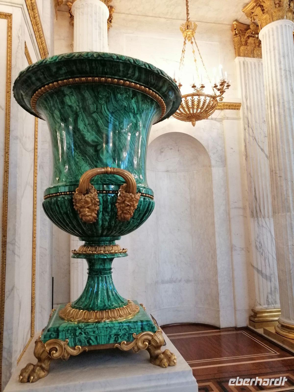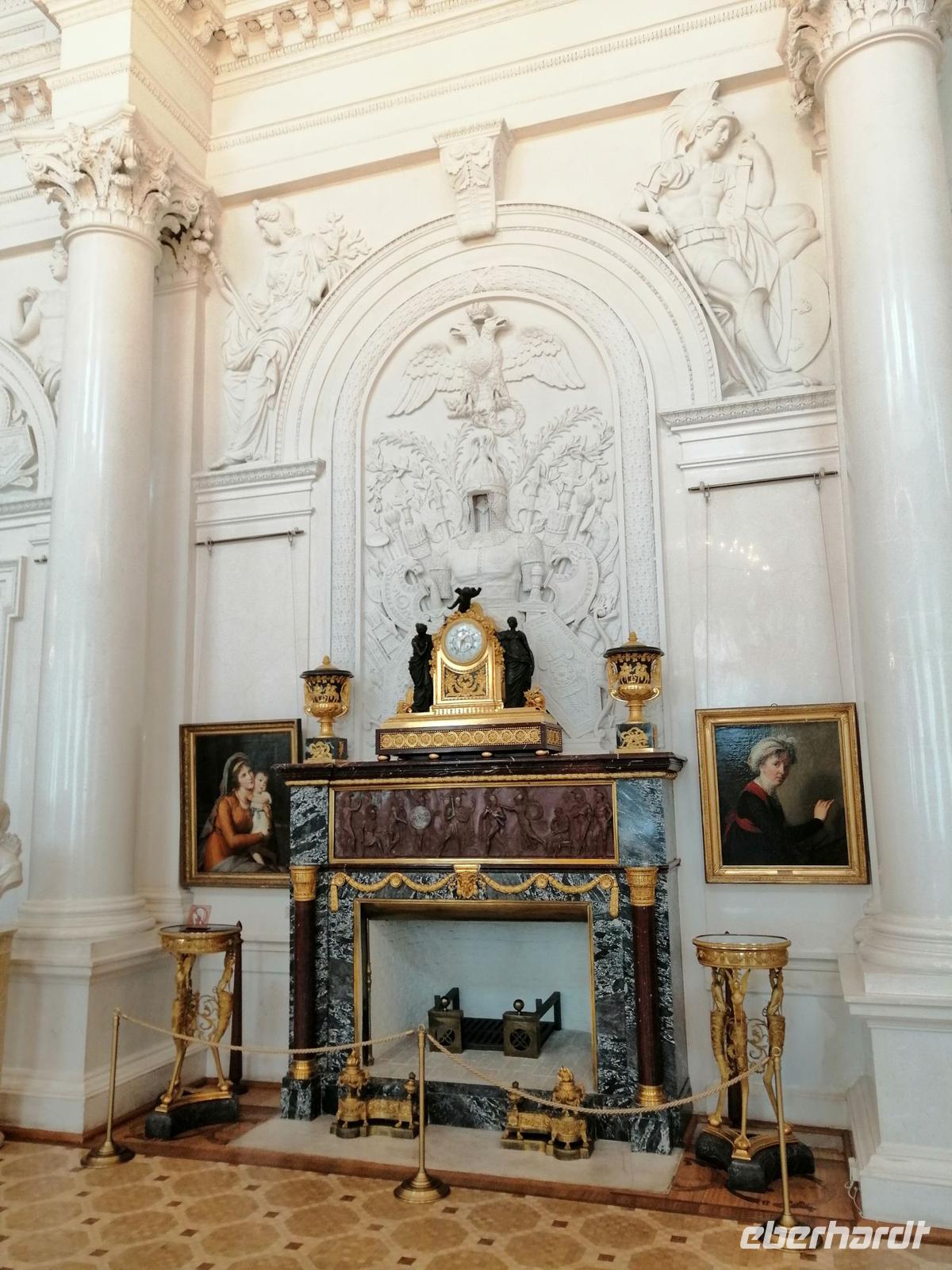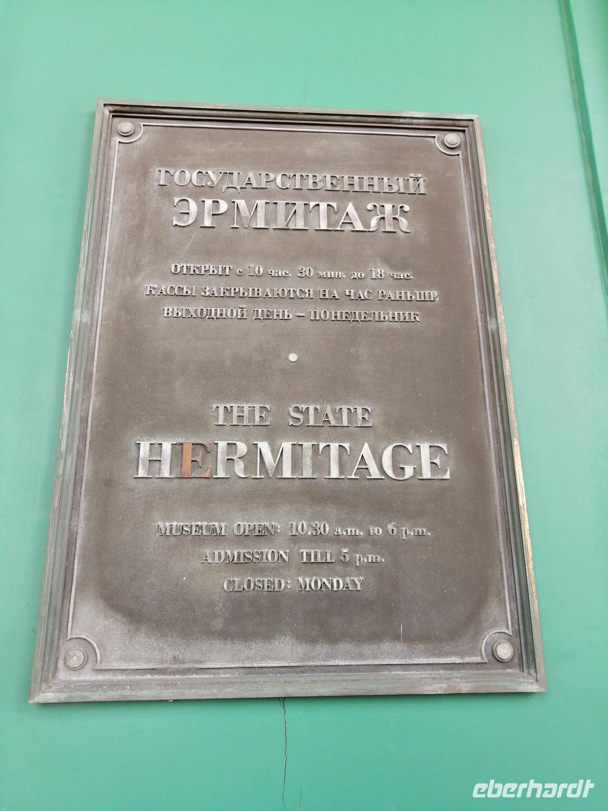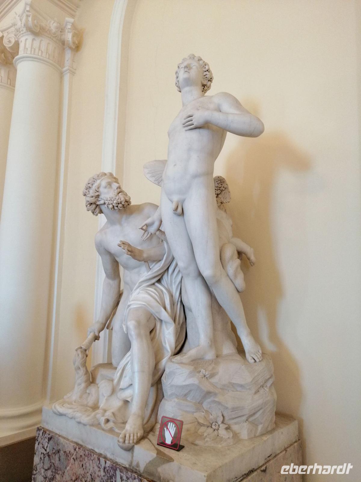 Danach gingen wir in die Eremitage, die vom Architekten Domenico Trezzini entworfen wurde. Die Eremitage ist ein echtes Wahrzeichen von Sankt Petersburg und ist durch die Touristen aus der ganzen Welt sehr beliebt. Eine große lange Warteschlange stand vor dem Eingang. Das Warten dauerte aber nicht lange und der Besuch lohnt sich auf jeden Fall. Besonders interessant wurde unsere Führung durch die Erzählungen von Eugen zu den ausgestellten Gemälden. Natürlich hat uns die Zeit nicht gereicht, alle wunderschöne Bilder anzuschauen aber nach ca. zwei Stunden Besichtigung bekamen wir einen guten Eindruck über die Schätze von Katharina die Große, die den Grundstock für diese Sammlung legte.