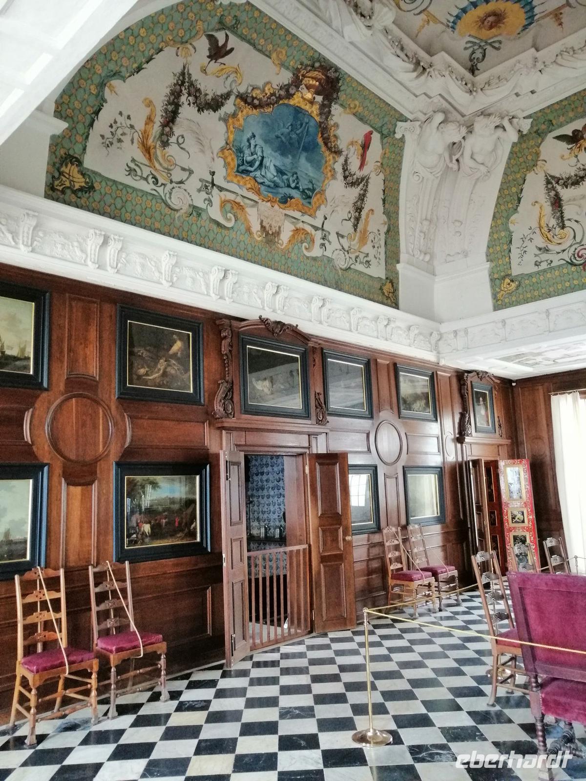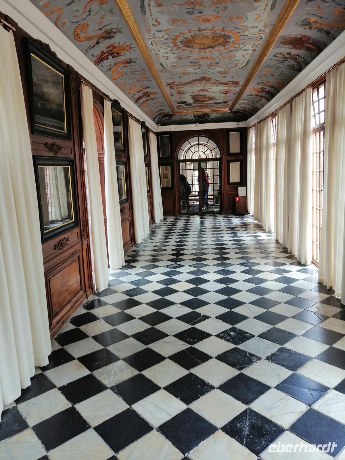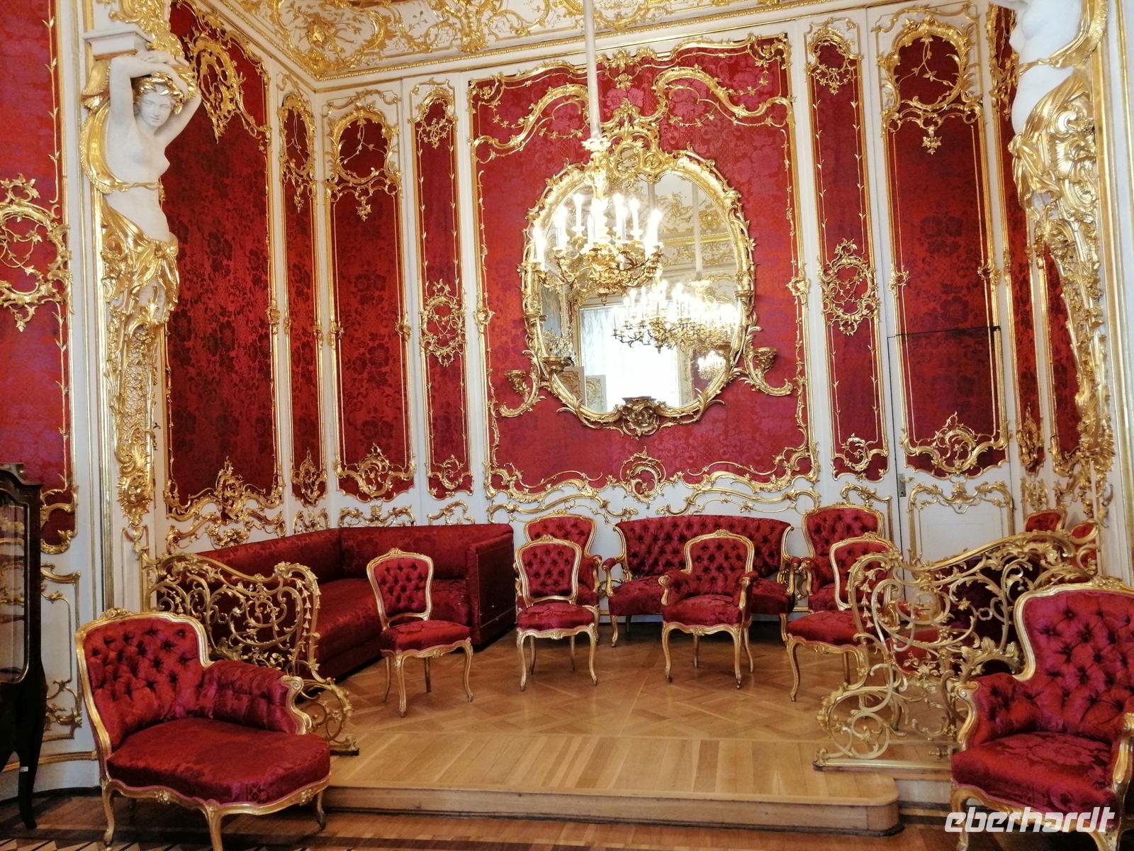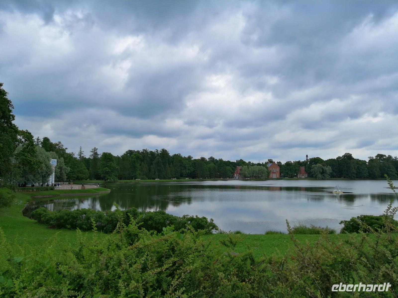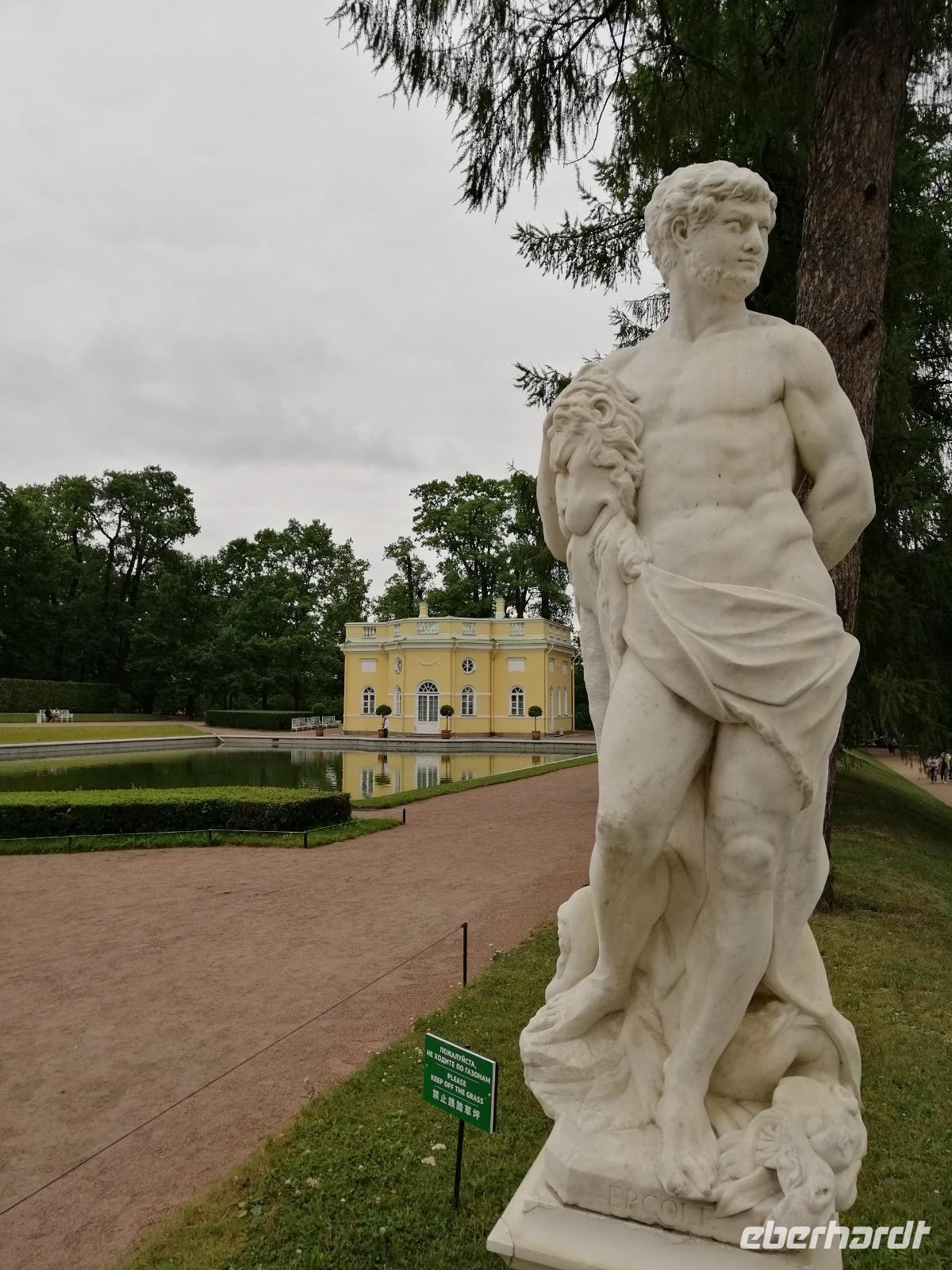 Die Fahrt nach Peterhof mit dem Tragflächenboot „Raketa" war sehr komfortabel und dauerte nur eine halbe Stunde. Trotz des für Sankt Petersburg typisch regnerischen Wetters schauten wir uns die wunderschöne Parkanlage der ehemaligen Zaren-Sommerresidenz an. Eugen verriet uns glücklicherweise rechtszeitig die versteckten „Spritz-Fallen" im Park, die neugierigen Touristen unerwartet mit Wasser bespritzten. Danach teilten wir uns in zwei Gruppen auf und besuchten das kleine Schlösschen Monplaisir, direkt an der Ostsee gelegen. Das Gebäude ließ der Zar Peter I. im holländischen Still errichten. Das Haus ist zwar sehr lang aber nicht so breit und ist durch die vielen Fenster sehr hell.