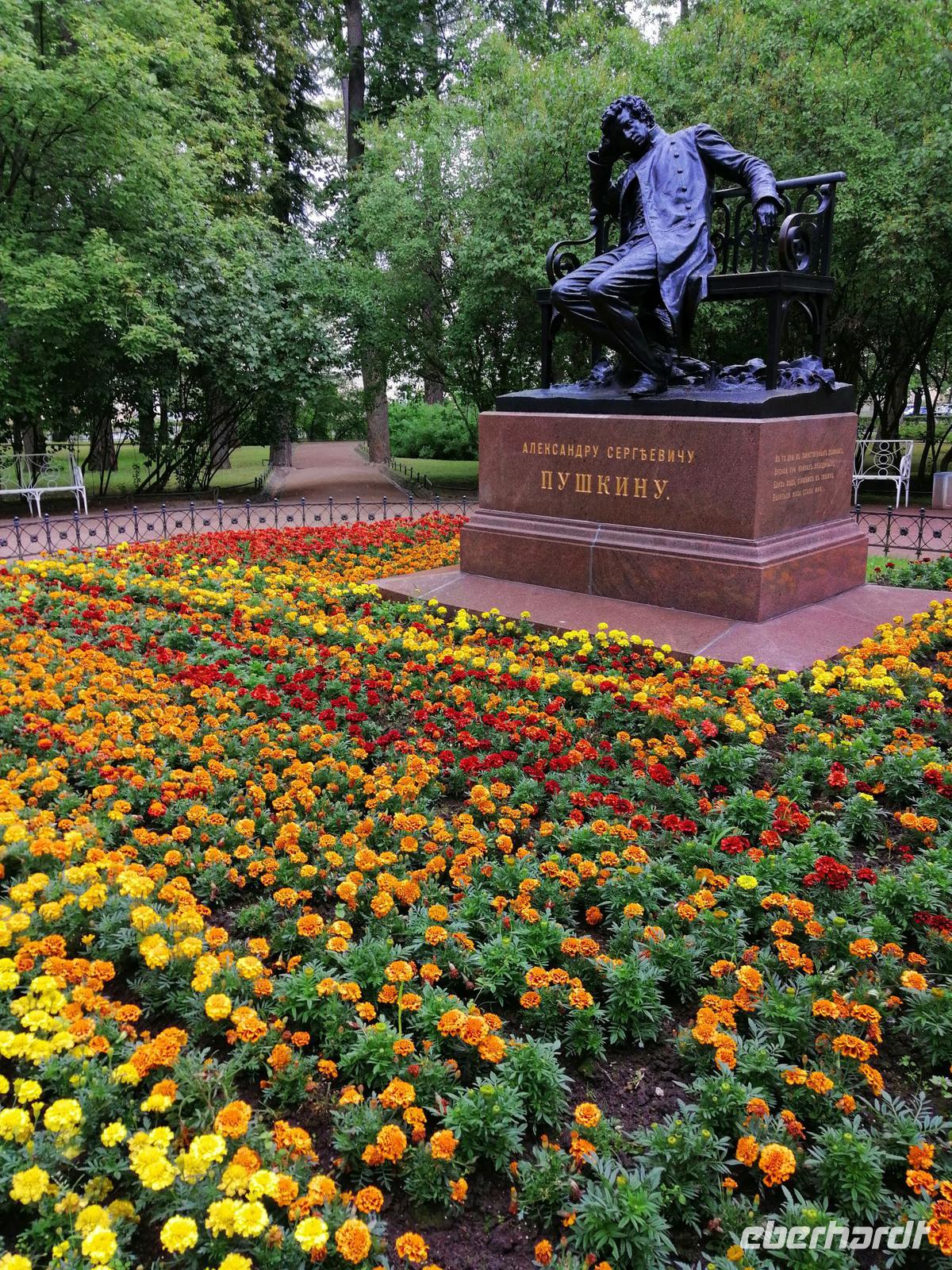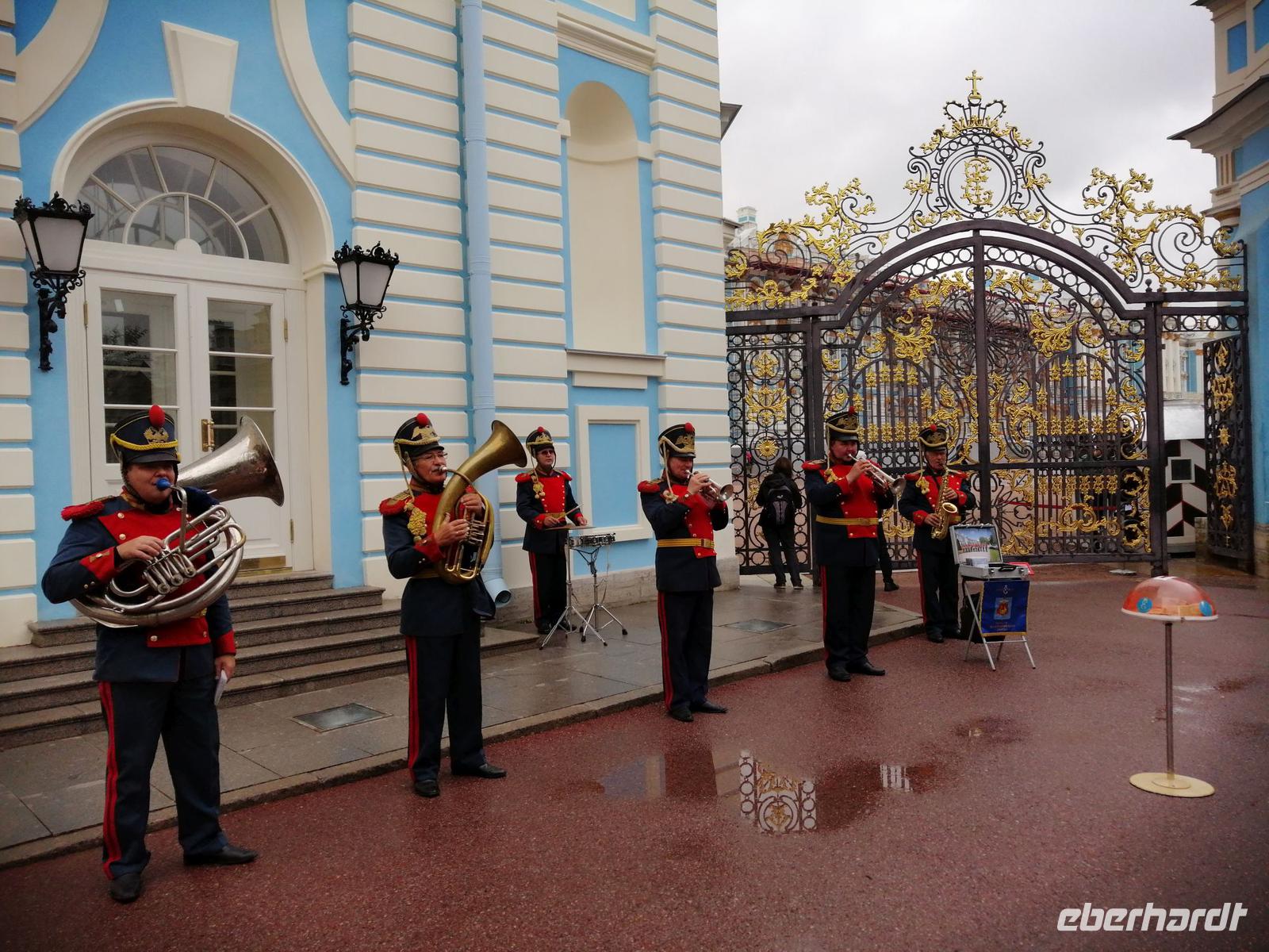 Und bei uns steht heute die Stadt Puschkin auf unserem Programm. Wir starteten um 9:45 Uhr von unserem Hotel los. Die Stadt Puschkin hieß bis 1918 Zarendorf (Zarskoe Selo) und befindet sich etwa 25 km südlich von Sankt Petersburg. Zarskoje Selo ist eines der schönsten Residenz-Ensembles der Welt und stellt eine einzigartige Symbiose von Schlössern und Parks dar. Wichtigste Sehenswürdigkeiten sind das Puschkin-Museum, die ehemalige Sommerresidenz der russischen Zaren, der Katharinenpalast, die ehemalige Hauptresidenz des Zaren im Alexanderpalast, eine Vielzahl von Schlösschen und Pavillons sowie der Stadtkern der Residenzstadt. Das Ensemble von Zarskoje Selo wurde 1990 von der UNESCO in die Liste des Weltkultur- und Naturerbes der Menschheit aufgenommen.