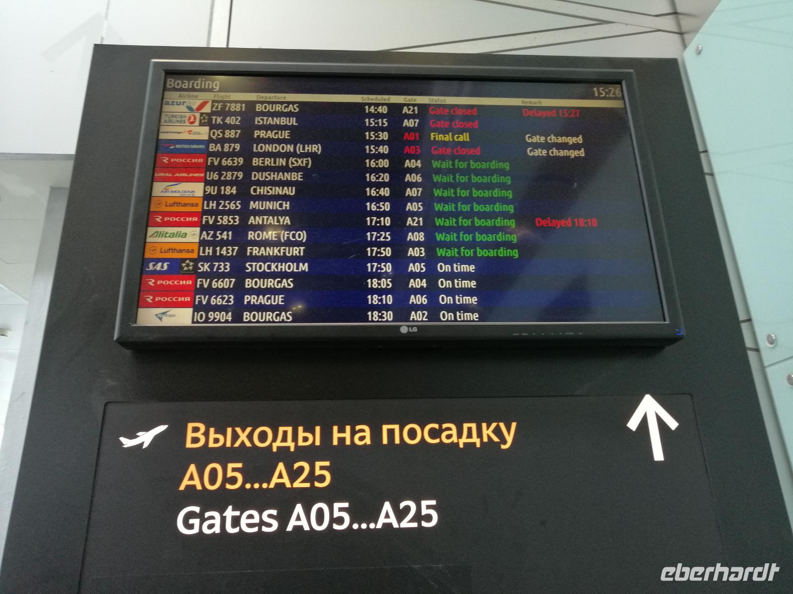 Ein Teil unserer Gruppe (8 Personen) traf sich am Flughafen Dresden kurz vor 5 Uhr morgens. Nach dem gemeinsamen Check-In und Gepäckabgabe flogen wir nach München. In München trafen wir die anderen Reiseteilnehmer und flogen gemeinsam nach Moskau. Einige Reisegäste flogen selbständig nach Moskau und wurden dort am Flughafen von einer Reisebegleitung abgeholt.
