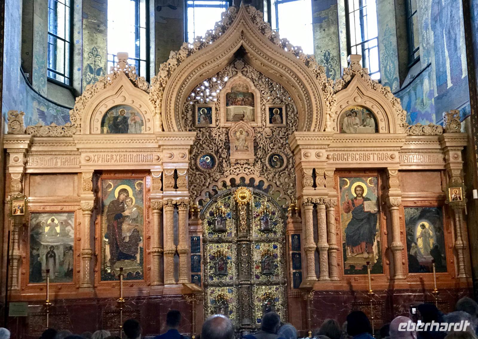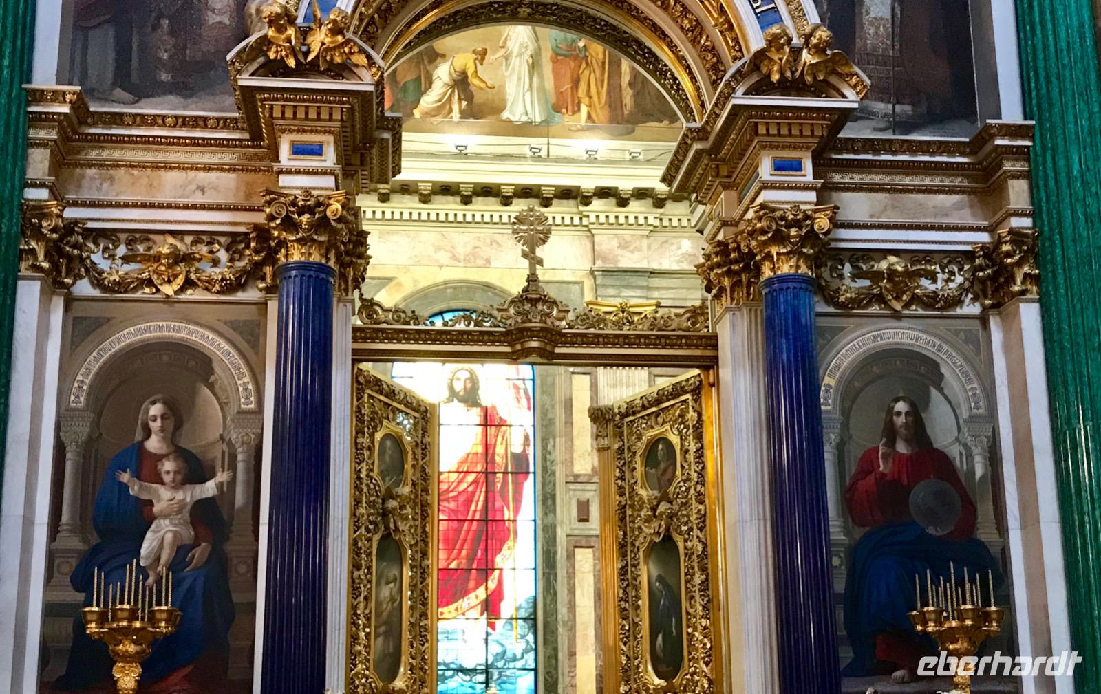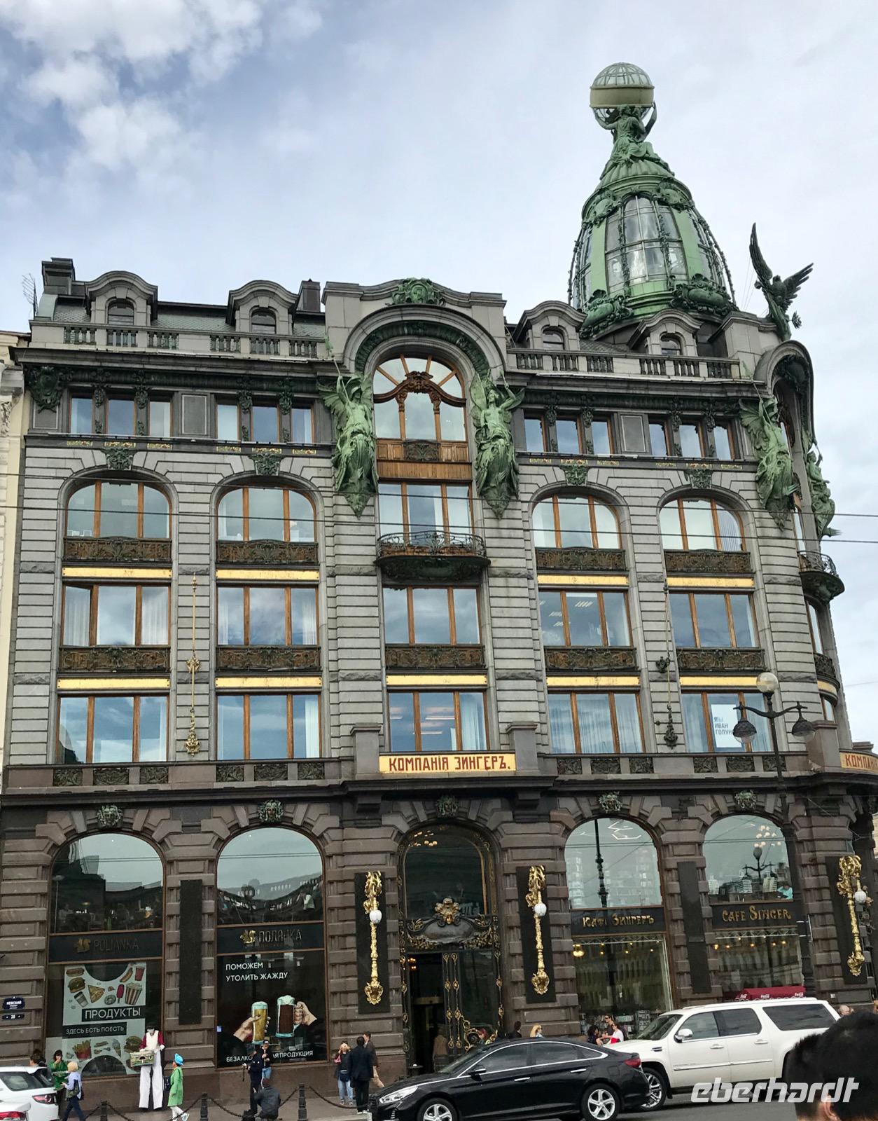 Unsere Besichtigungstour geht weiter und wir verabschieden den Bus am Isaaksplatz. Es ist Mittag. Vera führt uns in ein kleines Szenerestaurant in einem Hinterhof unter freiem Himmel. Es ist so, als wäre man in Dresden-Neustadt oder in Berlin. Junge Leute, alternatives Leben, moderne Musik - da hat die Jugend schon lange aus dem Fenster nach Europa gesehen. Nach dem Mittag gehen wir zur Isaakskathedrale und bewundern die 101m hohe Kathedrale mit ihren Superlativen des Sakralbaus - 12000 Menschen haben hier Platz, 10762 Pfähle wurden in den Sumpfboden gerammt, um den Bau zu errichten, und für das Vergolden der viertgrößten Kuppel der Welt wurden 400kg Gold verbraucht. Es wären noch sehr viele Besonderheiten dieses Kirchenbaues zu nennen, aber lassen wir die Fakten, sehen wir uns einfach in aller Ruhe um. Weiter geht unser Spaziergang zum Newski-Prospekt, dann zur Christi-Auferstehungskirche mit Innenbesichtigung, zum Singer-Haus und zum Jelissejew-Feinkostladen. Da waren wir gestern schon, aber es ist immer wieder schön, die Sehenswürdigkeiten unter einem anderen Blickwinkel zu betrachten. Wir sind pflastermüde. So trennt sich unsere Gruppe. Einige erkunden selbst die Stadt, andere besuchen ein Café in einem Hinterhof und fahren mit dem Bus zum Hotel. Schließlich müssen wir fit für abends sein, denn 5 Minuten vor Mitternacht holt uns der Bus ab.