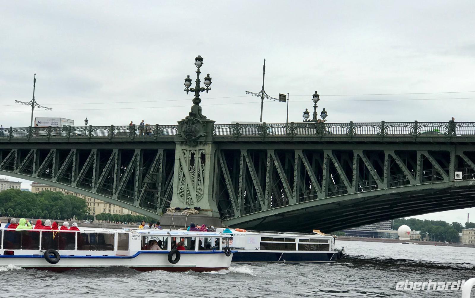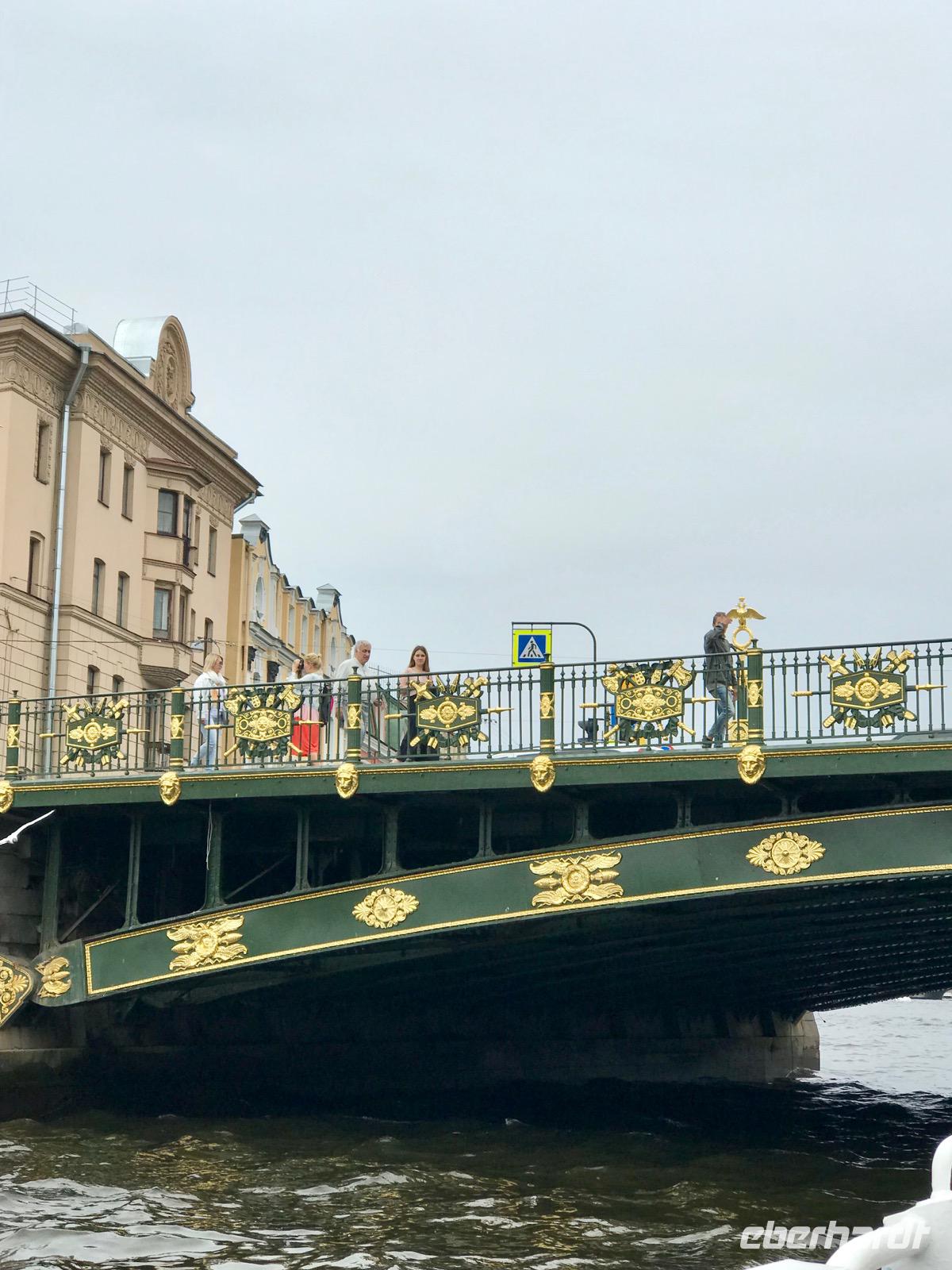 Der Nachmittag steht für eine fast schon private Bootstour auf der Fontanka, Newa, Moika und den Kanälen zur Verfügung. Vera hat uns ein kleines Boot organisiert und so können wir eine Stunde lang vom Wasser aus die Paläste, Gärten, Brücken und Inseln in Ruhe betrachten. Ein anderer Blickwinkel tut sich auf.
