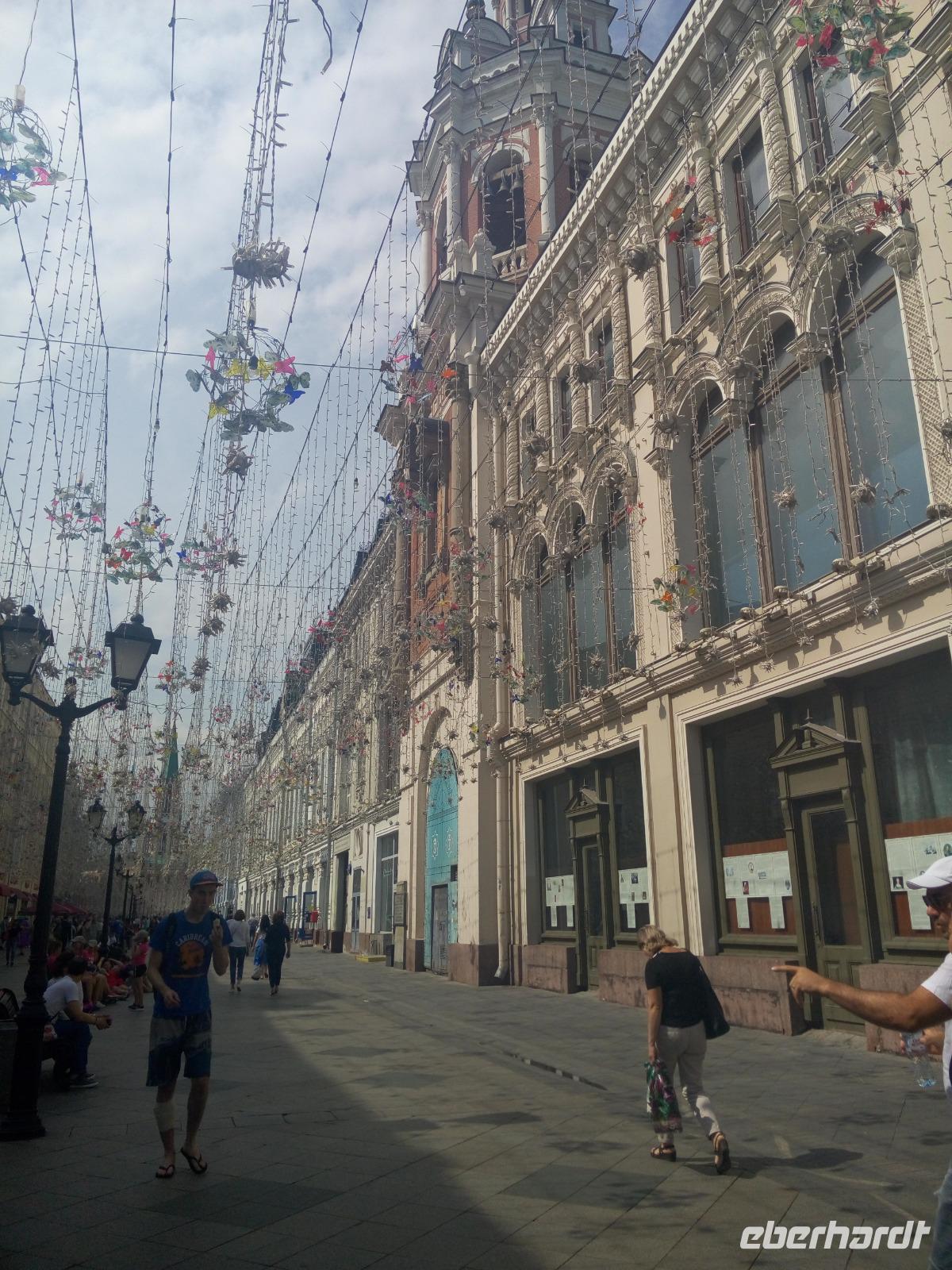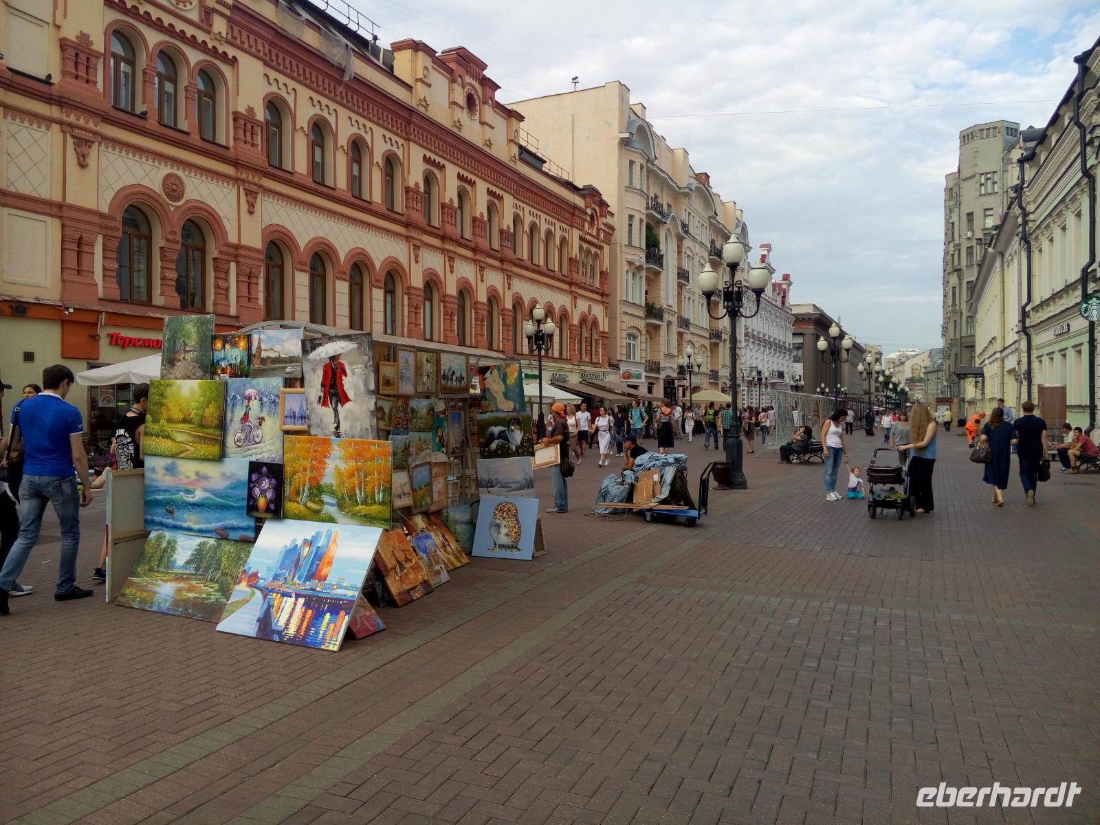 Moskau hat keine gemeinsame Fussgaengerzone. Aber es gibt mehrere Strassen, wo die Autos verboten sind. Einer von diesen Strassen war Arbat. Es gibt Neuen und Alten Arbat. Die Strasse ist voll von veschiedenen Souvenirlaeden und Cafees. Es war sehr schoen. Einige Gaeste haben dort die beruehten Matrjoshkas gekauft. Als wir zurueckkamen, war schon die Zeit, zum Abendbrot zu gehen. Drei von den Gaesten, die spaeteren Flug genommen haben, sind mittlerweise auch ins Hotel gekommen. Die Gruppe war komplett. Muede von den Emotionen sind wir ins Bett gegangen, damit wir morgen frueh die Stadtrundfahrt machen konnten.