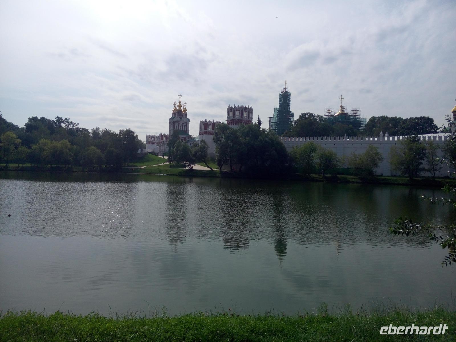 Heute ging es mit der offiziellen Programm los. Uns hat Svetlana getroffen, unser Guide fuer Moskau. Gemeinsam sind wir zu der Lomonosov Universitaet gefahren. Diese Universitaet befindet sich in einem der 7 sogenannten Stalingebaeuden. Natuerlich, war es Ferienzeit und die Universitaet war zu. Aber in der Naehe befindet sich eine Aussichtsplatform, von wo man vieles von der Stadt sehen kann und viele schoene Fotos machen kann. Unser Weg lag weiter zu dem beruehmten Novodevichy Friedhof und Kloster. Auf diesem Friedhof, heutzutage beinahe im Zentrum der Stadt sind viele bekannte Personlichkeiten begraben.