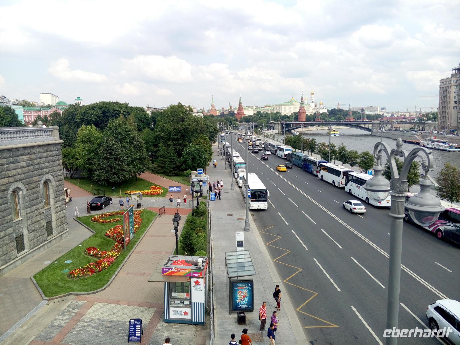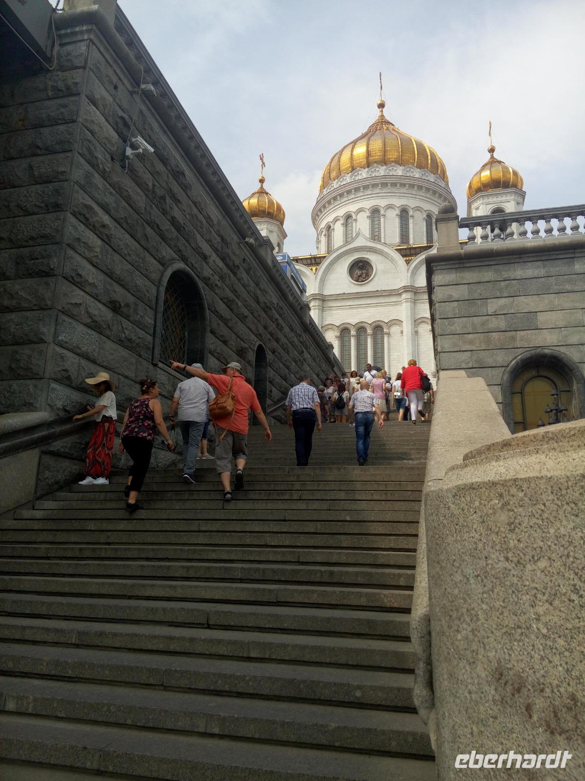 Neben dem Bolschoi Theater haben wir fuer kurze Zeit unseren Bus verlassen und sind zu Fuss zu dem Roten Platz und GUM gegangen. Eine Pause in GUM hat uns die Moeglichkeit gegeben, beruehmtes Eis zu kosten. Die Zeit war knapp und schon mussten wir weiter. An dem Zarjadie, dem neuen Park sind wir vorbeigefahren und haben die Christ-Erloeser Kathedrale besucht. Fruher war auf dieser Stelle eine andere Kirche, zu den sovietischen Zeiten wurde ein Schwimmbad gemacht. Jetzt ist es die groesste Orthodoxkirche der Welt. Unsere Reise ging weiter, jetzt unter der Erde. Wir haben die schoensten Ubahnstationen von Moskau gesehen. Das ist auch eine der tiefsten Ubahn der Welt. Beeindruckend!