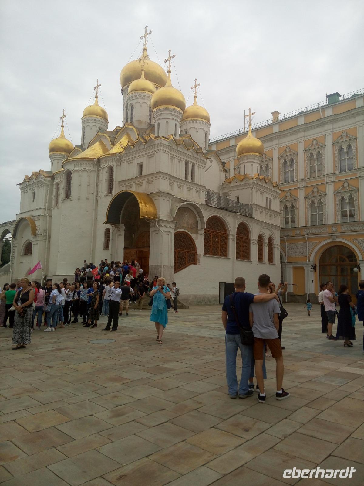Nach dem kurzen Mittagessen haben wir Kremlin besucht. Auf dem Territorium vom Kremlin gibt es viele Kirchen. Leider war die Schlange zu voll, um sie zu besuchen. Aber wir haben Zarenglocke und Zarenkanone gesehen. Ganz erschoepft sind wir zu unserem Bus gegangen, der uns zum Flughafen gebracht hat.