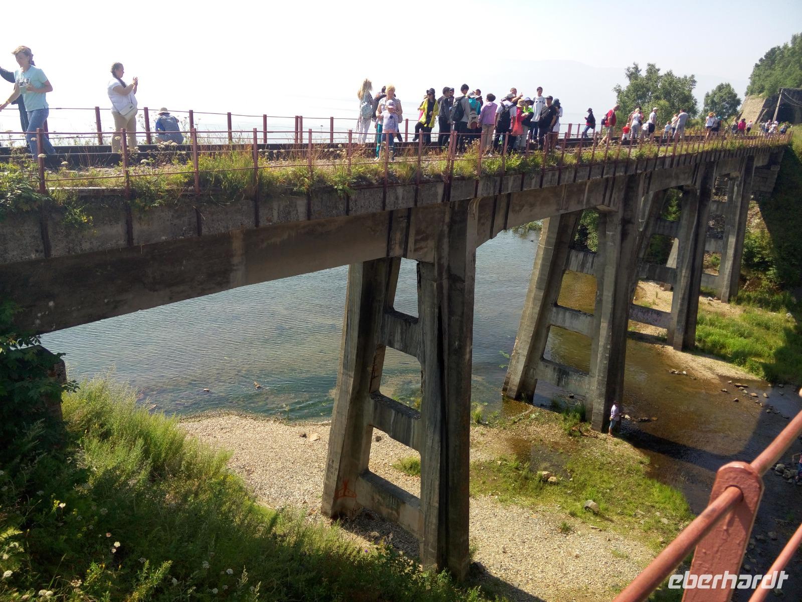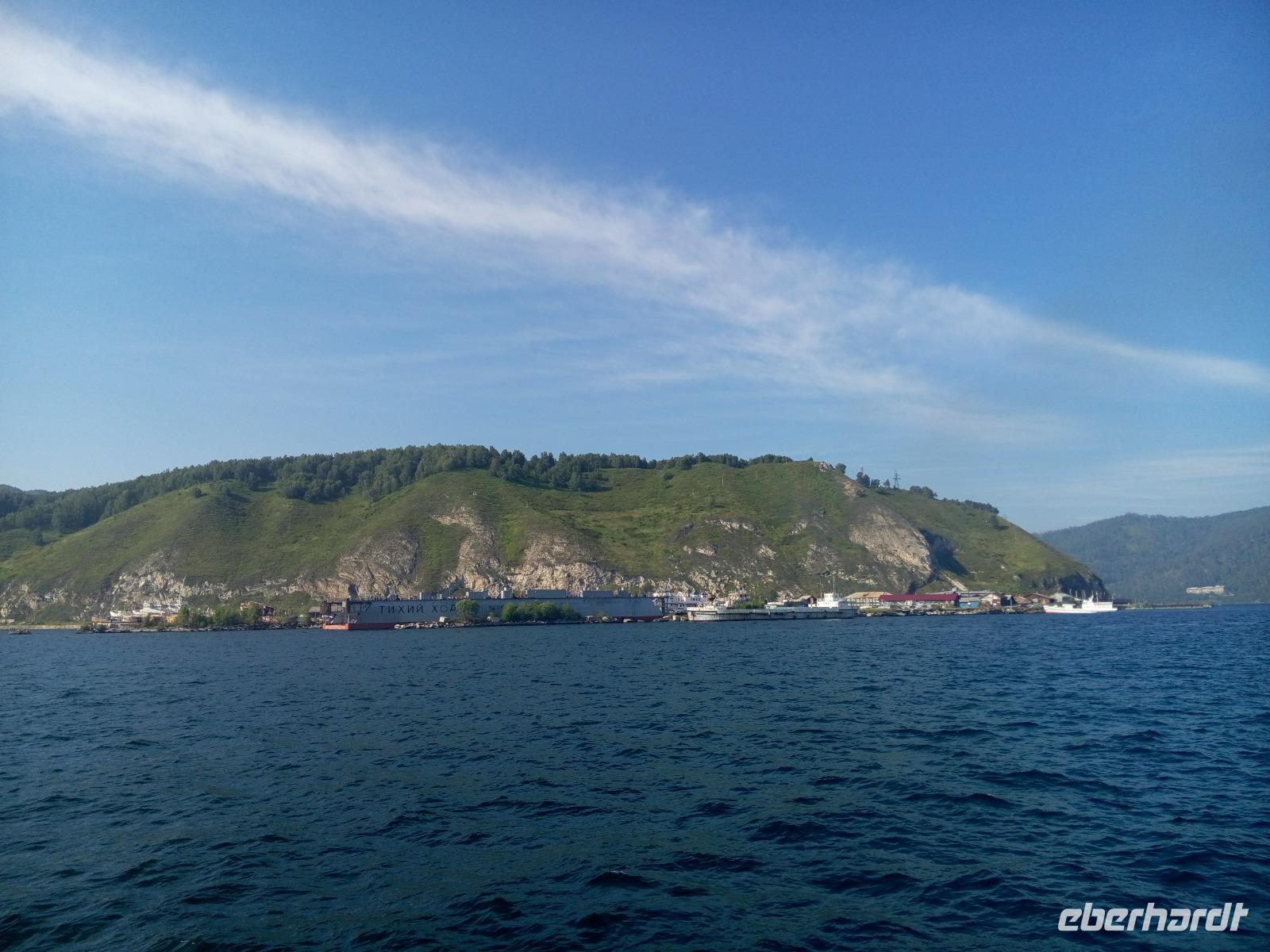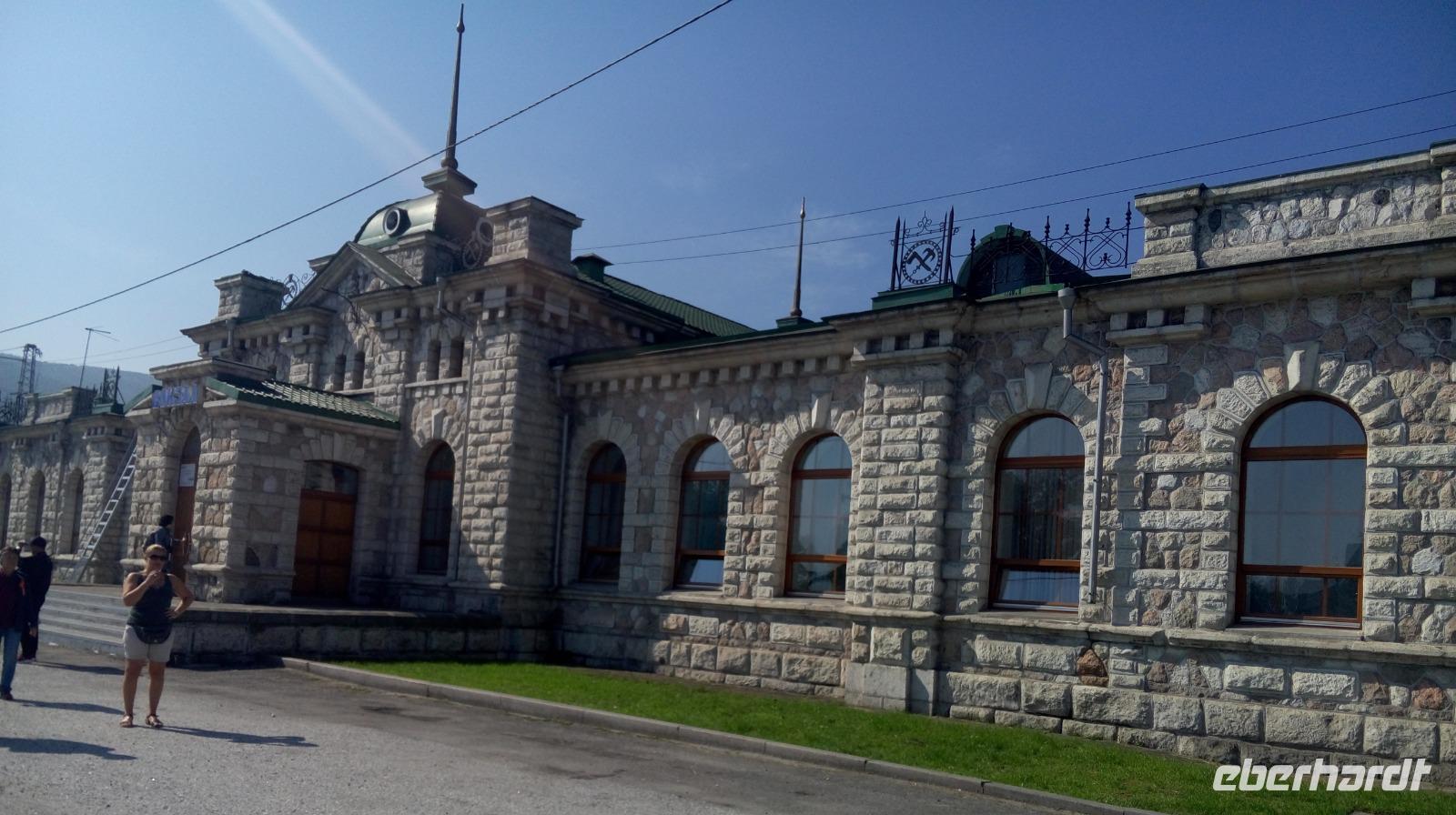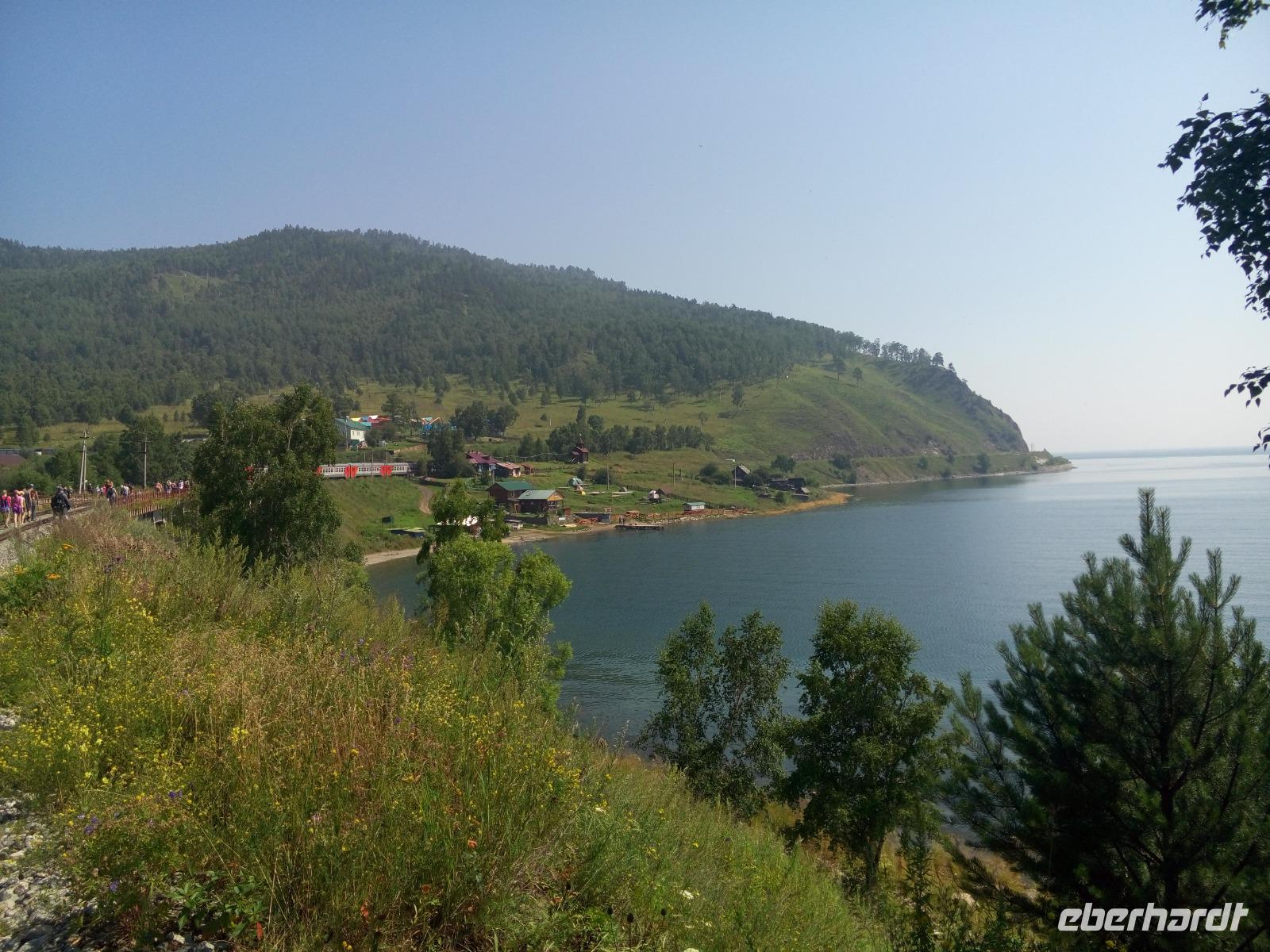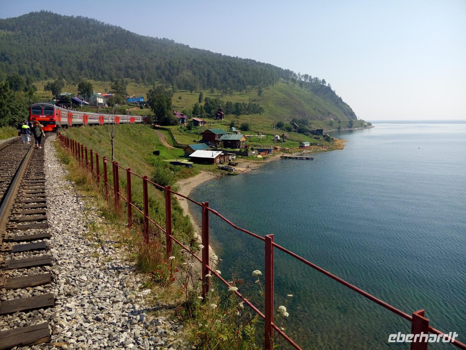 Es heisst, Sachen packen und weiter nach Listvjanka. Listvjanka ist ein kleines Dorf, 60 Km von Irkutsk entfernt. Es steht direkt am Ufer vom Baikalsee. Um das Dorf zu erreichen, konnte man natuerlich mit dem Bus fahren. Aber viel schoener ist es, einen Teil der Transsibirischen Eisenbahn, was Krugobaikalka sich nennt, zu fahren. Erstmal geht es zu der Stadt Sludjanka und dann die ganze Zeit dem Baikalufer entlang.