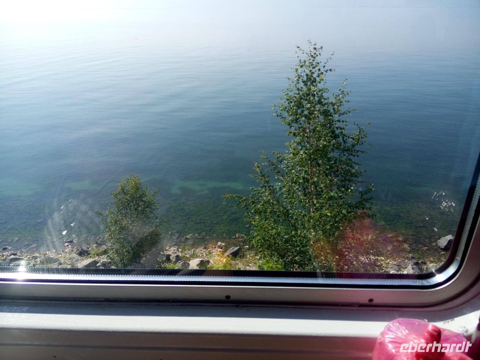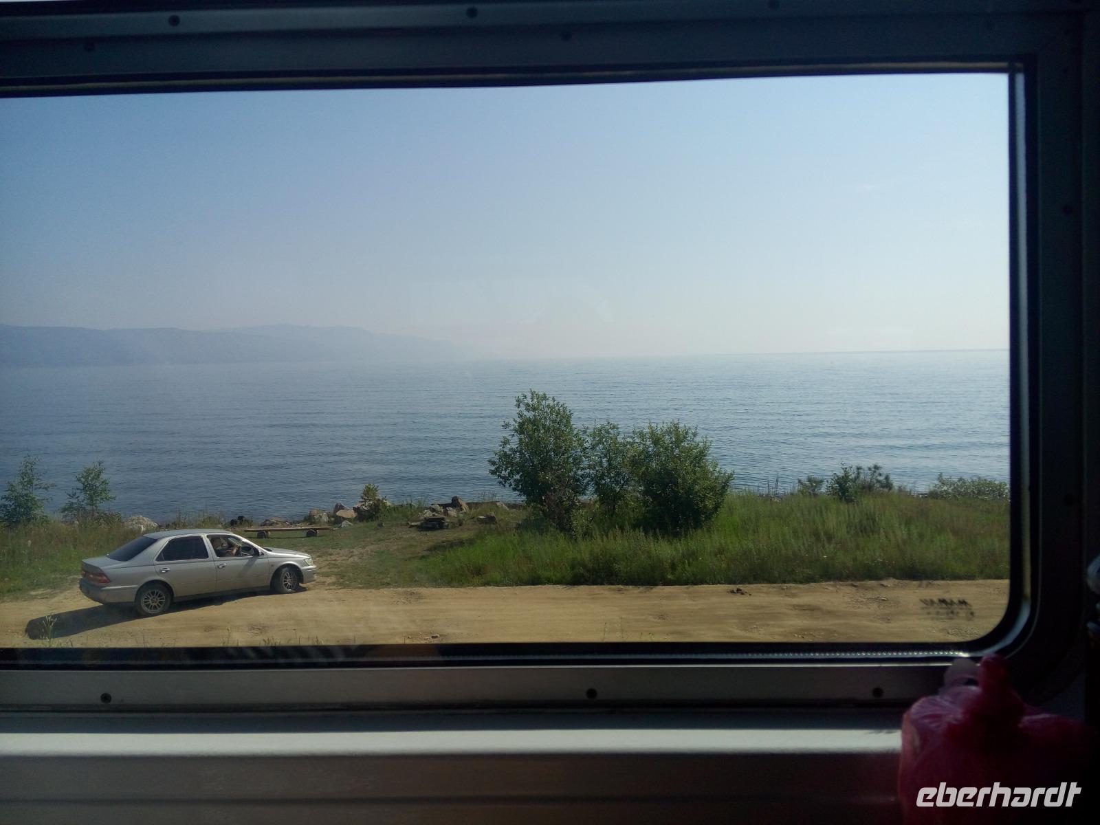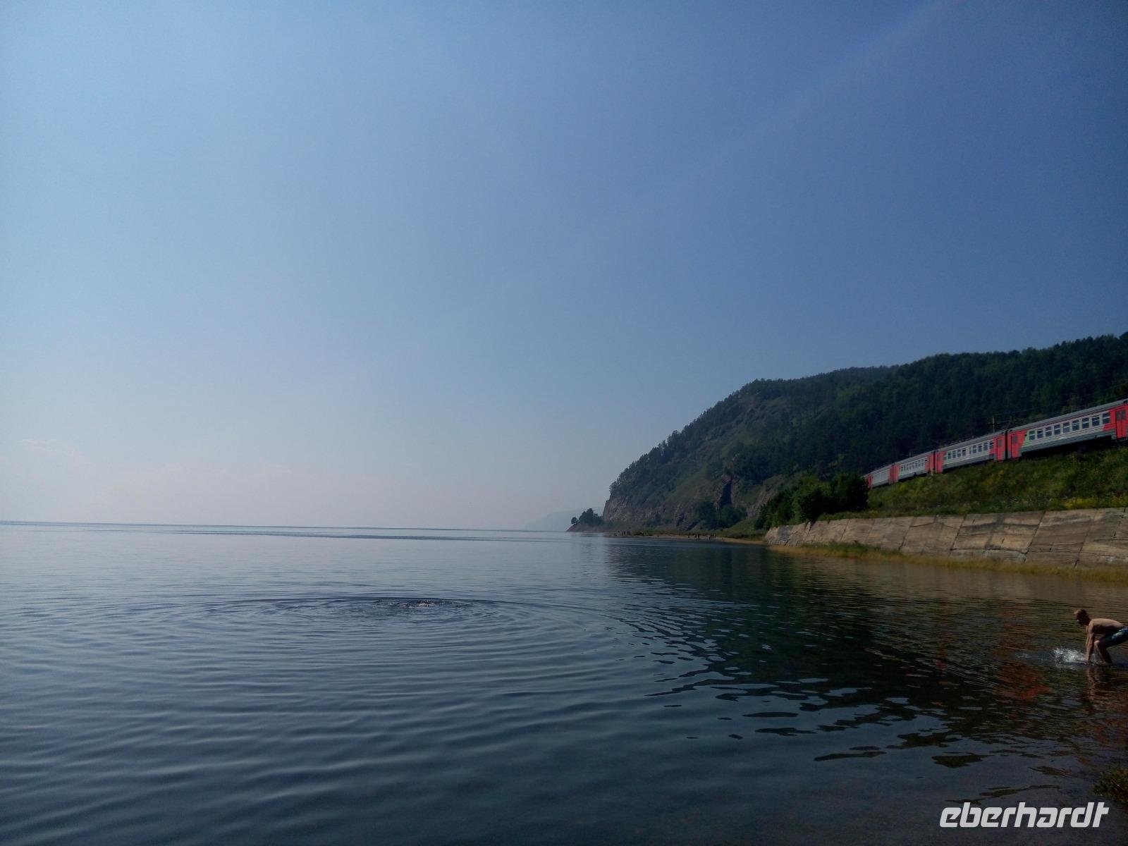 Er haelt an mehreren Haltestellen. Im Zug gab es einen Guide, der einiges erzaehlt hat. Es wurden auch Filme gezeigt. Wir haben vieles ueber die Geschichte der Region erfahren. Besonders interessant fanden wir die Baikalrobben. Man kann bis jetzt nicht erklaeren, wie sie dorthin geraten sind. Normalerweise wohnen die Robben im Salzwasser. Baikalrobbe ist die einzige, die in Suesswasser wohnt.