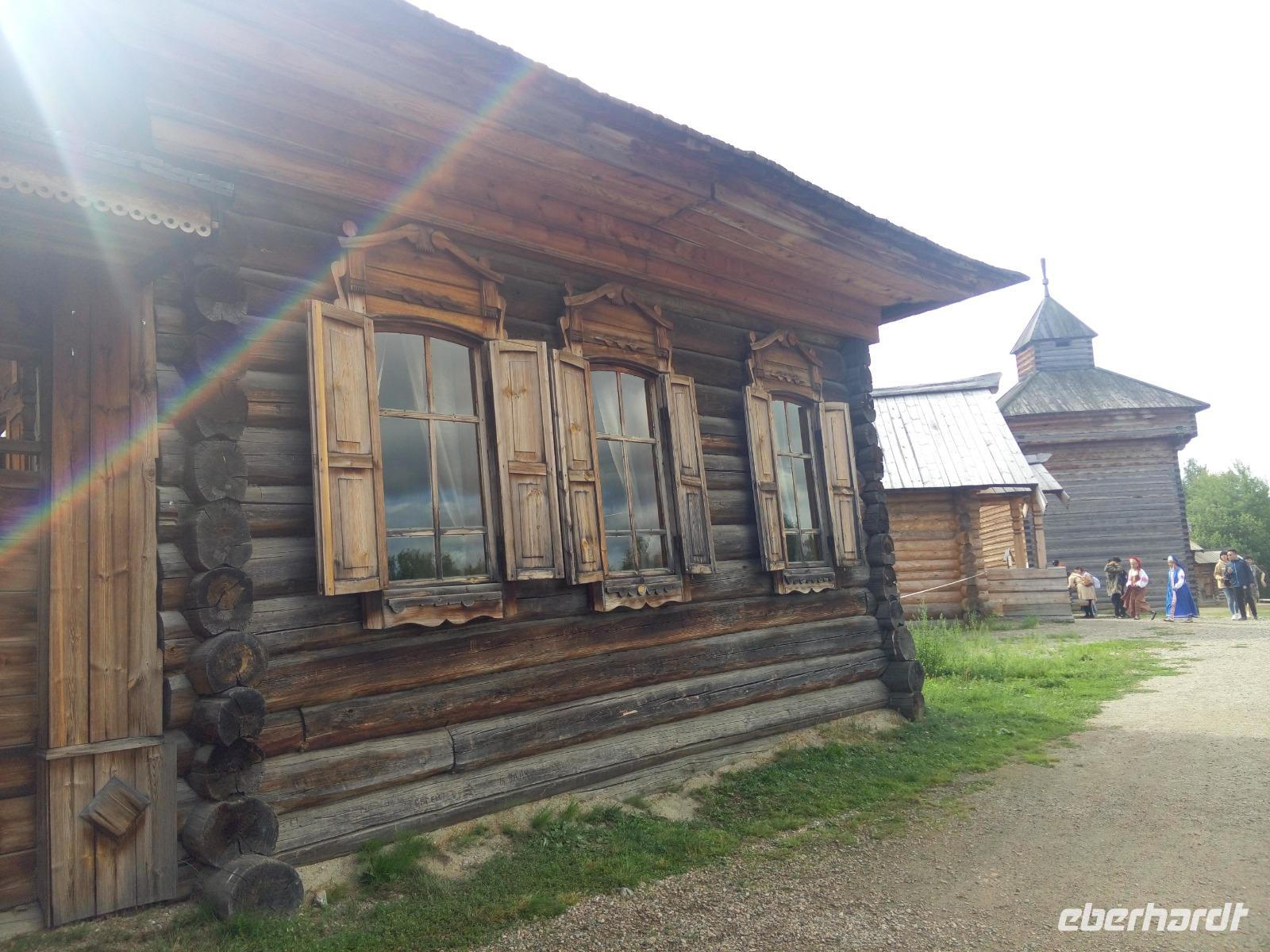 An dem Tag blieben wir in der Gegend von Listvjanka. Als allererstes haben wir Talzy besucht. Das ist eine Art Freilichtmuseum, wo Haueser von verschiedenen Doerfern stehen. Man konnte dort den ganzen Tag verbringen, aber unsere Zeit war knapp. Wir haben nur ein paar Haueser besucht, um uns den Eindruck zu verschaffen.