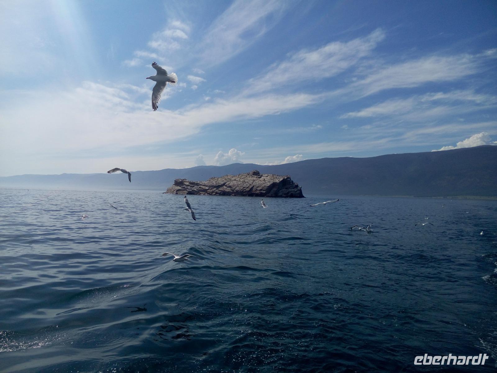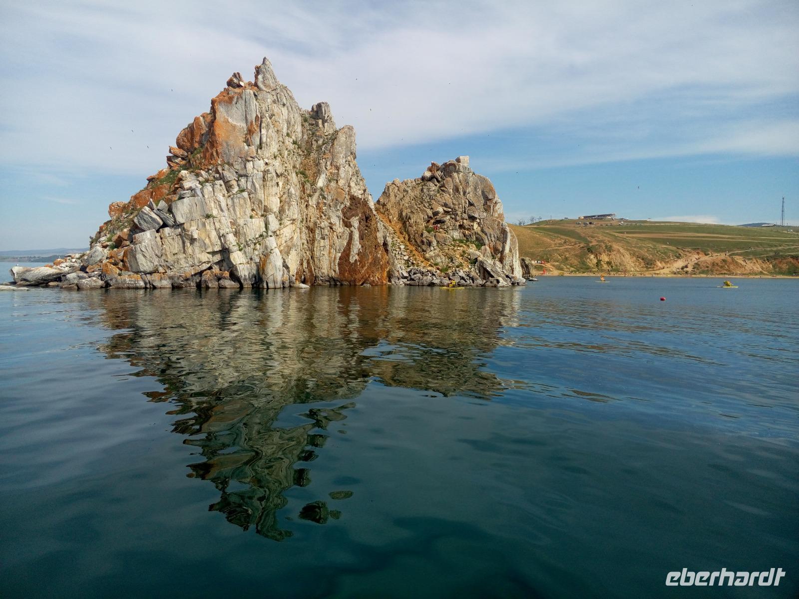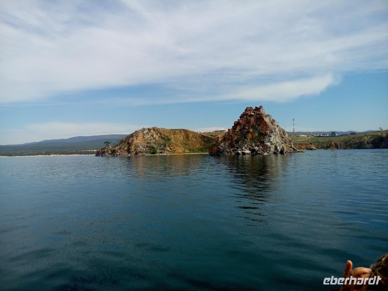 Olkhon ist die einzige bewohnte Insel auf Baikal. Aber nicht so viele Menschen wohnen dort. Es gibt beinahe keine Strasse, nicht in allen Doerfern gibt es Elektrizitaet. Es wird auch nicht so viel gemacht. Das ist ein Territorium vom Nationalpark. Doerfer und Strassen gehoeren nicht zu dem Nationalpark, da kann man ueberall gehen und fahren. Aber der Rest der Natur darf gar nicht oder nur an gewissen Stellen betreten werden. Diese Insel ist auch ein Zentrum von Schamanismus. Da kann man die Schamanen treffen. Man geht ziemlich oft zu denen um einen Ratschlag zu bekommen, wenn man krank ist, etc. Schaman ist Derjeniger, der mit den Geisten sprechen und die Wille der Geister den Menschen erklaeren kann.
