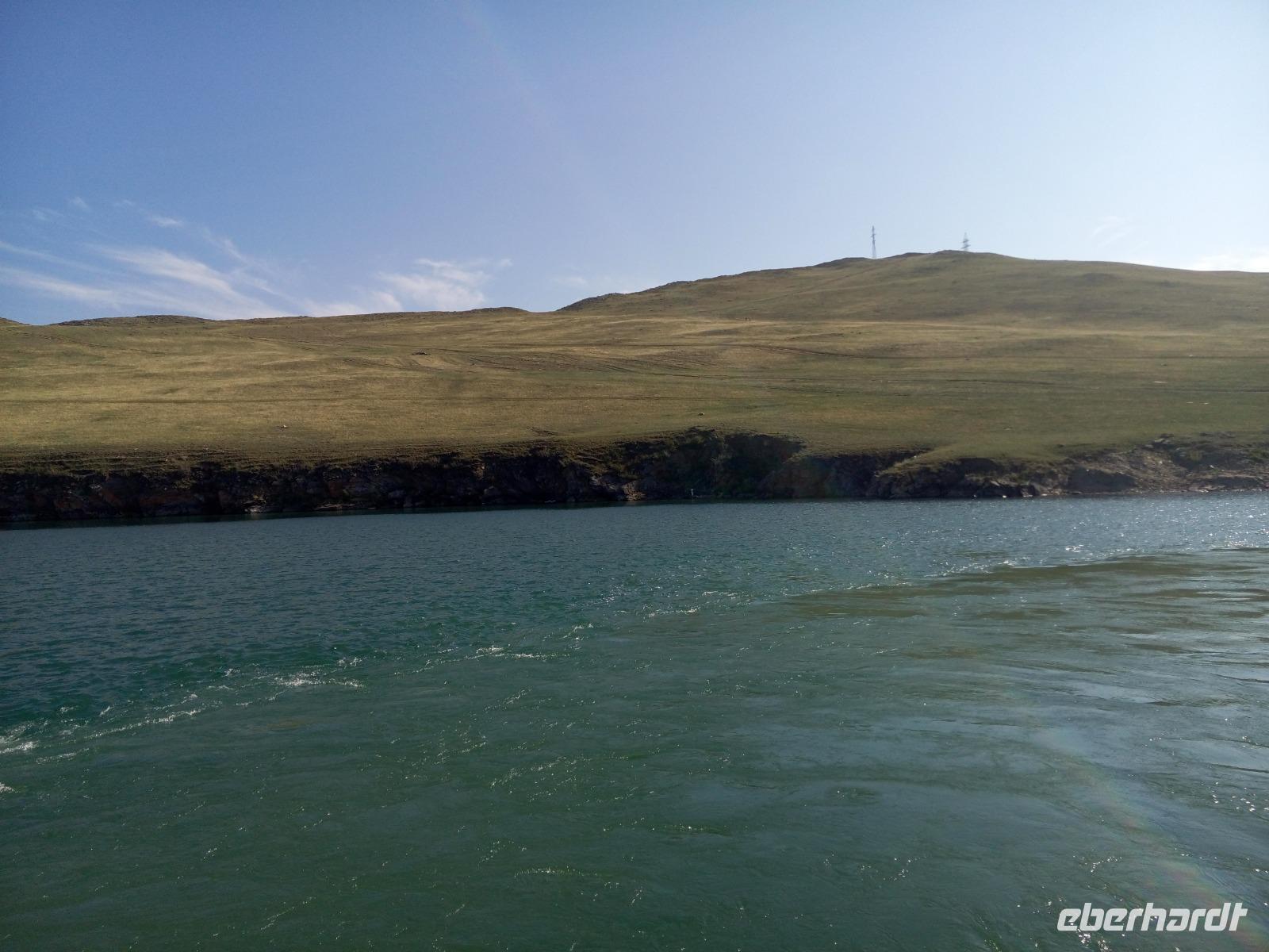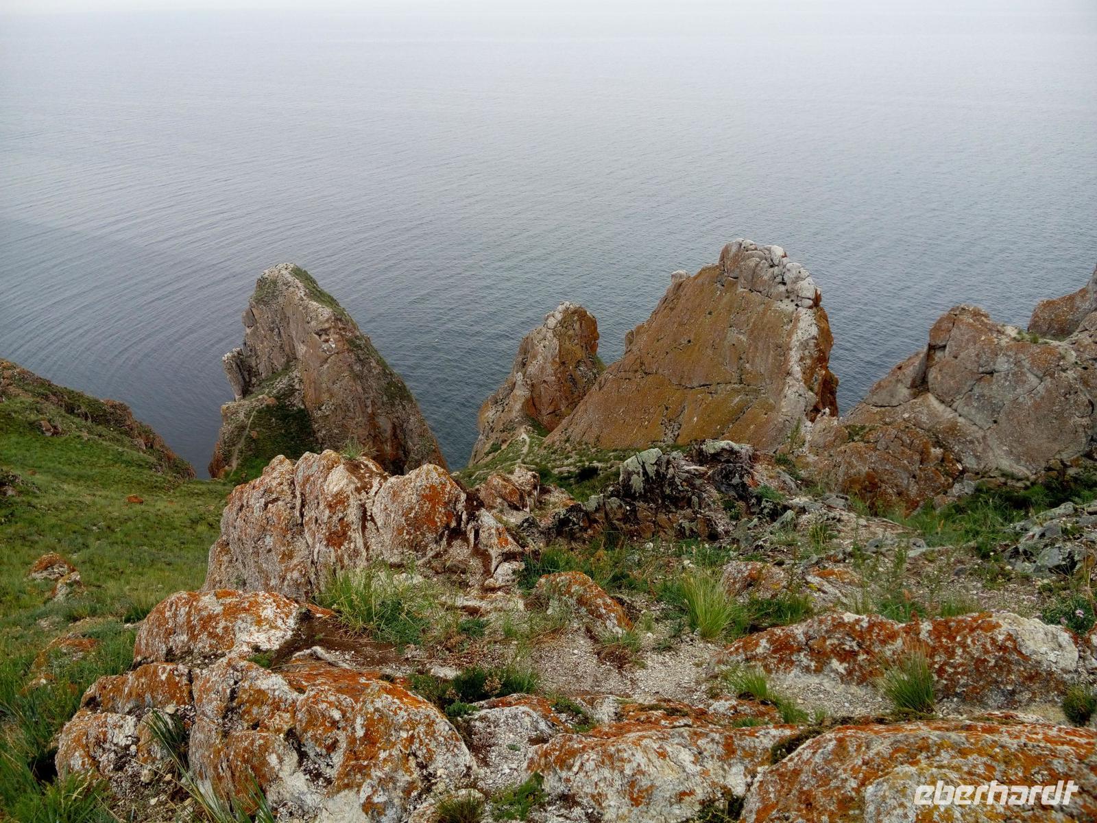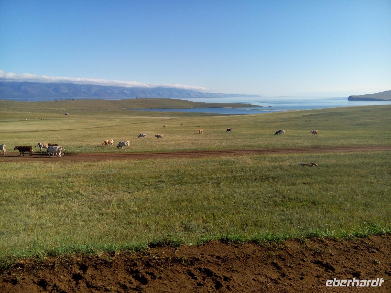Olkhon ist die einzige bewohnte Insel auf Baikal. Aber nicht so viele Menschen wohnen dort. Es gibt beinahe keine Strasse, nicht in allen Doerfern gibt es Elektrizitaet. Es wird auch nicht so viel gemacht. Das ist ein Territorium vom Nationalpark. Doerfer und Strassen gehoeren nicht zu dem Nationalpark, da kann man ueberall gehen und fahren. Aber der Rest der Natur darf gar nicht oder nur an gewissen Stellen betreten werden. Diese Insel ist auch ein Zentrum von Schamanismus. Da kann man die Schamanen treffen. Man geht ziemlich oft zu denen um einen Ratschlag zu bekommen, wenn man krank ist, etc. Schaman ist Derjeniger, der mit den Geisten sprechen und die Wille der Geister den Menschen erklaeren kann.