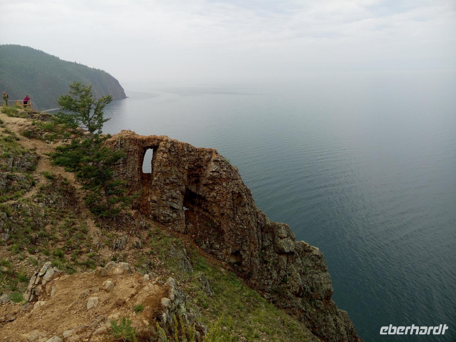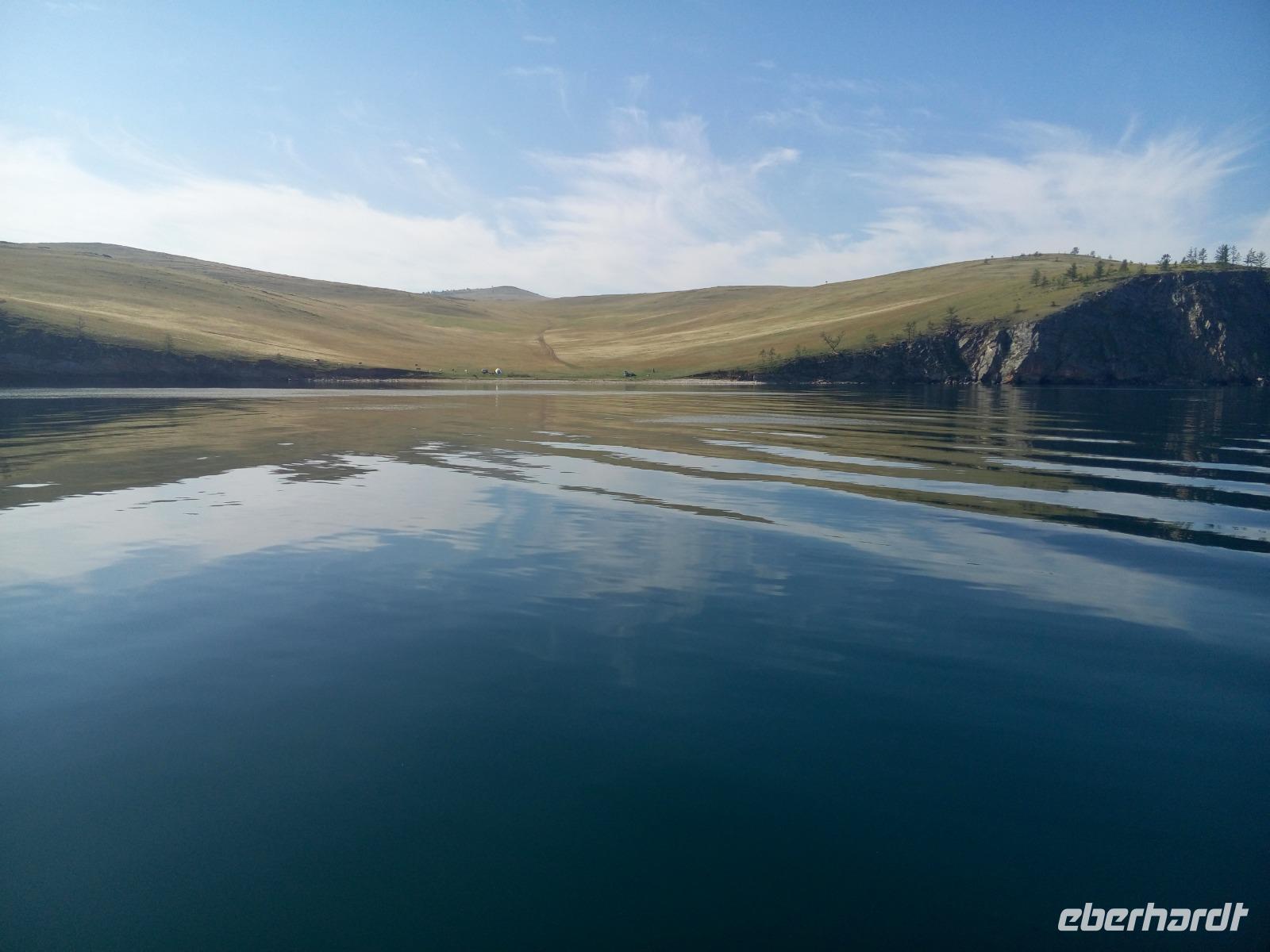 Am nächsten Tag haben uns schon die Fahrer um 9 Uhr früh mit UAZ abgeholt. Eine neue Reiseleiterin Olga ist mit uns gefahren. Unser Weg lag zu dem Cap Hoboj. Es liegt auf der nördlichen Seite der Insel. Unterwegs haben wir verschiedene Stopps gemacht, und unsere Reiseleitung Olga hat uns dies und jenes über das Land von Schamanen erzählt. Am Cap Hoboj haben wir die längste Pause gemacht. In der Zeit dass wir spazieren gegangen sind, haben unsere Fahrer das Mittagessen vorbereitet. Es gab eine Fischsuppe aus dem Fisch Omul. Sehr lecker! Auf dem Weg zum Hotel haben wir auch eine kleine Teepause gemacht. Da konnte man eine Marmelade aus Kiefer Zapfen kaufen. Das war ein sehr gelungener Tag.