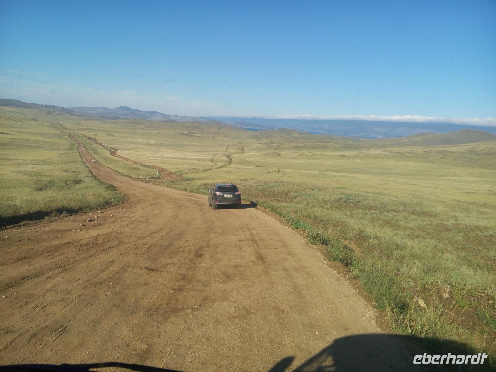 Leider hat dieser Tag nicht so wie gewuenscht angefangen. Unser Guide Vera wurde in der Nacht ins Krankenhaus gebracht. Man hat bei ihr Blinddarmentzuendung vermutet. Und wir sind weiter nach Insel Olkhon gefahren. Es gibt eine Ueberfahrt mit der Faehre, es dauert nur 10 Minuten bis man auf der Insel ist. Aber ansonsten sind die Distanzen riesig. Von Listvjanka haben wir 6 Stunden gebraucht, bis wir auf der Insel waren.
