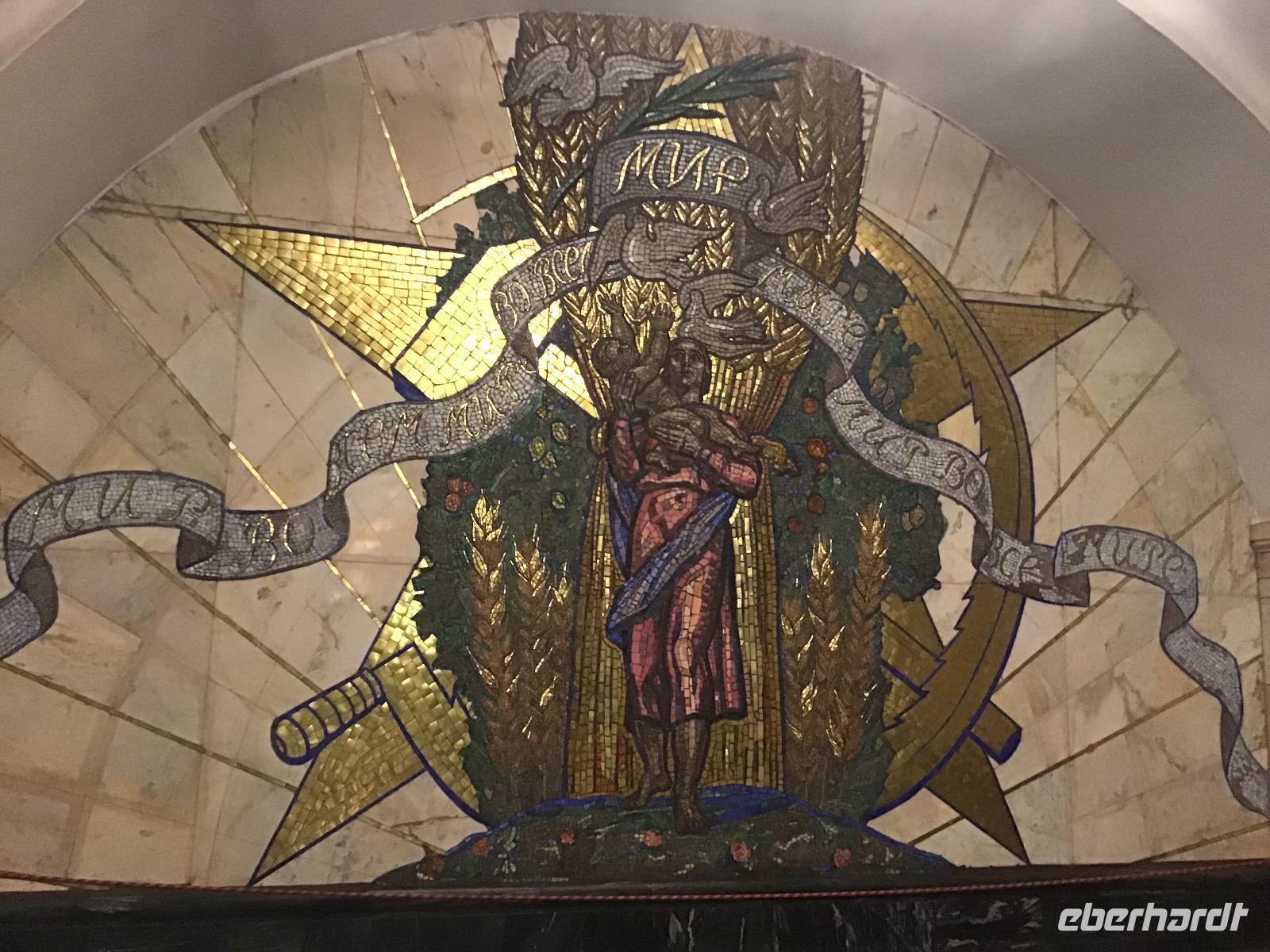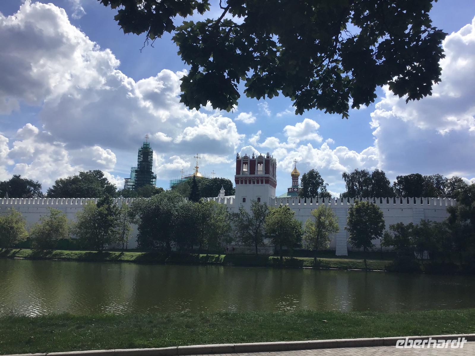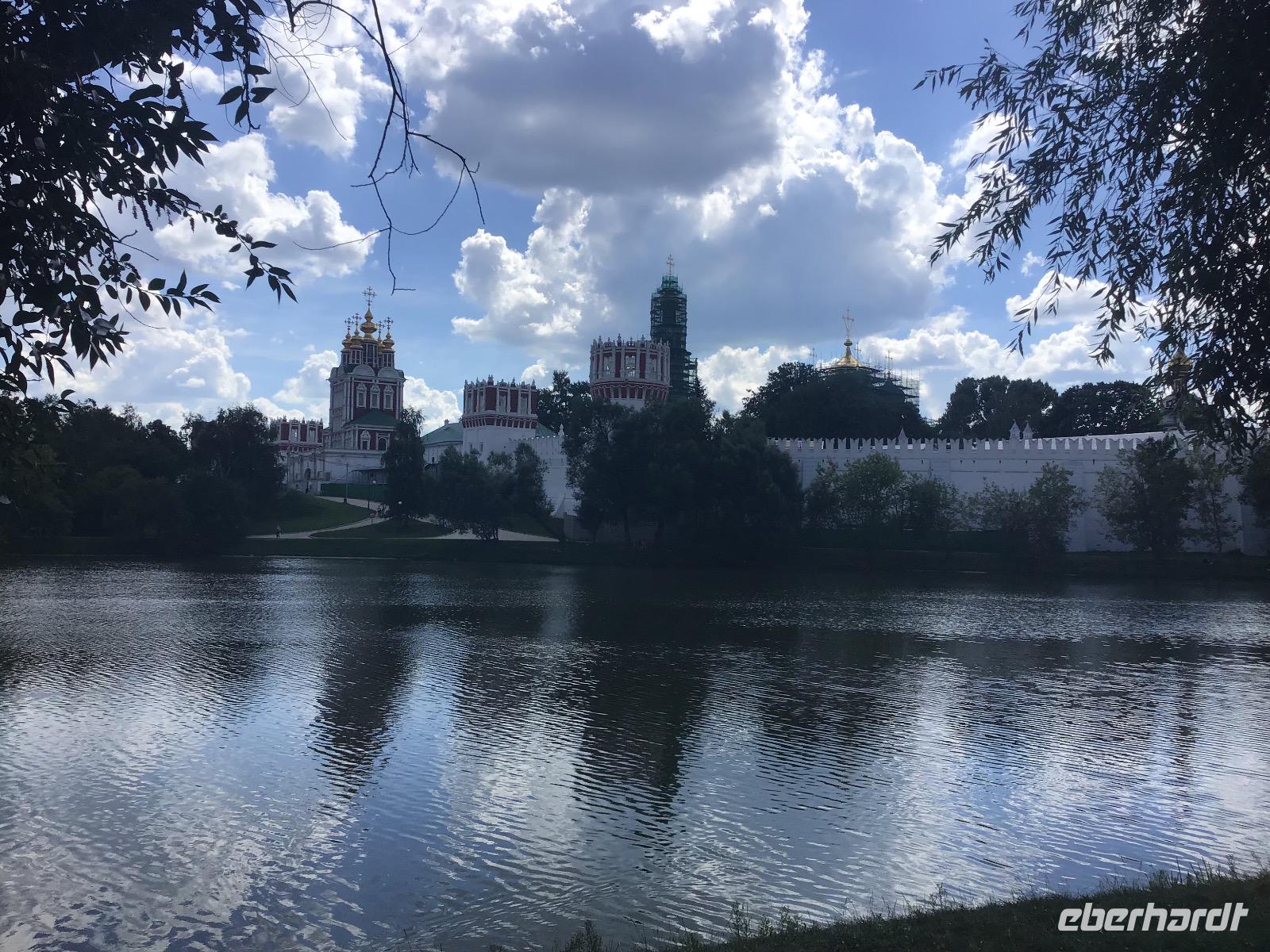 Gemütlich beginnt der Tag. Erst um Zehn holt uns Lada zur Stadtbesichtigung ab. Zunächst fahren wir zur Christi-Erlöser-Kathedrale, deren goldene Kuppeln im Sonnenlicht glänzen. Die erste Kathedrale gab es hier 1883, die an die Niederlage Napoleons erinnern sollte. Stalin ließ das Gebäude 1931 sprengen, um einen Palast der Sowjets zu bauen, zu dem es dann wegen technischer Schwierigkeiten und dem Ausbruch des Zweiten Weltkriegs nicht kam. So wurde die riesige Baugrube 1960 kurzerhand zu einem Schwimmbad ausgebaut. Erst seit 1991 existiert die Kathedrale wieder so, wie wir sie heute sehen - die größte Kirche Russlands. Während der Innenbesichtigung haben wir das Glück, an einem Gottesdienst teilhaben zu können. Unser Weg führt weiter zum Neuen Jungfrauenkloster. Hier berichtet uns Lada vom Schicksal der Zarinnen, die dorthin verbannt wurden - Frauen aus der Oberschicht der Bevölkerung, die ihren Verwandten ein Dorn im Auge waren. Nun fahren wir zu den Sperlingsbergen. Wir blicken von Weitem auf die Stadt und die Lomonossow Universität. Ein verkleideter Lenin und auch ein Stalin sowie diverse Kinderfiguren versuchen, die Leute zu kostenpflichtigen Fotos zu überreden. Wir gönnen uns ein Moskauer Eis und genießen die Sonne. Nach dem Mittagsimbiss besichtigen wir den Kreml. Wir erleben, mit vielen Touristen aus aller Welt, aber vor allem aus Asien, eine Wachablösung. Die rote Kreml-Mauer mit ihren Türmchen, diverse gesammelte Kanonen und viele verschiedene Gebäude und Kirchen laden zum Staunen und Fotografieren ein. Als es anfängt zu regnen, besuchen wir den Palast des Patriarchen, der etwas abseits vom Trubel liegt. Anschließend bewundern wir heute die bunten Zwiebeltürmchen der Basilius-Kathedrale im Sonnenlicht. Nun begeben wir uns unter die Erde. Wir erkunden die Moskauer Metro. Kreuz und quer fahren wir mit diversen Linien, hoch und runter bringen uns die langen Rolltreppen. Nach diesem Abenteuer ist es Zeit, dass wir uns zum Abendessen begeben. In unserem Restaurant ist heute auch eine russische Familie zu Gast, die ein Jubiläum feiert. Während wir essen, findet gerade laut stark ein Musikquiz statt, an dem sich alle Familienmitglieder enthusiastisch beteiligen. Anschließend schwingen sie das Tanzbein. Wir schmunzeln über die unerwartete Show, müssen aber nun zum Bahnhof aufbrechen. Im Wagon Nummer 6 beziehen wir unsere Abteile. Nachdem das Gepäck untergebracht ist und die Betten gemacht sind, legen sich einige zur Ruh, während die anderen bei einem zünftigen Wodka oder einem Bier den Tag ausklingen lassen.