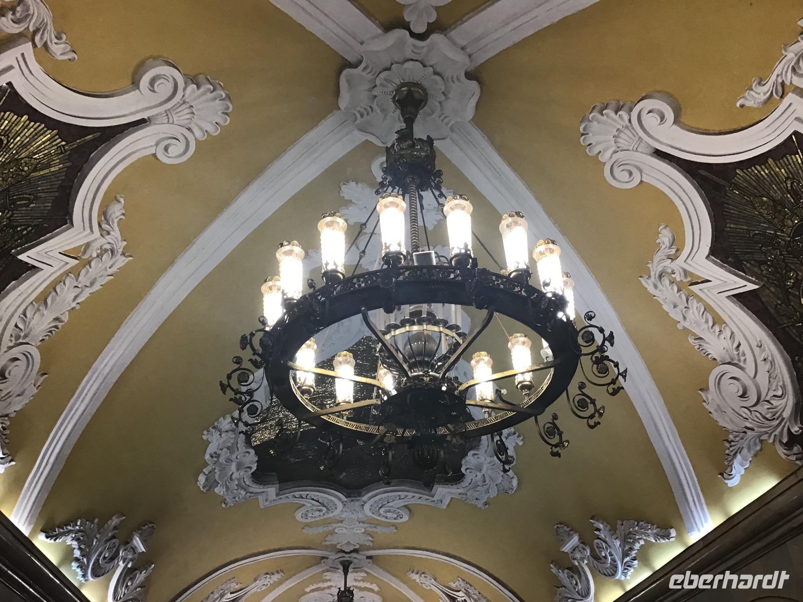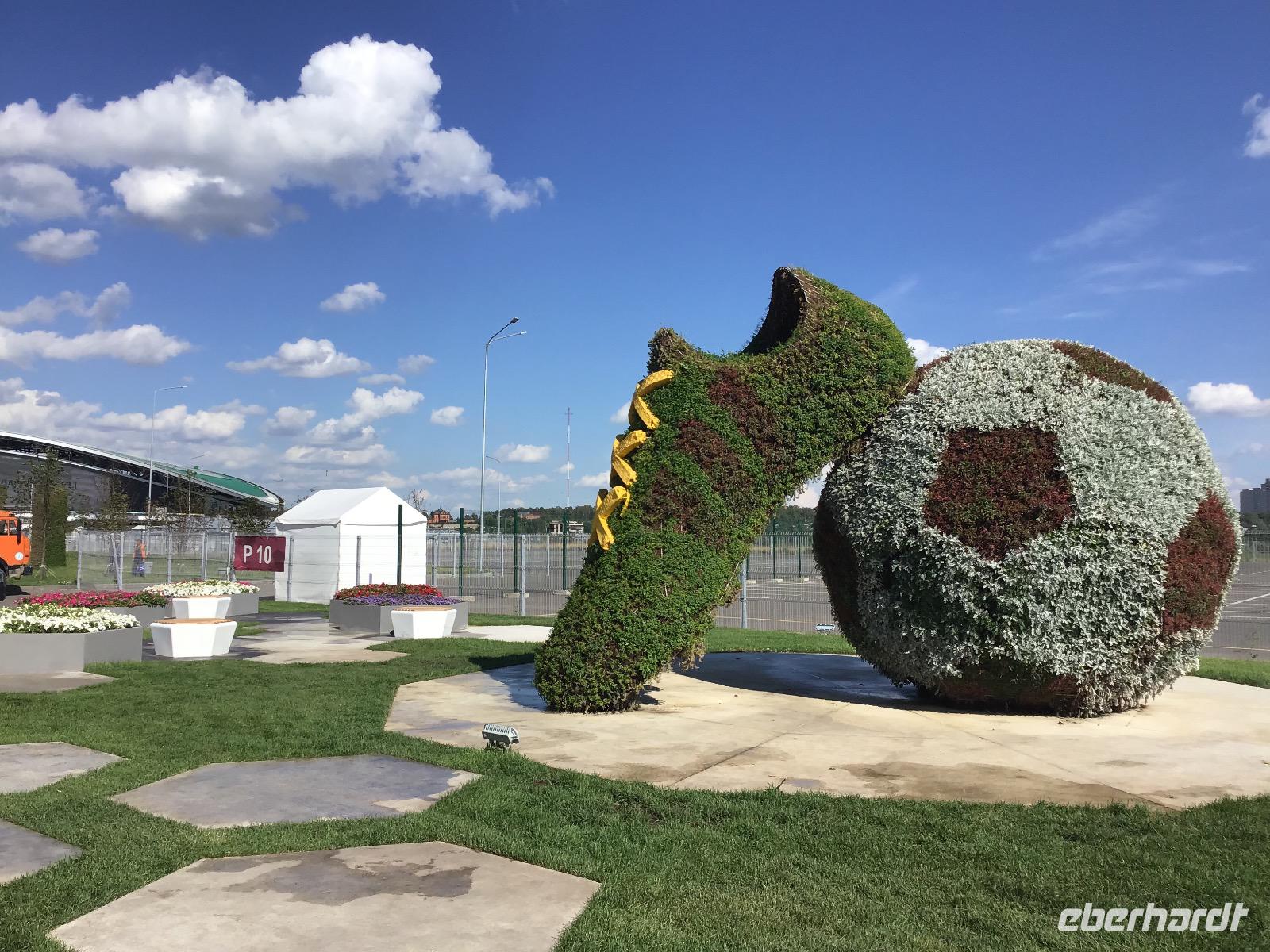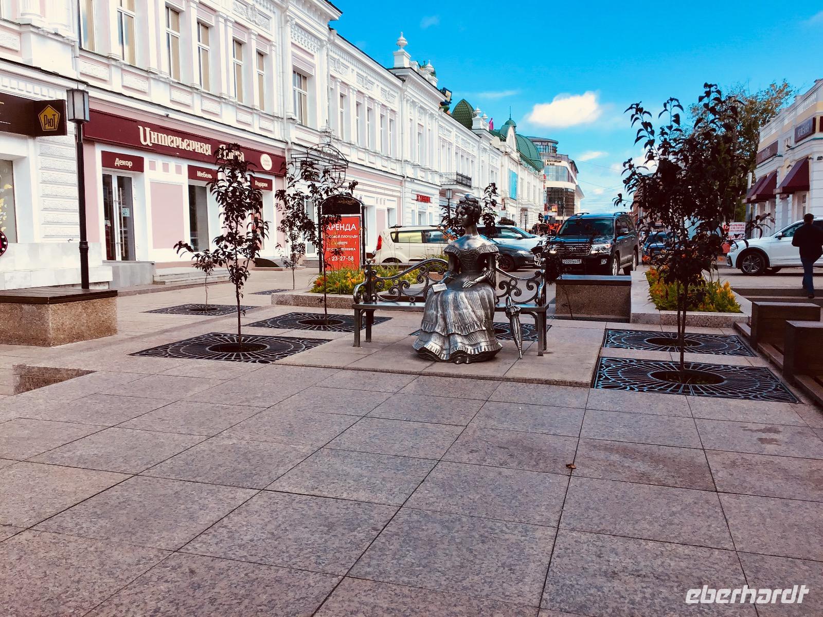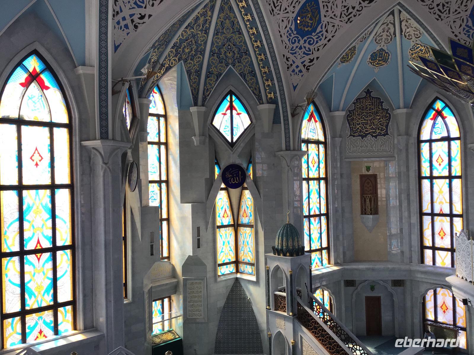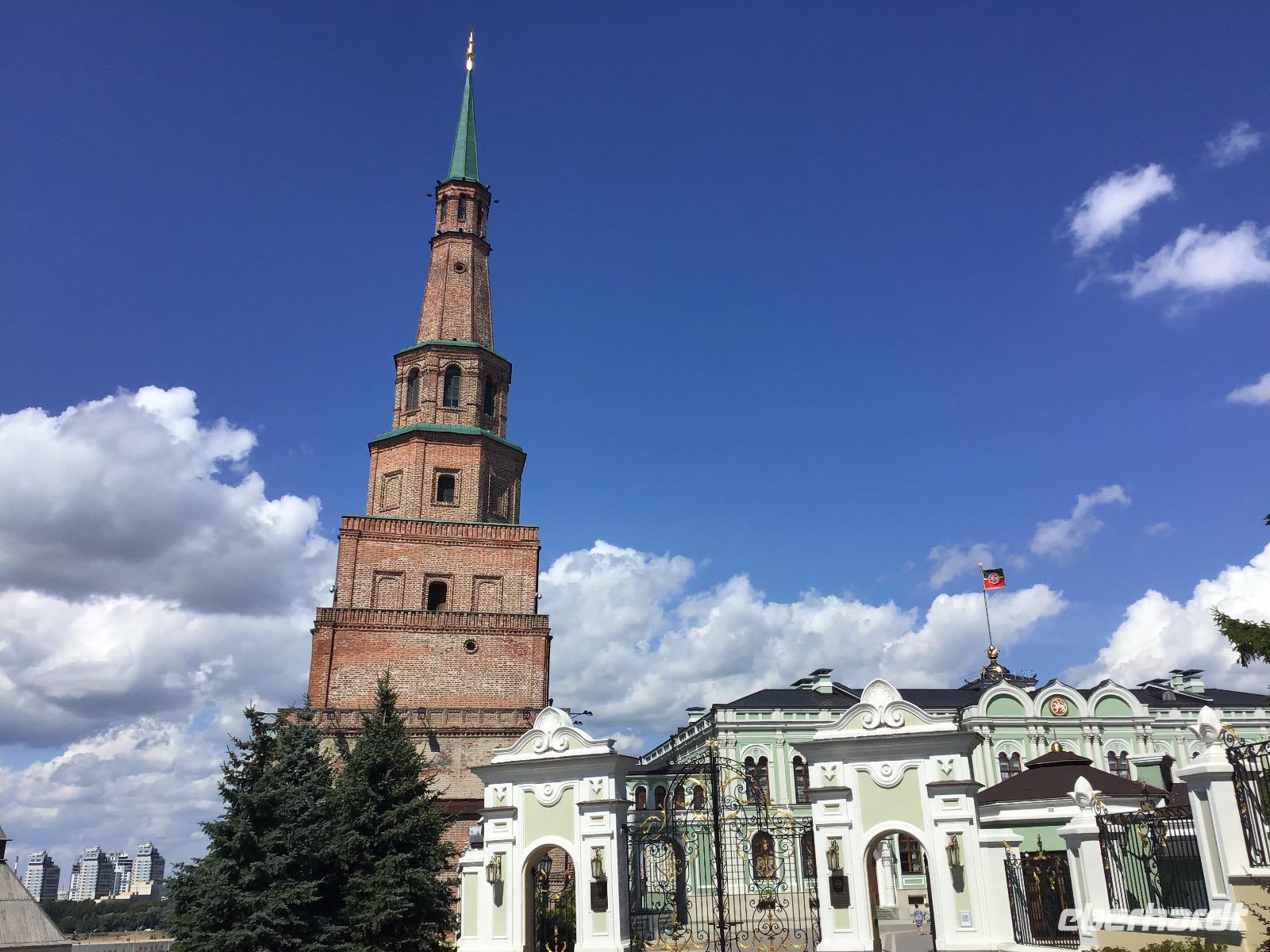 Am frühen Morgen erreich wir Kasan, die Hauptstadt der Republik Tartastan, eine Millionenmetropole, die als eine der schönsten Städte Russlands gilt, wovon wir uns in den nächsten Stunden überzeugen werden. Wir fahren zum Hotel, checken ein, machen uns frisch und frühstücken. Mit Alina, unserer örtlichen Reiseleiterin, erkunden wir heute Kasan. Alle sind überrascht. Was für eine wunderschöne helle saubere Stadt! Alina berichtet stolz, dass hier seit Jahrhunderten Menschen verschiedener Konfessionen friedlich mit einander leben. Mit vielen Sagen und Geschichten bringt uns Alina die Geschichte der Stadt näher. Sie erzählt von den reichen Fürsten, von Mädchen, die jung verheiratet wurden, von Wolga-Bulgaren, dreiköpfigen Drachen und vielem mehr. Wir fahren ins Viertel der Tataren, wo uns bunt angemalte Holzhäuser erwarten. Wir spazieren durch ein tatarisches Kulturzentrum und bedauern, nicht mehr Zeit hier verbringen zu können. Weiter geht es zum Kasaner Kreml. Von hier aus haben wir einen schönen Blick auf den Fluss Kasanka, der von einem Kinderlied besungen wird, das einige von uns sogar kennen. Die blauen Kuppeln und die sie umgebenen Minarette der Kul-Scharif-Moschee bilden ein Postkartenmotiv, das uns nur staunen lässt. Bis in die vierte Etage der Moschee steigen wir hinauf. Hier zeigt uns Alina, wo die Frauen beim Beten sitzen und wo die Männer. Die Moschee ist von Innen ebenso prachtvoll wie von außen. Wir laufen weiter zum Sjujumbeki-Turm, der dem Schiefen Turm von Pisa alle Ehre macht. Nur rangt sich um den Sjujumbeki-Turm wiederum eine Legende, die von einer Tatarentochter berichtet, die sich hier in den Tod gestürzt haben soll. Zeit fürs Mittagessen. In einem russischen Restaurant, das auch tatarische und internationale Speisen anbietet, lassen wir es uns schmecken. Es gibt Suppe mit dreieckigen Piroggen und gegrilltes Fleisch. Zum Nachtisch wird Kuchen gereicht. Wir fahren zum Standesamt, dass sich in einem Gebäude befindet, was wie ein überdimensionaler Kessel aussieht und an die Gründer Geschichte der Stadt erinnert und zum Fußballstadion, in dem die deutsche Mannschaft in diesem Jahr gegen Südkorea verloren hat und somit aus der WM ausgeschieden ist. Weiter gehts zum Puppentheater, in dessen unmittelbarer Nähe aus einem Fass Kwas verkauft wird, den wir, auf Einladung von Eberhardt TRAVEL, verkosten. Und schon ist es Zeit fürs Abendessen, das wir heute in einem Jazz-Restaurant (Perekrestok Djaza) einnehmen. Wir sind in einzigen Gäste und so spielt der Saxophon-Spieler nur für uns. Rechtschaffend müde erreichen wir später das Hotel und fallen in unsere komfortablen Betten.