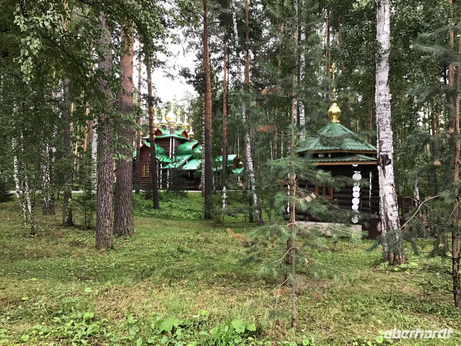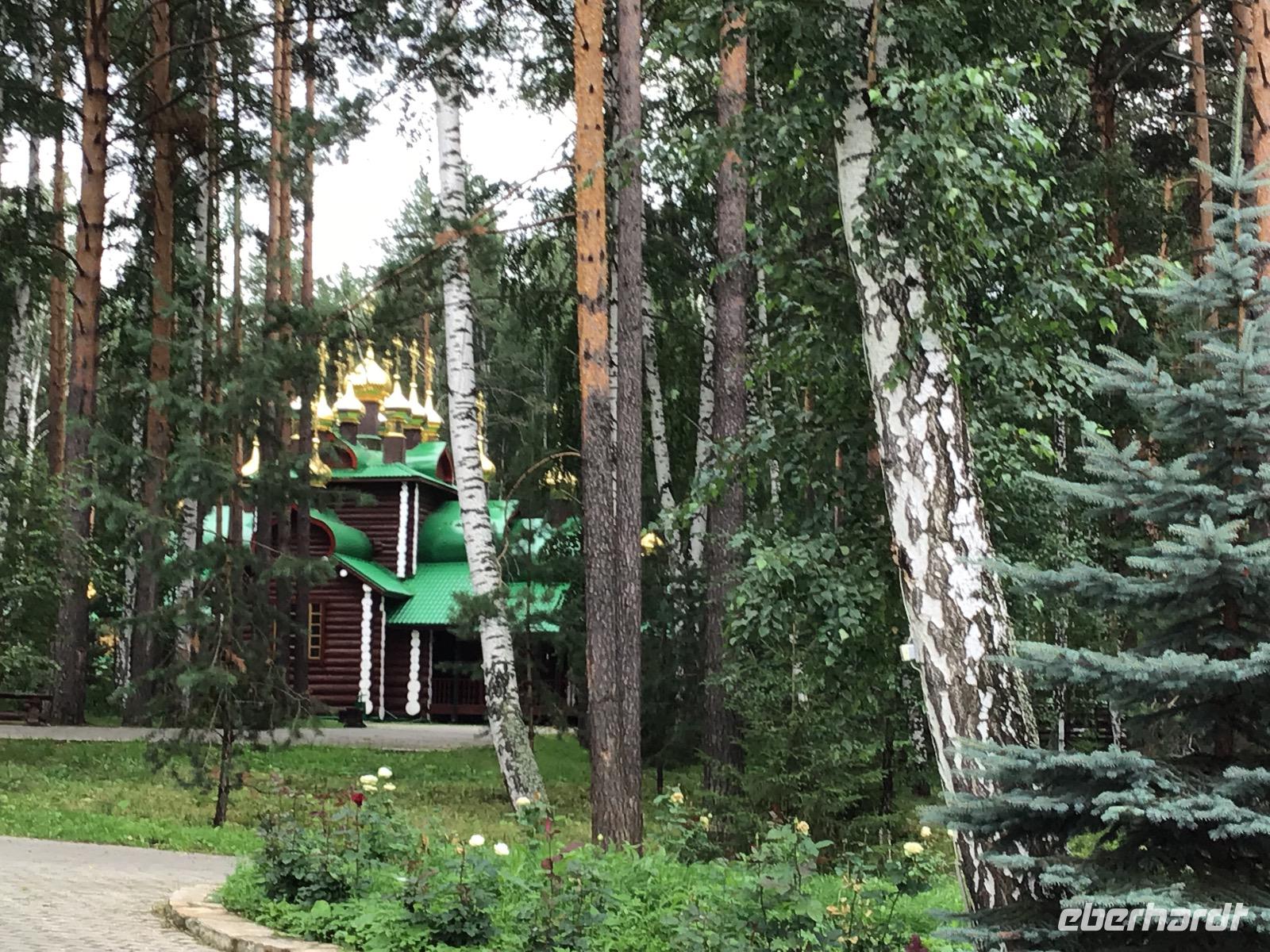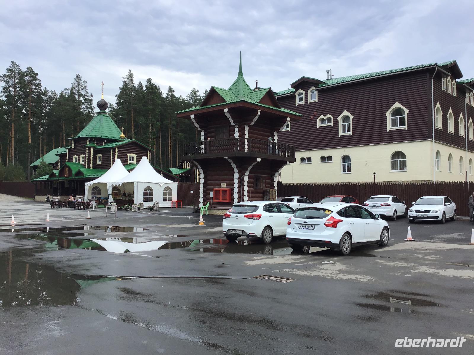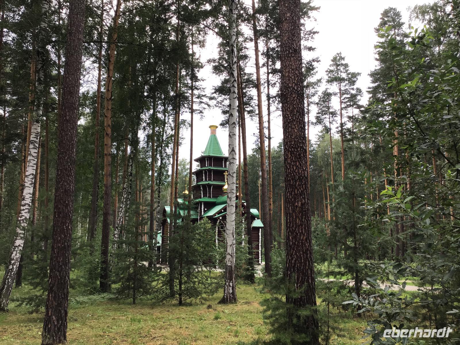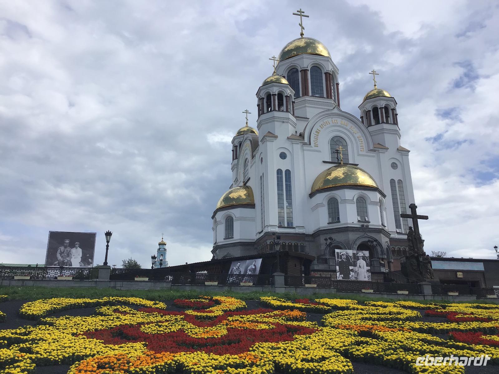 Wir können ausschlafen und ausführlich frühstücken. Unser erstes Ziel ist heute das Jelzin-Zentrum. Allein das Gebäude ist beeindruckend. Im Inneren erwartet uns eine Dokumentation der jüngsten Geschichte der Sowjetunion bzw. Russlands. Raum für Raum widmet sich dem Zerfall des großen Landes und den Auseinandersetzungen von Volk und Regierung. Jelzin wird sympathisch dargestellt, als ein Mann des Volkes mit besten Absichten. Immerhin war er der erste demokratisch gewählte Präsident Russlands. Wir sehen, wie er gewohnt hat und dass im Fernsehen Schwanensee lief, wenn es unangenehme Nachrichten gab. Auch sein Arbeitszimmer, von dem aus er sich verabschiedet hat, ist originalgetreu nachgebildet. Fast eineinhalb Stunden verbringen wir hier. Inzwischen hat es angefangen, kräftig zu regnen. Nachdem wir den historischen Park besucht haben, der über die Stadtgründung berichtet, führt uns unser Weg zur Blutkirche. Diese wurde an der Stelle errichtet, wo 1918 die Zarenfamilie heimtückisch ermordet wurde. Am Eingang empfängt uns ein ungewöhnlich freundlicher Geistlicher, der uns gut gelaunt zeigt, wie man sich bekreuzigt und sich vor der Zarenfamilie verbeugt. Auch, dass Männer die Mütze abnehmen sollen, kommuniziert er mit warmer Herzlichkeit. An den Wänden hängen Porträts der Zarenfamilie. Mit Zar Nikolaus II wurden seine Frau und seine fünf Kinder ermordet. Außerdem der Koch, der Kammerdiener und das Zimmermädchen. In der zweiten Etage ist das Leben der Zarenfamilie dargestellt. Nach dem Besuch der Blutkirche, deren Geschichte unter die Haut geht, fahren wir weiter in Richtung der Grenze zwischen Europa und Asien. Es gibt mehrere Stellen, die für Reisende errichtet wurden, die zum Fototermin einladen. Am zweiten Halt erwartet uns eine russische Gesangsgruppe, die extra für unsere Gäste von Eberhardt TRAVEL bestellt wurde. Überschäumend werden wir begrüßt, da spricht die echte russische Seele. Vladimir, der Chef unserer örtlichen Agentur, hat Sekt mitgebracht, mit dem wir auf dieses Ereignis anstoßen. Wir tanzen und singen, es herrscht eine ausgelassene Stimmung. Wir fahren weiter und gelangen in ein russisches Dorf. Irina klopft an der Haustür und wir werden eingelassen. Wir dürfen den Garten besichtigen und werden dann ins Haus gebeten. Rein zufällig hat die Hausfrau Tee gekocht und Blinis gebacken. Wir bedanken uns für die Gastfreundschaft. Unser Weg führt uns weiter zu einem Männerkloster. Hier wurden mehrere Holzkirchen errichtet, alle mit goldenen Zwiebeltürmchen. Das Kloster befindet sich in Ganina Jama, an der Stelle, wo die Zarenfamilie nach ihrer Ermordung in Gruben verscharrt wurde. Nachdem wir ins Hotel zurück gefahren sind, müssen wir all die Emotionen des Tages erst einmal verkraften. Ein ereignisreicher Tag liegt hinter uns.