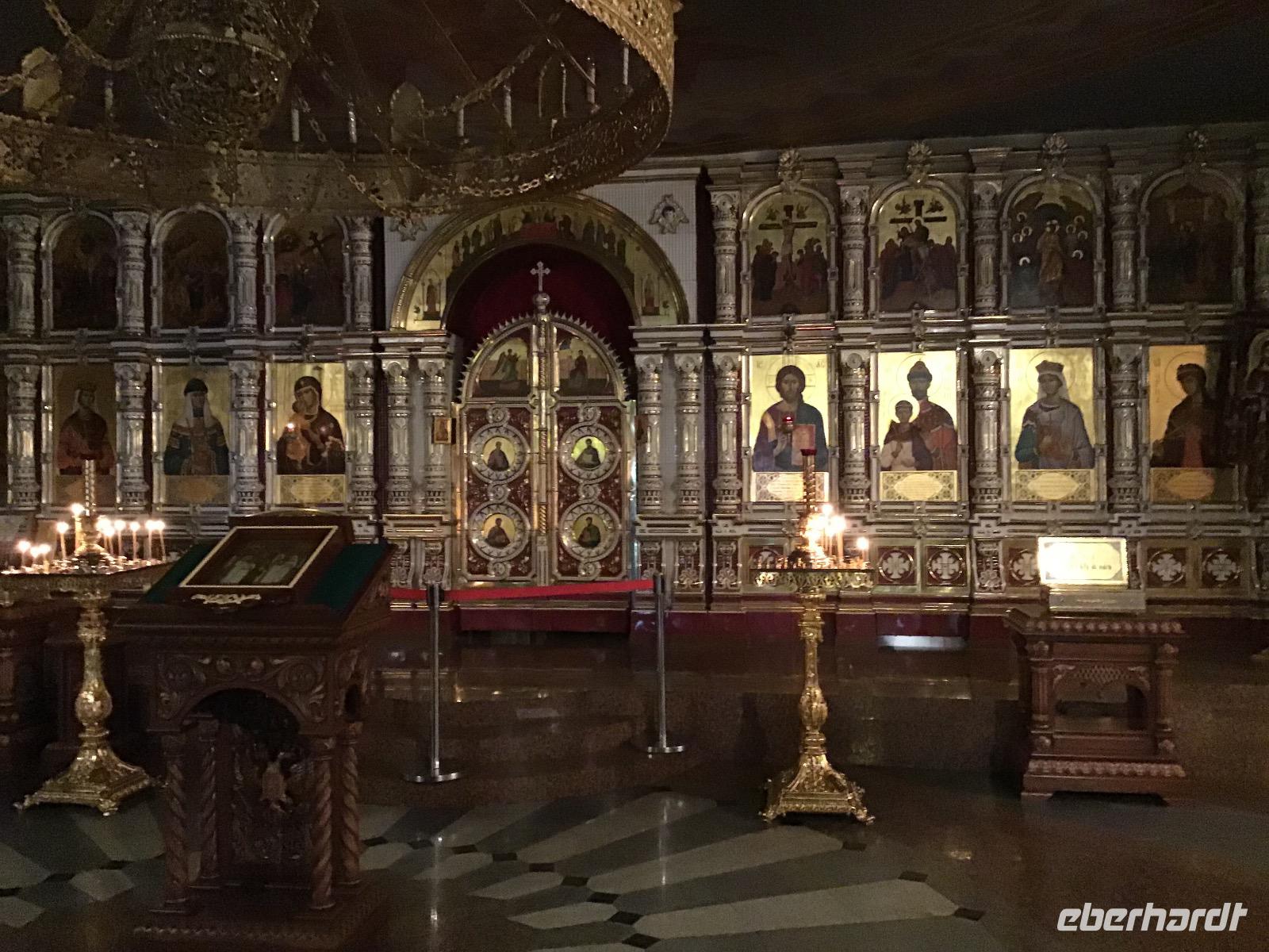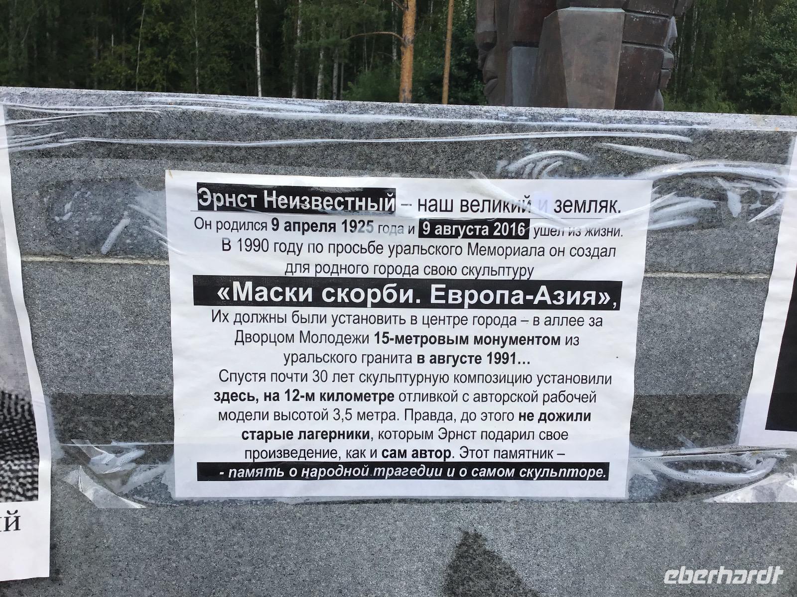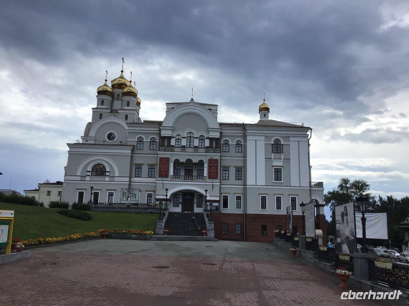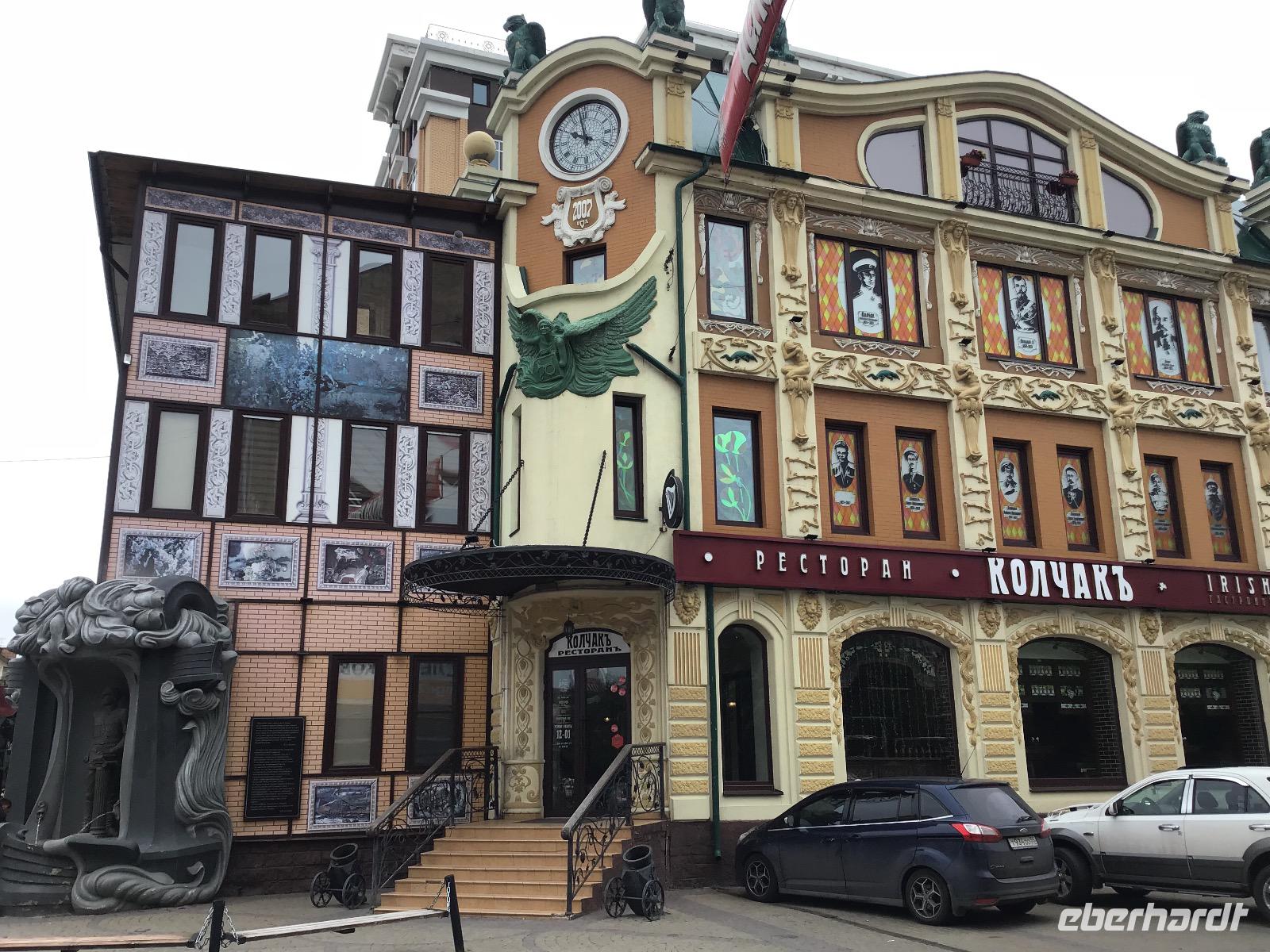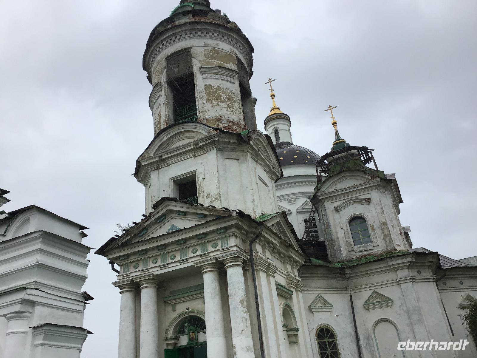 Wir können ausschlafen und ausführlich frühstücken. Unser erstes Ziel ist heute das Jelzin-Zentrum. Allein das Gebäude ist beeindruckend. Im Inneren erwartet uns eine Dokumentation der jüngsten Geschichte der Sowjetunion bzw. Russlands. Raum für Raum widmet sich dem Zerfall des großen Landes und den Auseinandersetzungen von Volk und Regierung. Jelzin wird sympathisch dargestellt, als ein Mann des Volkes mit besten Absichten. Immerhin war er der erste demokratisch gewählte Präsident Russlands. Wir sehen, wie er gewohnt hat und dass im Fernsehen Schwanensee lief, wenn es unangenehme Nachrichten gab. Auch sein Arbeitszimmer, von dem aus er sich verabschiedet hat, ist originalgetreu nachgebildet. Fast eineinhalb Stunden verbringen wir hier. Inzwischen hat es angefangen, kräftig zu regnen. Nachdem wir den historischen Park besucht haben, der über die Stadtgründung berichtet, führt uns unser Weg zur Blutkirche. Diese wurde an der Stelle errichtet, wo 1918 die Zarenfamilie heimtückisch ermordet wurde. Am Eingang empfängt uns ein ungewöhnlich freundlicher Geistlicher, der uns gut gelaunt zeigt, wie man sich bekreuzigt und sich vor der Zarenfamilie verbeugt. Auch, dass Männer die Mütze abnehmen sollen, kommuniziert er mit warmer Herzlichkeit. An den Wänden hängen Porträts der Zarenfamilie. Mit Zar Nikolaus II wurden seine Frau und seine fünf Kinder ermordet. Außerdem der Koch, der Kammerdiener und das Zimmermädchen. In der zweiten Etage ist das Leben der Zarenfamilie dargestellt. Nach dem Besuch der Blutkirche, deren Geschichte unter die Haut geht, fahren wir weiter in Richtung der Grenze zwischen Europa und Asien. Es gibt mehrere Stellen, die für Reisende errichtet wurden, die zum Fototermin einladen. Am zweiten Halt erwartet uns eine russische Gesangsgruppe, die extra für unsere Gäste von Eberhardt TRAVEL bestellt wurde. Überschäumend werden wir begrüßt, da spricht die echte russische Seele. Vladimir, der Chef unserer örtlichen Agentur, hat Sekt mitgebracht, mit dem wir auf dieses Ereignis anstoßen. Wir tanzen und singen, es herrscht eine ausgelassene Stimmung. Wir fahren weiter und gelangen in ein russisches Dorf. Irina klopft an der Haustür und wir werden eingelassen. Wir dürfen den Garten besichtigen und werden dann ins Haus gebeten. Rein zufällig hat die Hausfrau Tee gekocht und Blinis gebacken. Wir bedanken uns für die Gastfreundschaft. Unser Weg führt uns weiter zu einem Männerkloster. Hier wurden mehrere Holzkirchen errichtet, alle mit goldenen Zwiebeltürmchen. Das Kloster befindet sich in Ganina Jama, an der Stelle, wo die Zarenfamilie nach ihrer Ermordung in Gruben verscharrt wurde. Nachdem wir ins Hotel zurück gefahren sind, müssen wir all die Emotionen des Tages erst einmal verkraften. Ein ereignisreicher Tag liegt hinter uns.