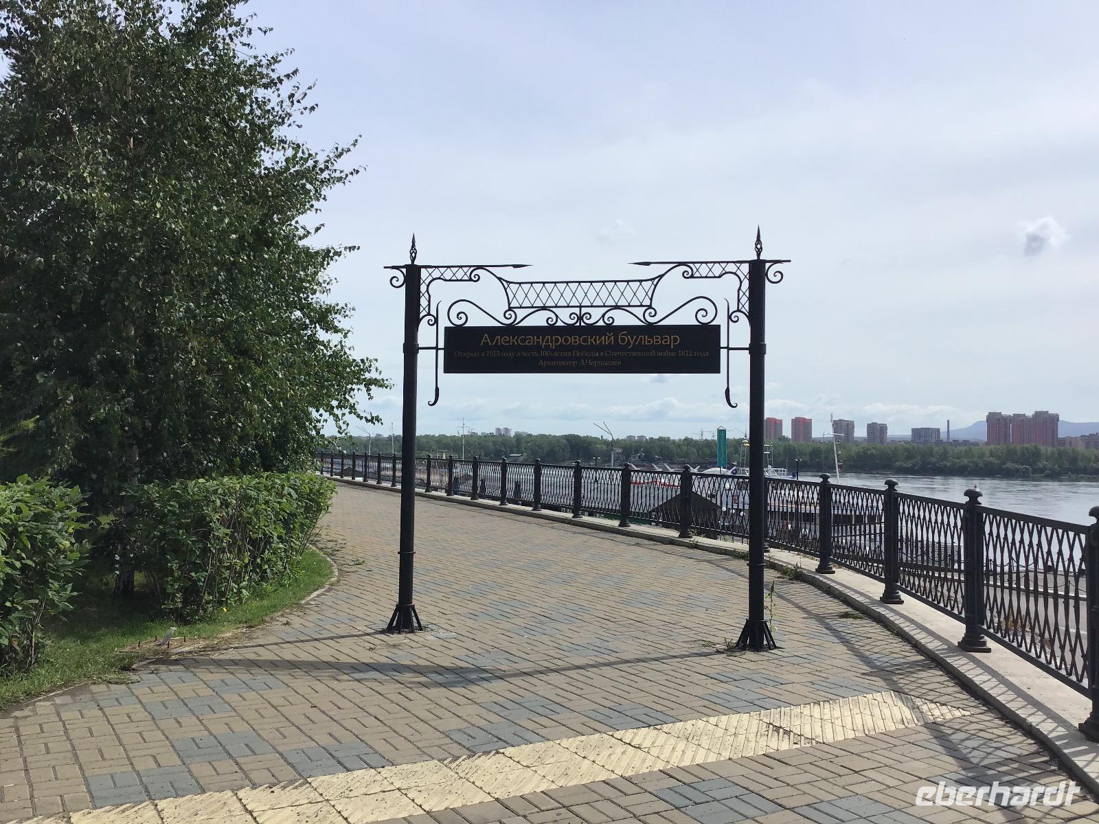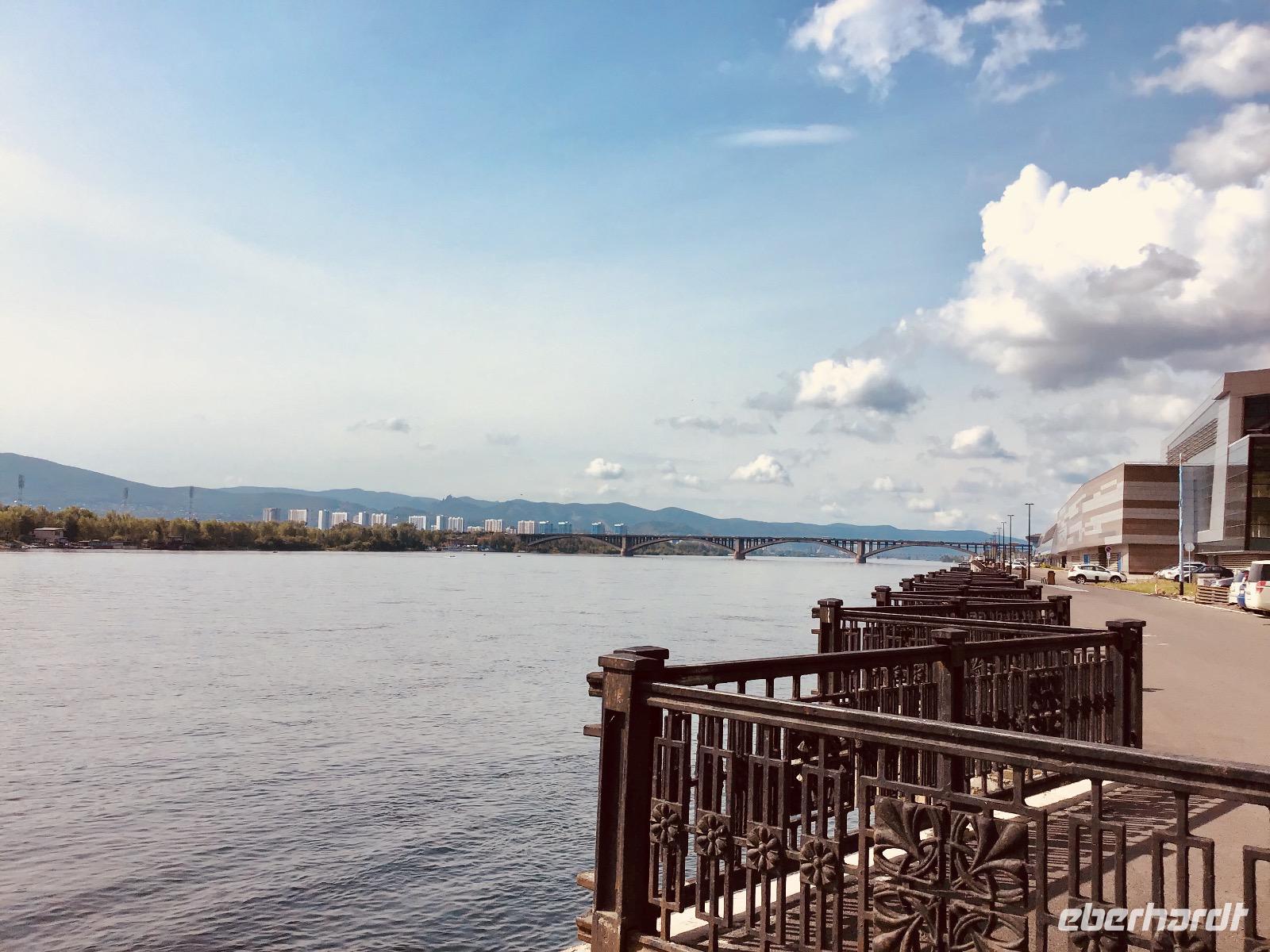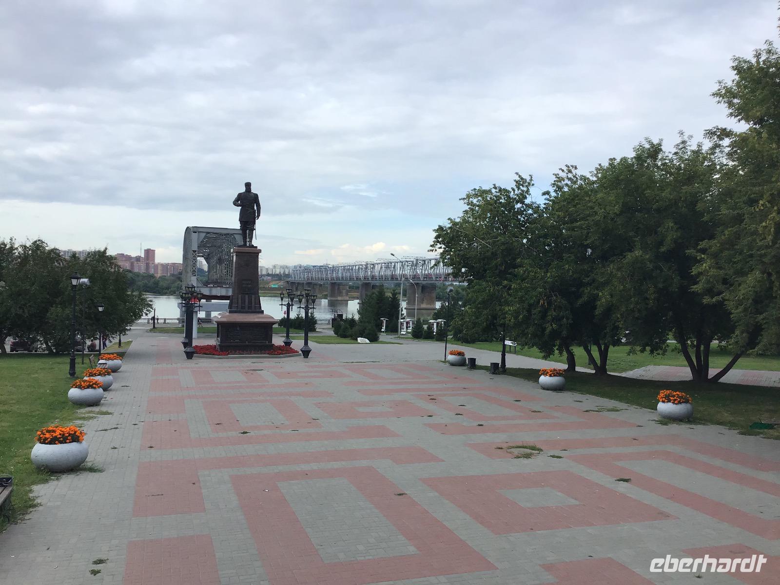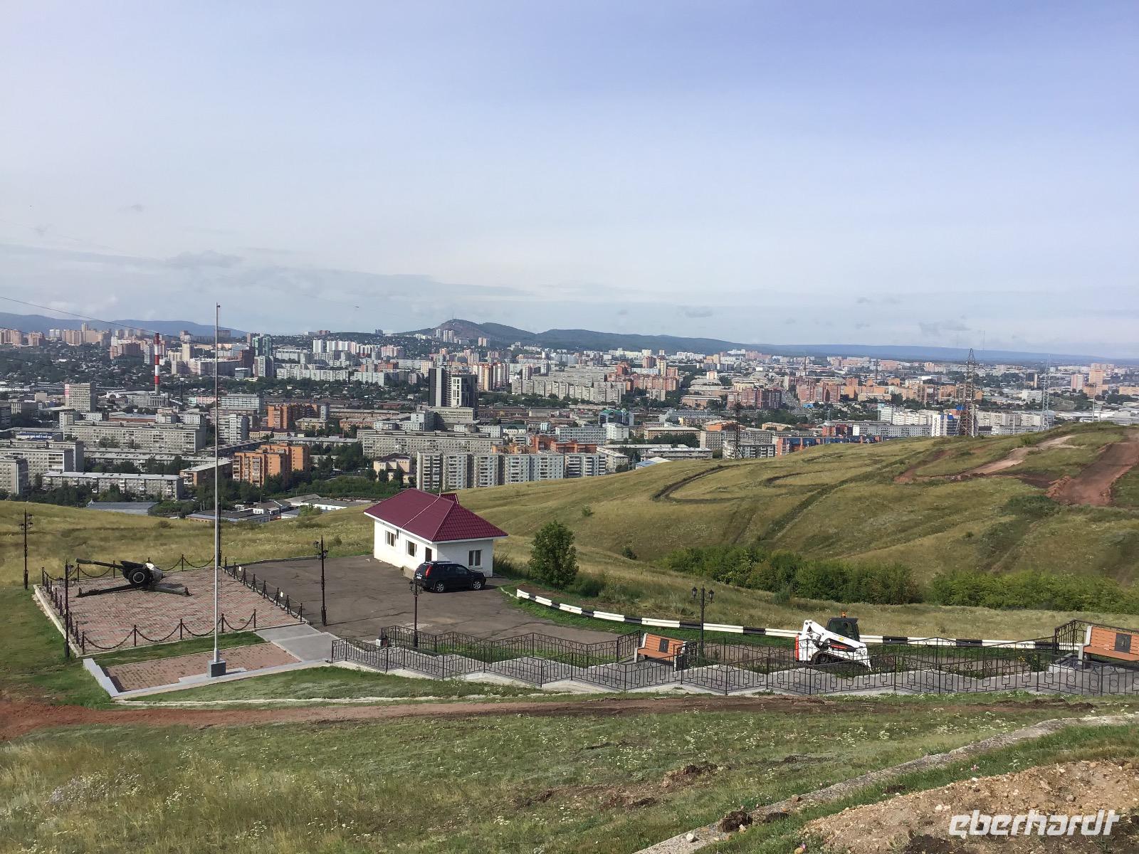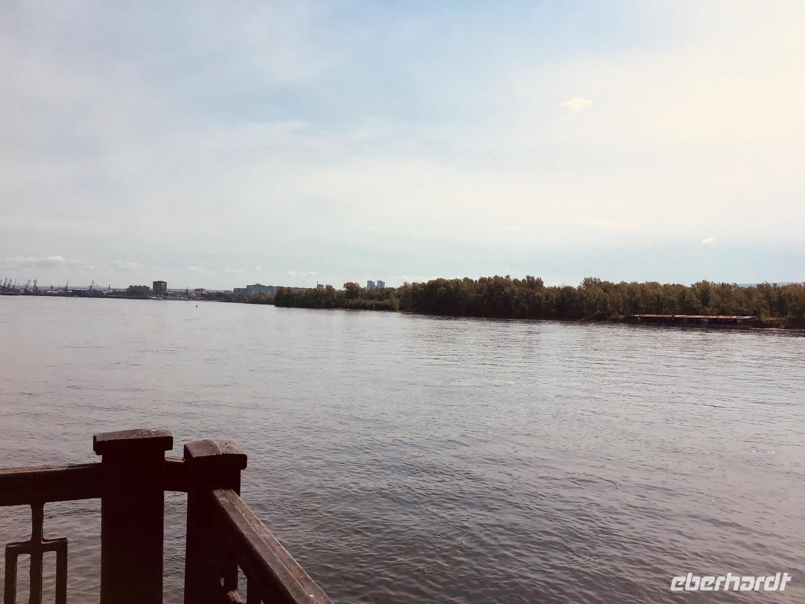 Am Vormittag fahren wir mit Tatjana auf einen Hügel, von dem wir einen schönen Blick auf die Stadt haben. Unterwegs sind viele Baustellen zu sehen, die Stadt bereitet sich auf ein Jubiläum vor. Am Dampfschiff St. Nikolai, mit dem Lenin in die Verbannung gefahren wurde, spazieren wir vorbei und genießen den Aufenthalt am Jenissej.