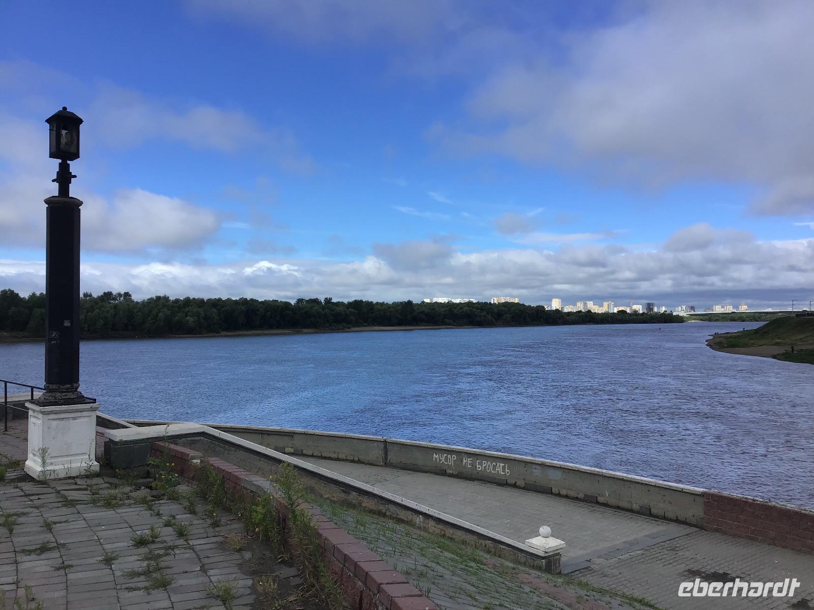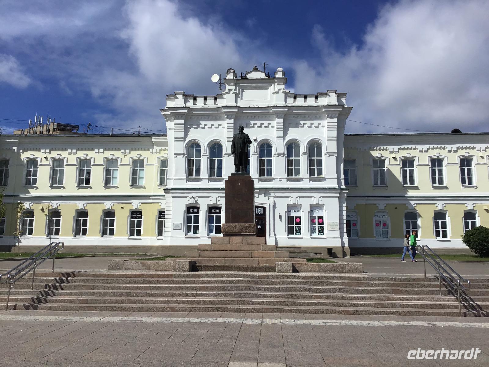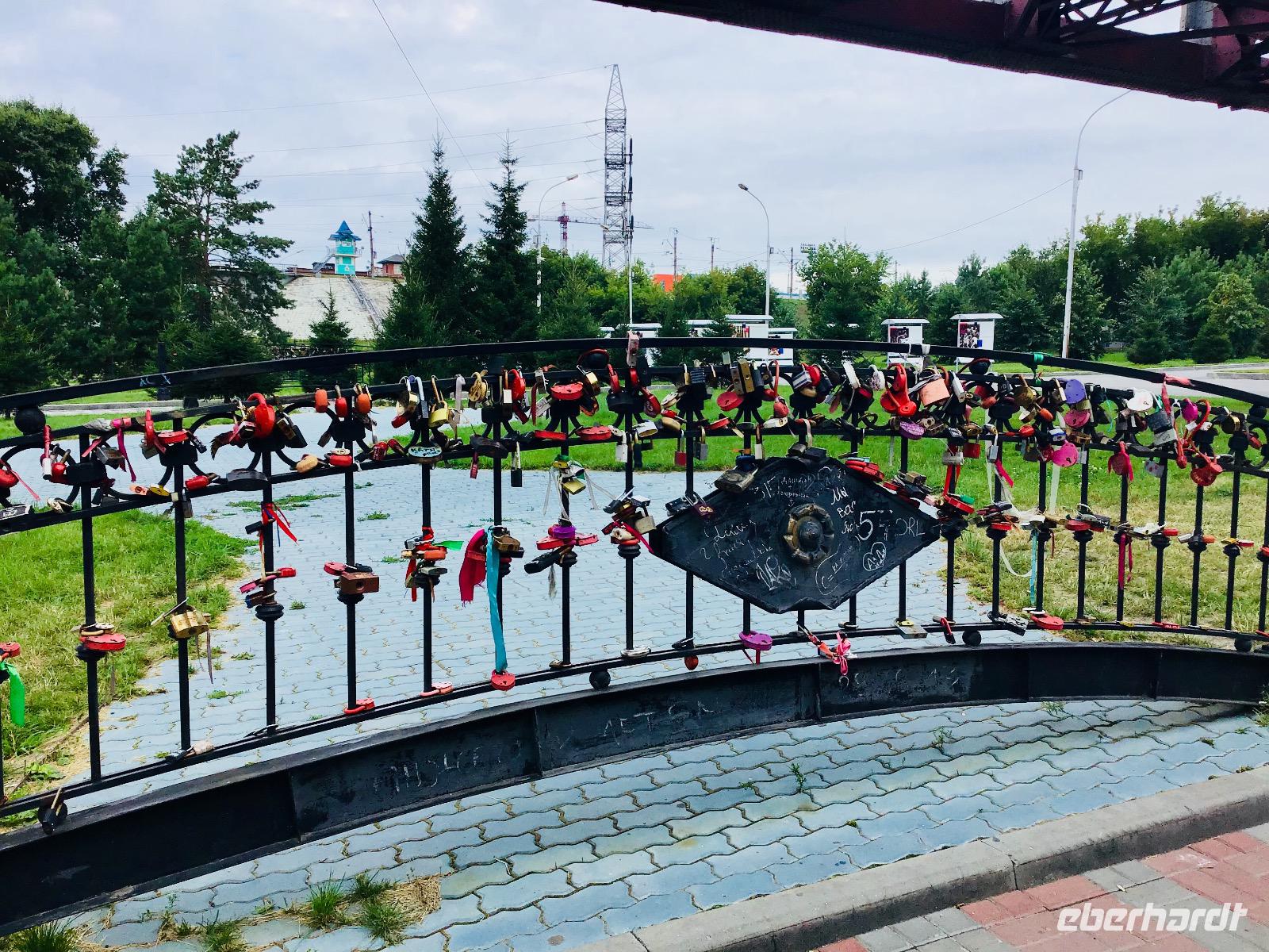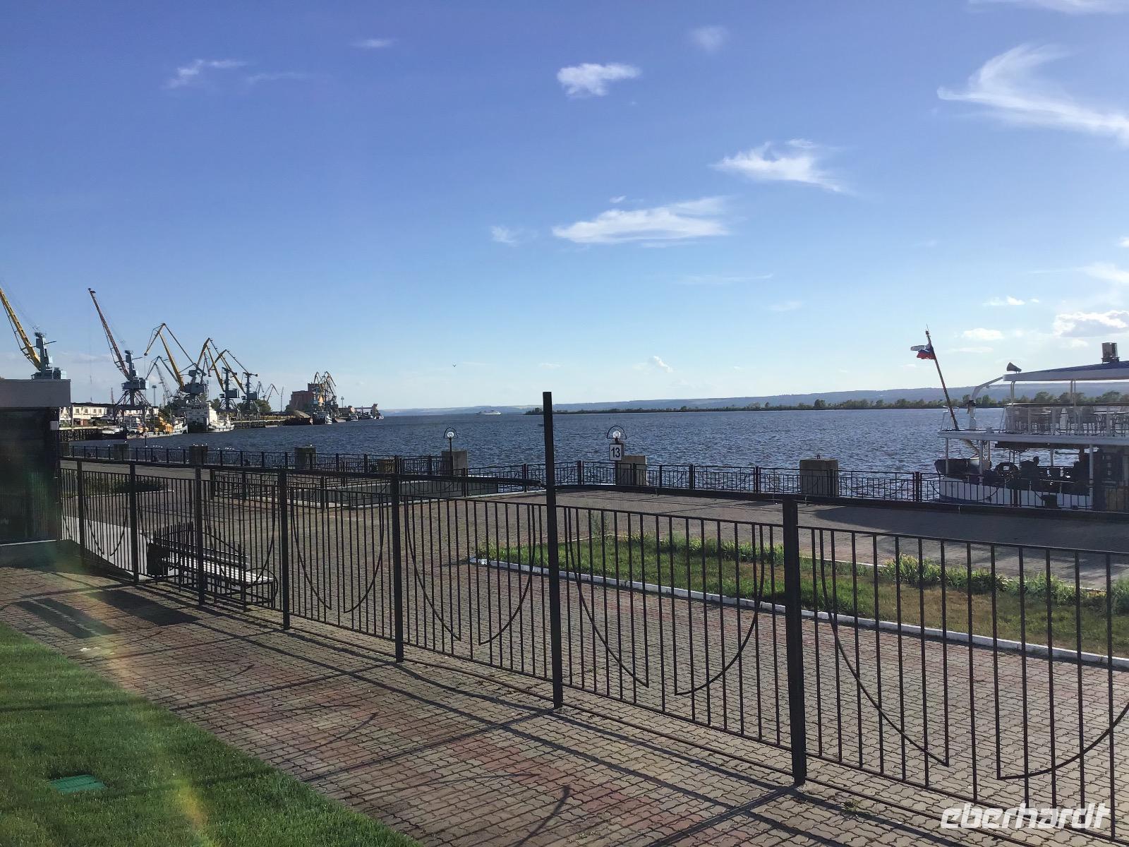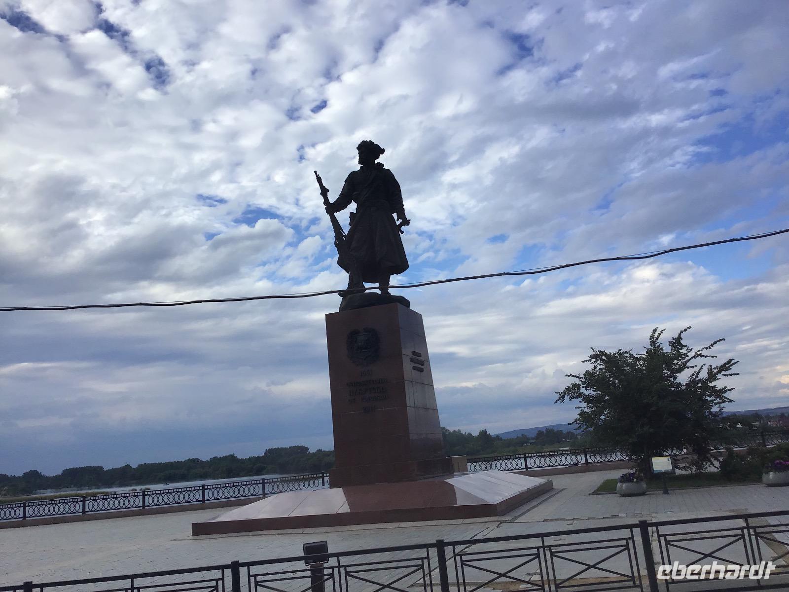Am Vormittag fahren wir mit Tatjana auf einen Hügel, von dem wir einen schönen Blick auf die Stadt haben. Unterwegs sind viele Baustellen zu sehen, die Stadt bereitet sich auf ein Jubiläum vor. Am Dampfschiff St. Nikolai, mit dem Lenin in die Verbannung gefahren wurde, spazieren wir vorbei und genießen den Aufenthalt am Jenissej.