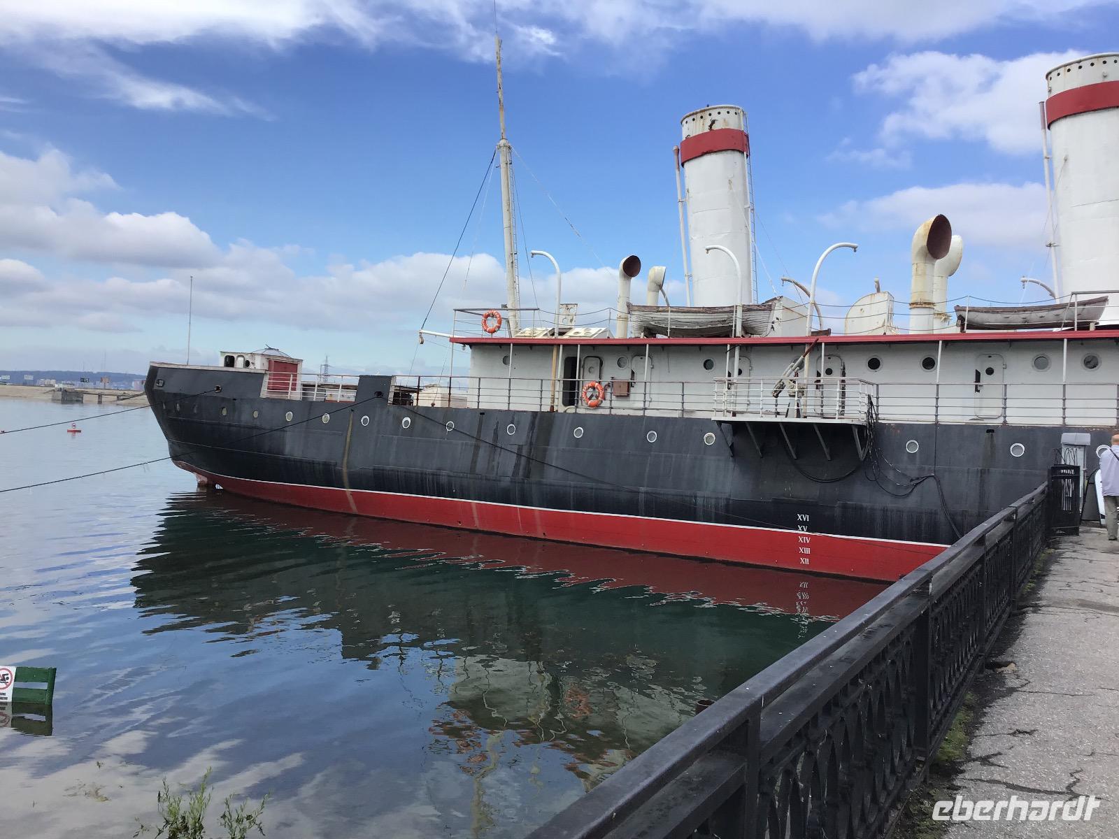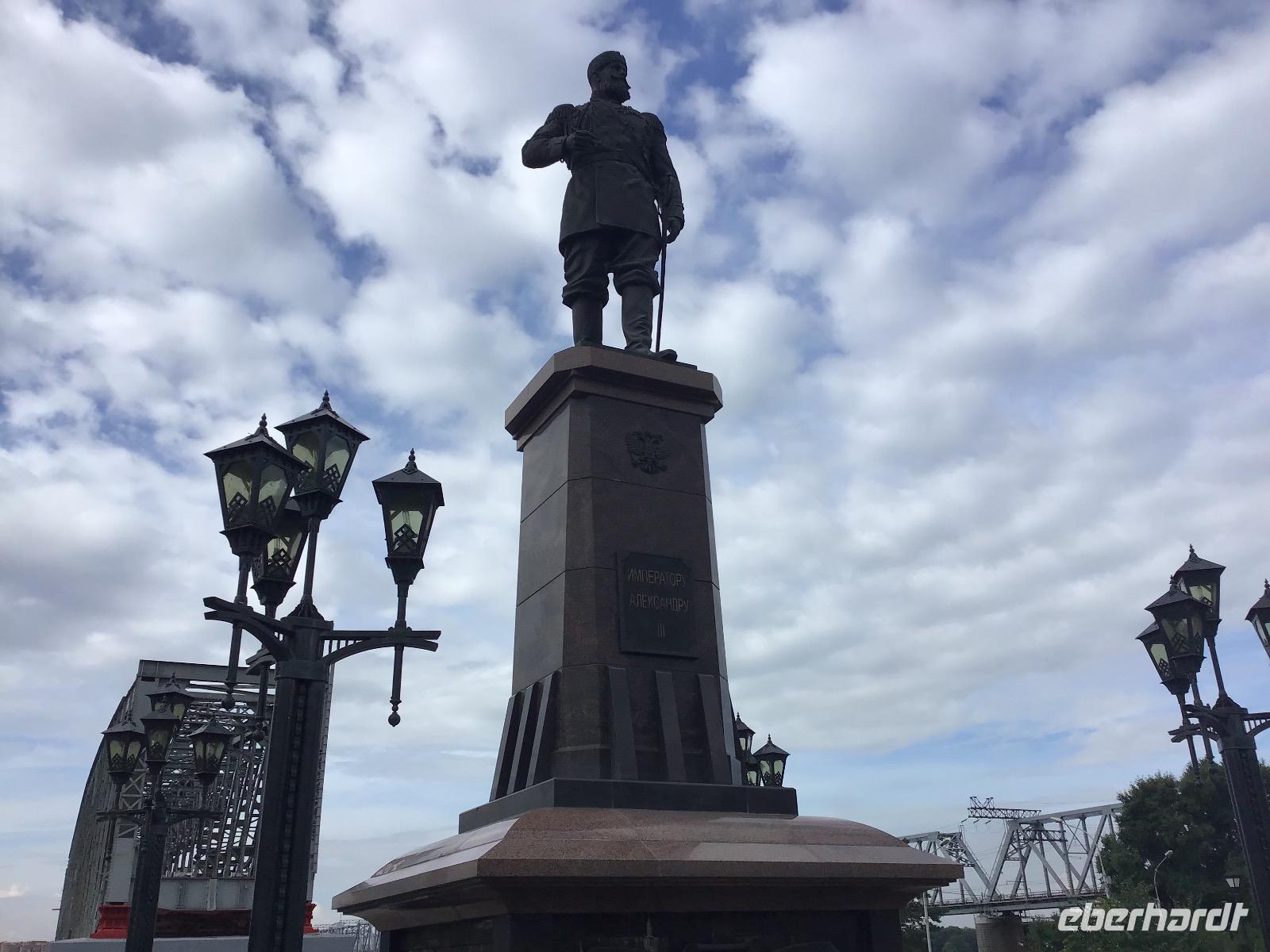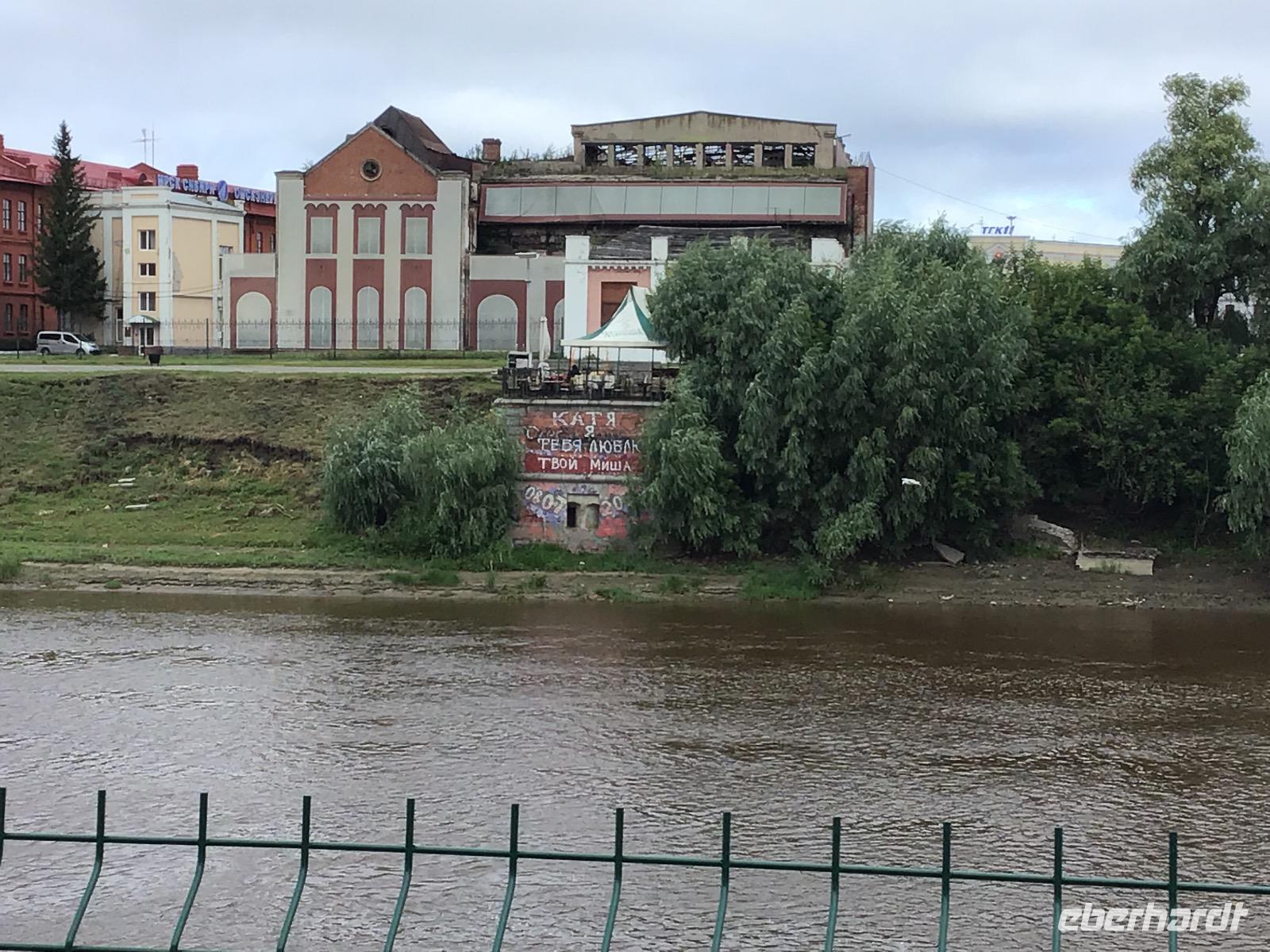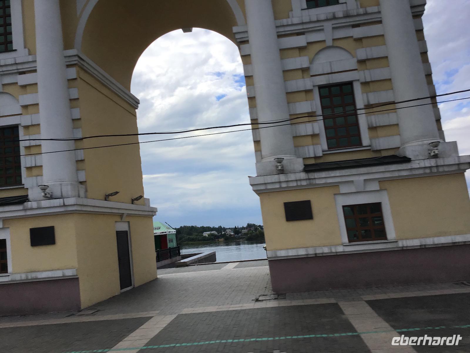 Am Vormittag fahren wir mit Tatjana auf einen Hügel, von dem wir einen schönen Blick auf die Stadt haben. Unterwegs sind viele Baustellen zu sehen, die Stadt bereitet sich auf ein Jubiläum vor. Am Dampfschiff St. Nikolai, mit dem Lenin in die Verbannung gefahren wurde, spazieren wir vorbei und genießen den Aufenthalt am Jenissej.