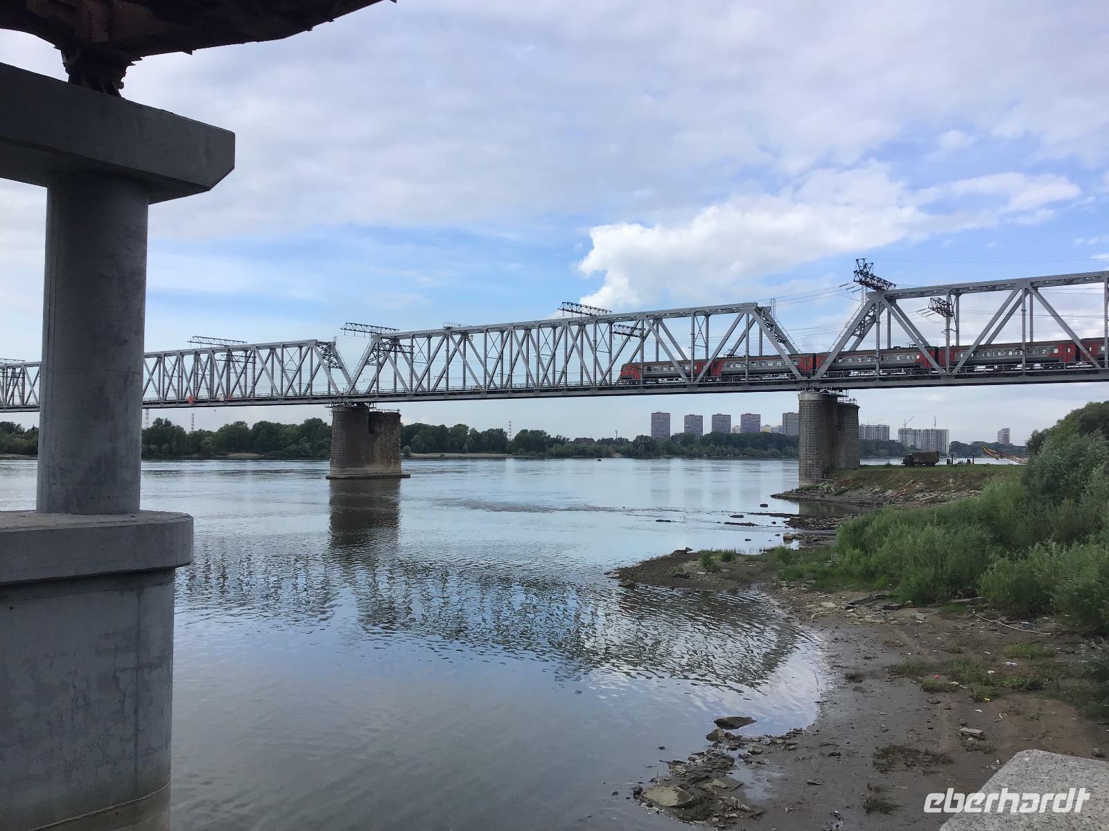Wir fahren zum Ufer des Ob, wo die Geschichte der Stadt begann. Als die Transsibirische Eisenbahn gebaut wurde, sucht man (Ende des 19. Jahrhunderts) nach einer Stelle, wo die Bahn den Fluss Ob überqueren konnte. Mit dem Bau einer Eisenbahnbrücke entstand die heutige Millionenmetropole Nowosibirsk. Heute ist von der alten Brücke nur noch ein Teilstück übrig, dass museal am Ufer steht. Die Eisenbahn überquert den Ob über eine moderne Brücke. Am Ufer, wo wir auf die Brücken schauen, steht außerdem ein Denkmal von Zar Nikolai III, der viel für die Stadt getan hat, aber relativ jung verstarb. Wir fahren jetzt nach Akademgorodok, dem Wissenschaftszentrum Sibiriens. Hier wurde ab 1957 ein Zentrum für junge Wissenschaftler errichtet, das diesen optimale Arbeits- und Lebensbedingungen bieten sollte. Heute verstecken sich die Häuser hinter hochgewachsenen Bäumen und dichten Parkanlagen. Wir besuchen das hier befindliche Eisenbahnmuseum, das mit seinen vielen Dampf- und Elektrolokomotiven wirklich beeindruckend ist. Extra für uns werden spezielle Wagons geöffnet und wir dürfen diese von Innen ansehen. Dazu gehören Wagen der ersten bis vierten Klasse von alten Passagierzügen, aber auch Sanitätswagen, Küchenwagen und ein Gefängniswagon. Zum Schluss laden alte Wolgas, Moskwitsch und andere Oldtimer zum Schwelgen in Erinnerung ein. Nun fahren wir zum Museum der Birkenrinde, das wir allerdings nicht erreichen, da unser Bus mit einem Auto zusammenstößt. Zum Glück sind keine Personen zu Schaden gekommen, aber Bus und Auto sind hin. Oleg steigt mit uns in die Metro und wir fahren zum zentralen Markt von Nowosibirsk. In großen Abteilungen, deren Verkäufer(innen) sich durch ihre Berufskleidung unterscheiden, werden rohes Fleisch, frischer Fisch, Obst und Gemüse und viele leckere Sachen angeboten. Auch ein kleiner Souvenirladen darf nicht fehlen. Im Obergeschoss gibt es teure Pelze, im Untergeschoss billige Kleidung, Spielzeug und einen Supermarkt. Am späten Nachmittag kehren wir ins Hotel zurück Es ist genügend Zeit, den Koffer nochmal umzupacken, ein Schläfchen zu machen oder Tagebuch zu schreiben. Der Abend klingt bei einem russischen Menü mit Pelmeni und Wodka aus. Die nächste Nacht verbringen wir wieder in der Transsibirischen Eisenbahn. Jetzt kennen wir uns bereits gut aus.