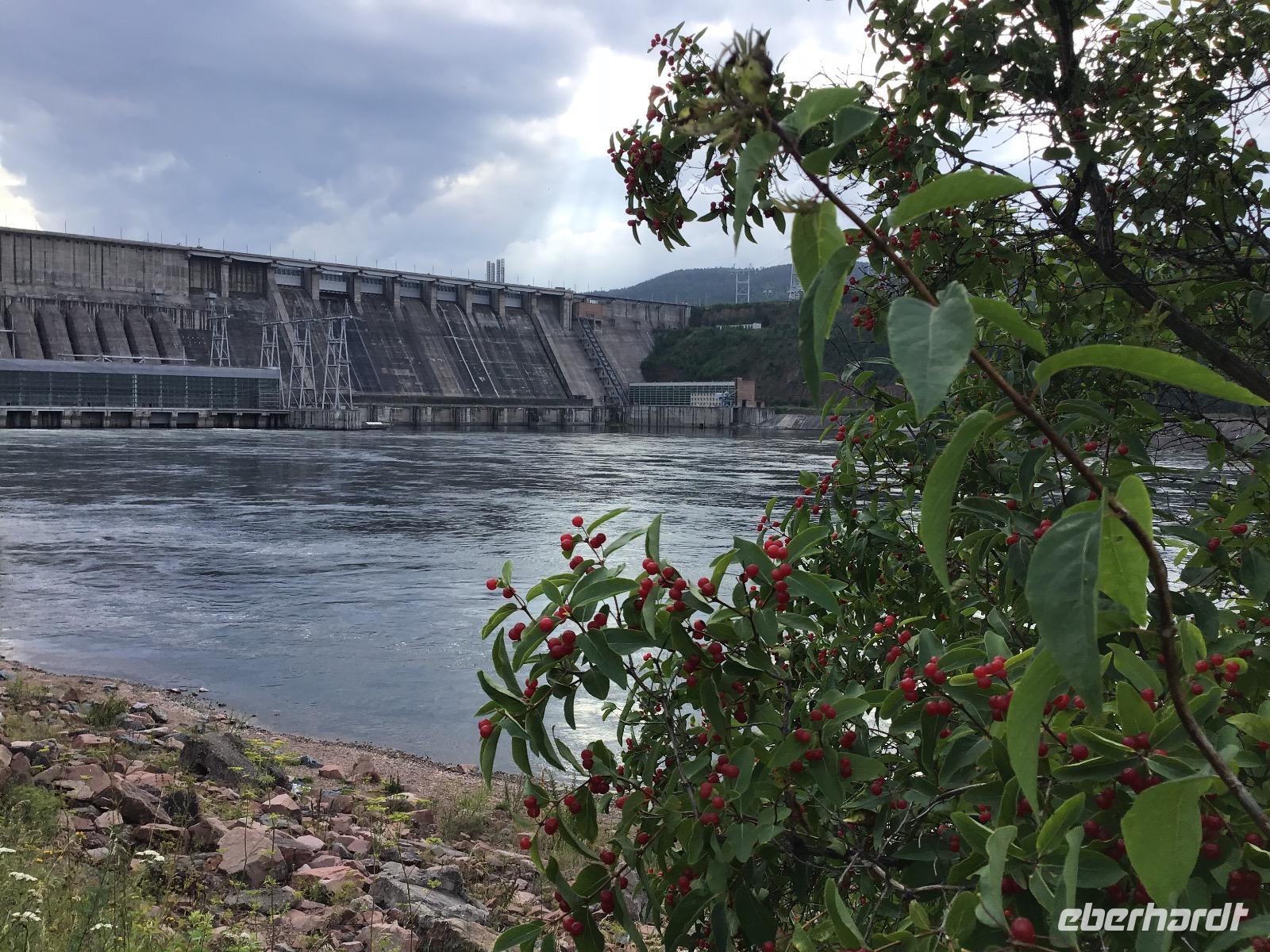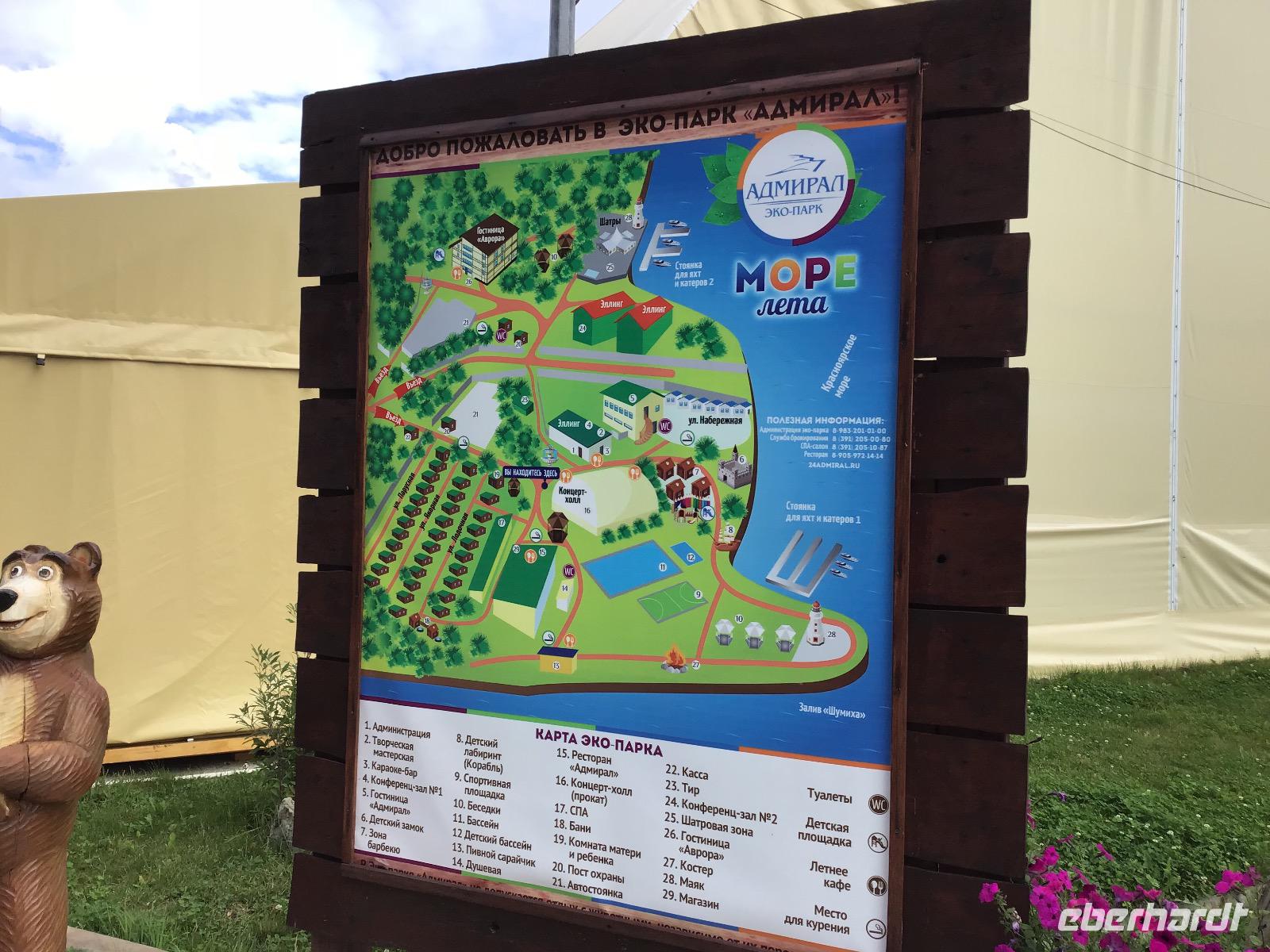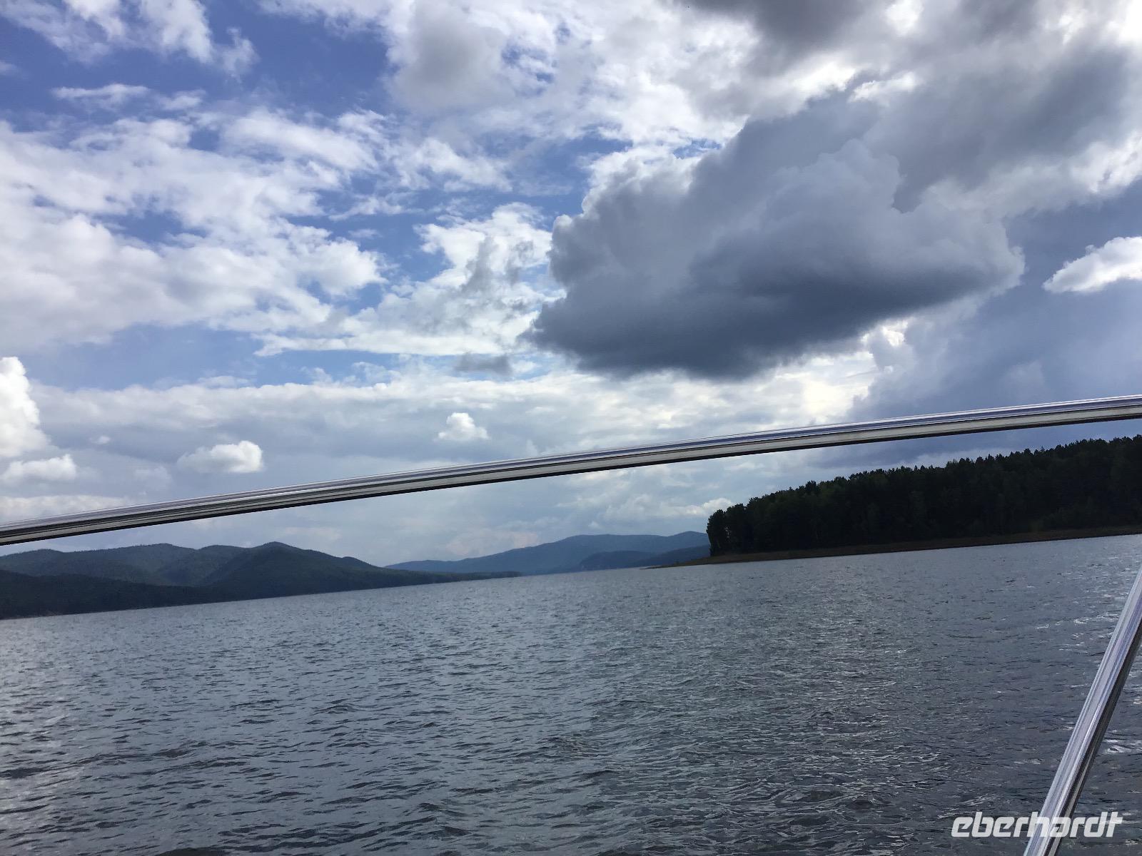 Mittags erreichen wir Krasnojarsk, was bedeutet, dass der Aufenthalt mit einem Mittagessen beginnt. Heute sind wir in einem ukrainischen Restaurant zu Gast. Es gibt Salat, Pelmeni und gegrilltes Fleisch. Gut gesättigt können wir uns auf den Nachmittag freuen. Unser Weg führt uns heute durch eine Region außergewöhnlicher Schönheit. Am rechten Ufer des Jenissej liegt in malerischer Umgebung der Ort Divnogorsk. In diesem wiederum wurde ein Familienerholungspark Namens Admiral errichtet. In der Bucht von Shumikha erwarten uns zwei Jachten, mit denen wir auf dem Stausee, der vor vielen Jahren für die Energiegewinnung errichtet wurde, eine Bootsfahrt unternehmen. Der Himmel ist blau mit weißen Wölkchen, die Ufer gesäumt von Jahrhunderte alten Nadelwäldern. Der Nachmittag vergeht wie im Flug und schon heißt es wieder Abendessen. Vom Restaurant bummeln wir zum Hotel, vor dem sich eine große Springbrunnenanlage befindet. Der Jenissej und seine Angara sowie andere Gestalten dieser Geschichte sind hier figürlich dargestellt. Der Brunnen beeindruckt durch seine Beleuchtung und die Wasserspiele. Ein erholsamer Tag neigt sich dem Ende zu.