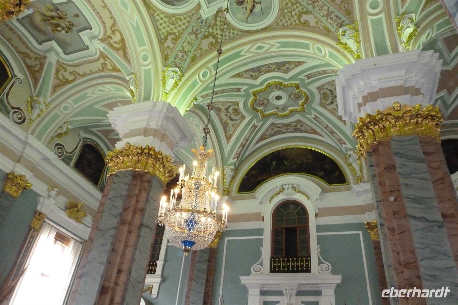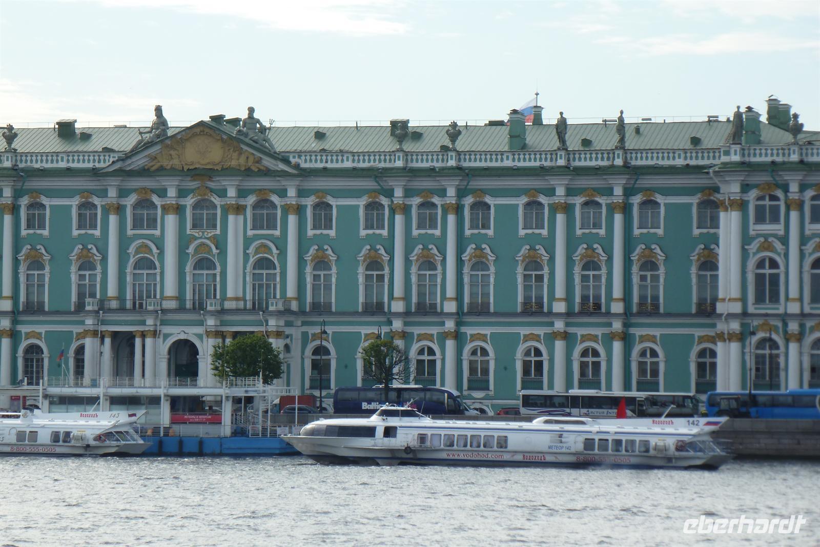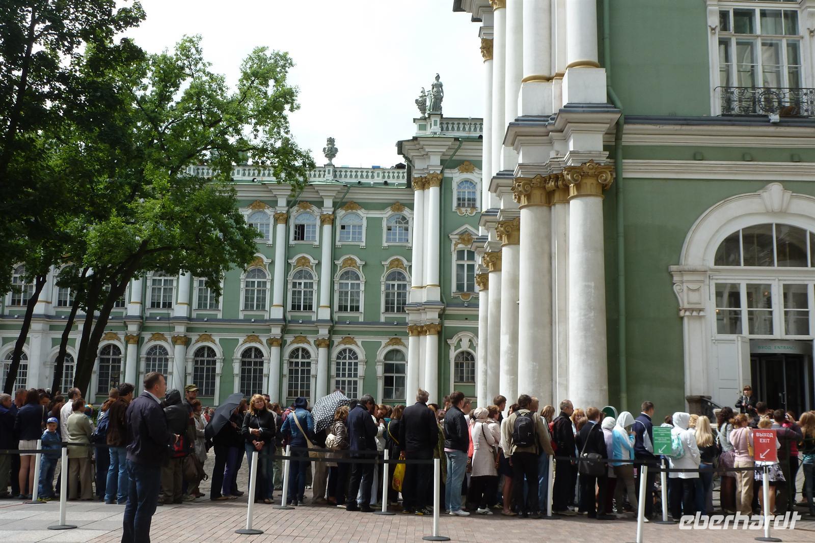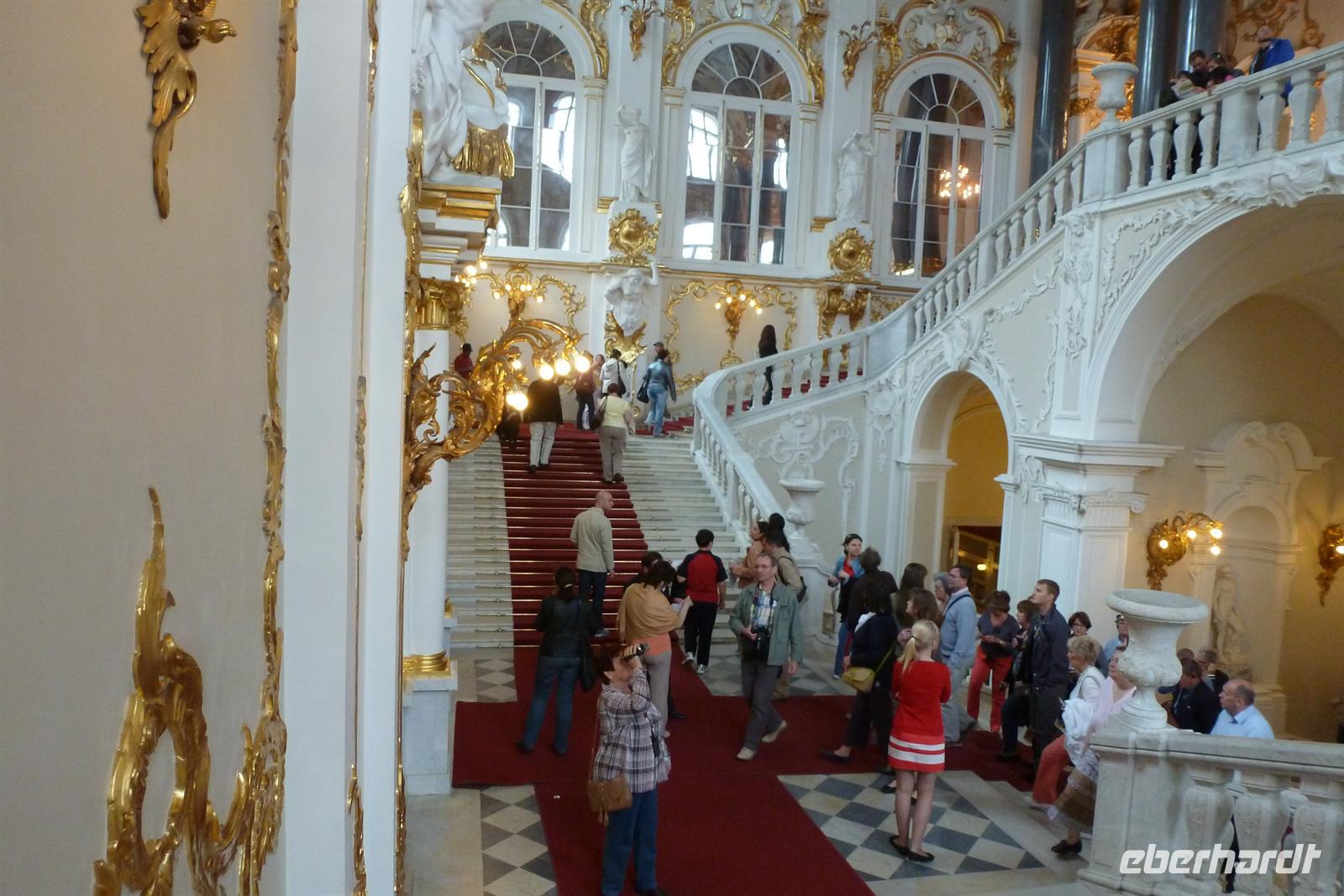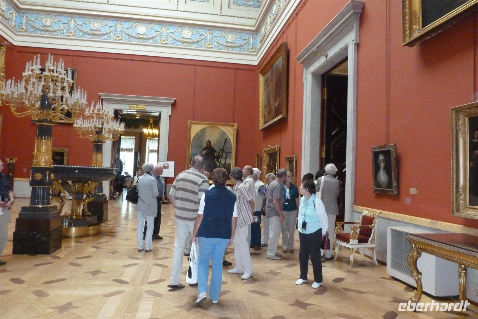 Heute steht der Besuch eines der größten Museen Europas auf dem Programm: die Eremitage, zu deutsch: Einsiedelei. Die Bezeichnung ist absurd angesichts der Menschenmassen, der langen Warteschlangen, des Drängens und des Schiebens und des Lärmpegels. Trotz allem verzagen wir nicht und lassen uns von Natalia durch die Räume mit unschätzbaren Werten führen und bestaunen Gemälde,