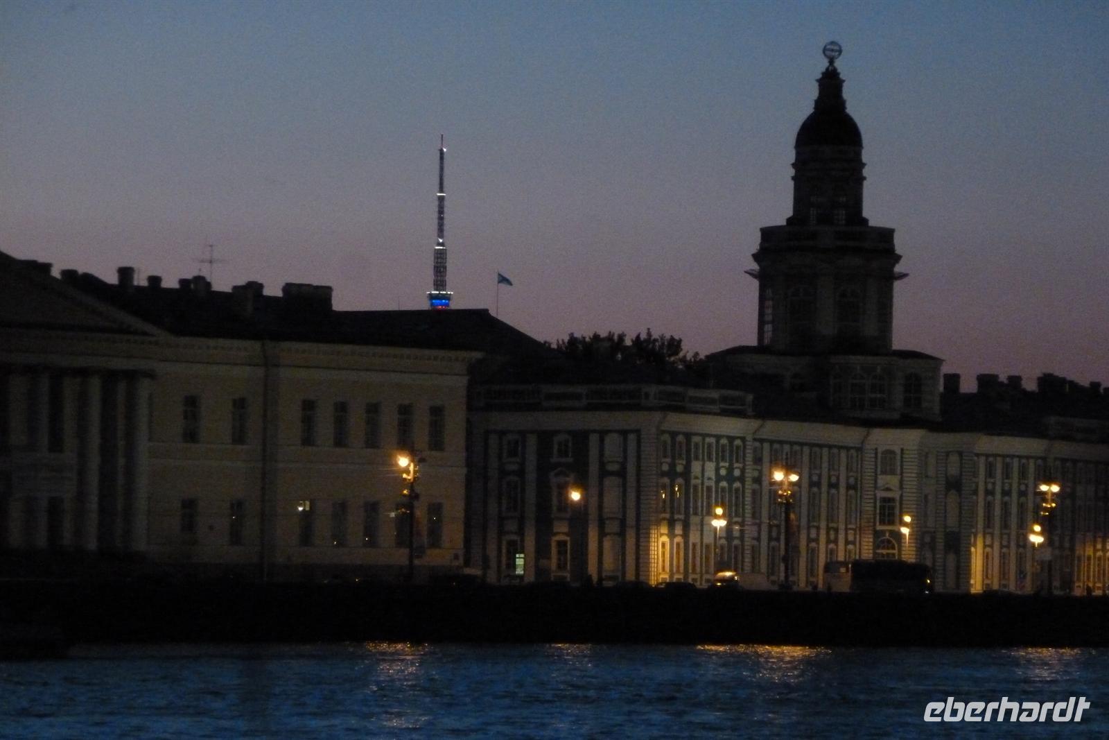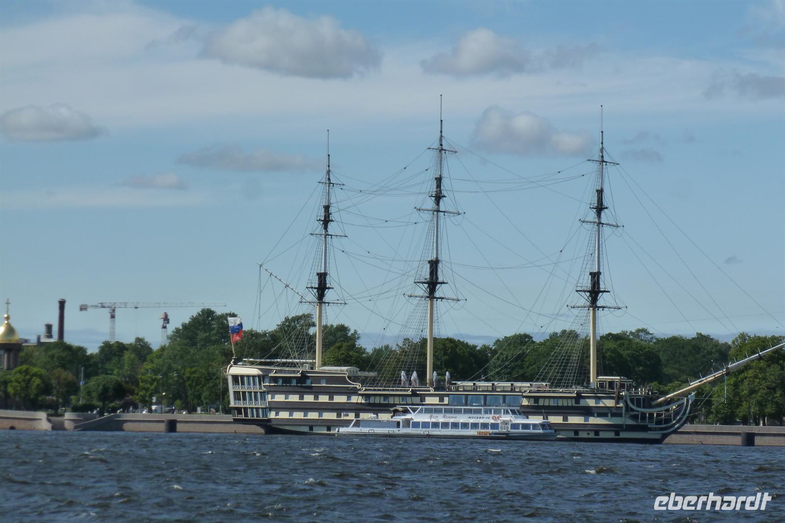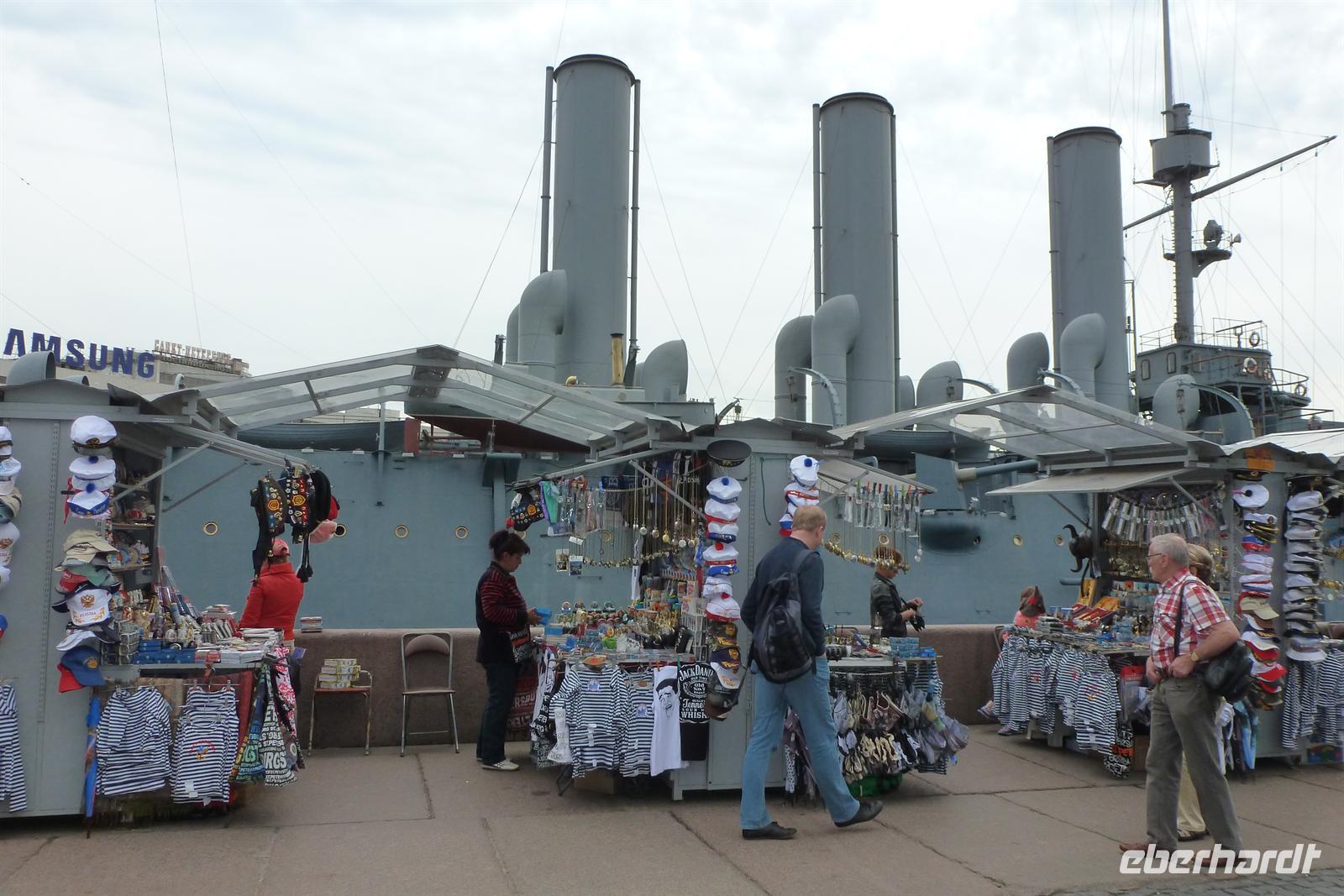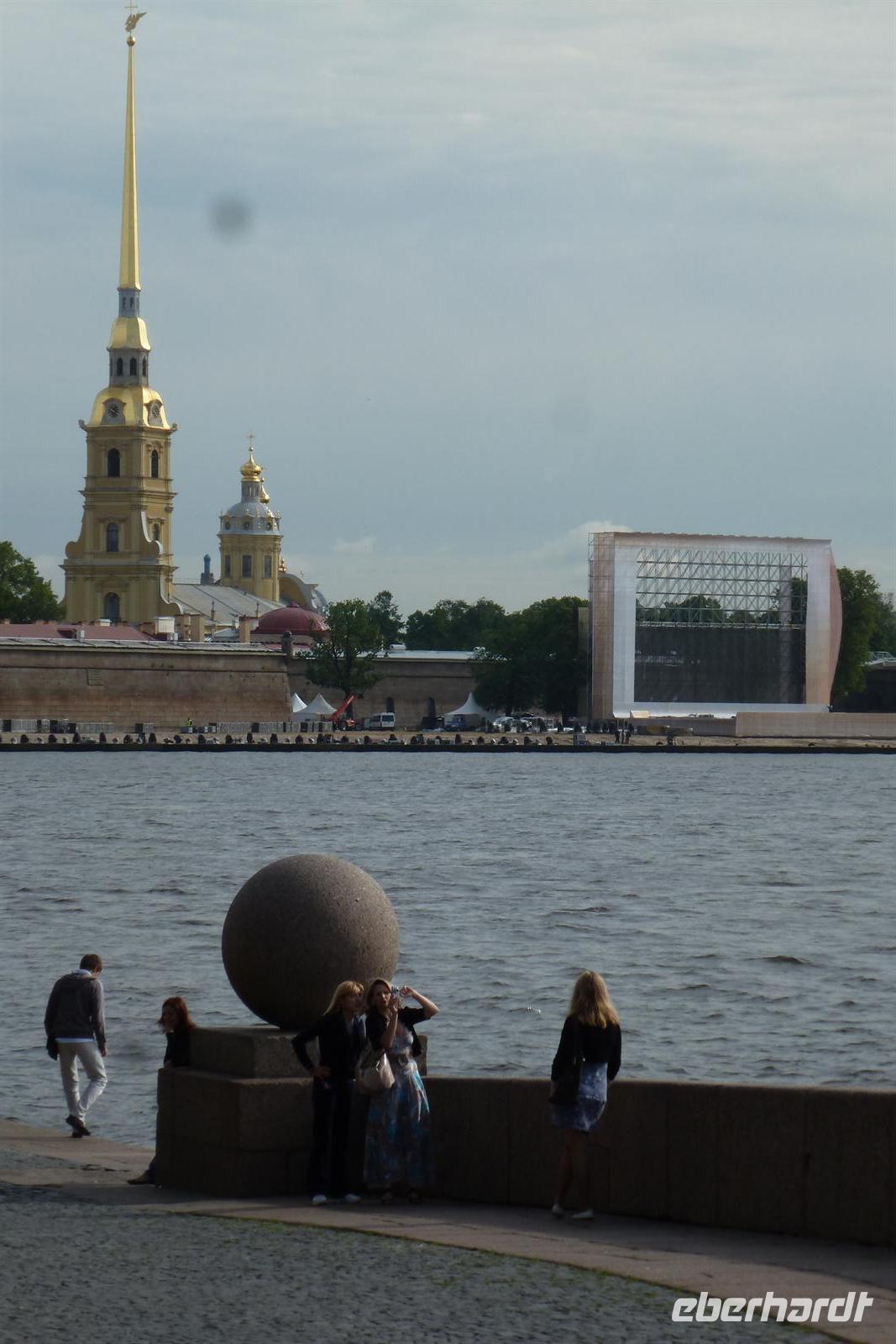 Nach einem köstlichen Frühstück erwartete uns Natalia 10 Uhr im Foyer. Zusammen mit unserem Fahrer Alex starteten wir pünktlich mit unserer erkundenden Stadtrundfahrt durch die prunkvolle Zarenstadt. Unser Weg führte uns zunächst entlang des Messegeländes und Bolschoi-Prospekts in Richtung der Akademie der Künste, der ältesten Kunstakademie Russlands. Erste schöne Aufnahmen schossen wir am östlichen Zipfel der Wassiljewski-Insel. Von dort genossen wir einen herrlichen Blick auf den Winterpalast und die Peter-und Paul-Festung. Anschließend passierten wir das Marinemuseum und das ehemalige Waffenarsenal der Stadt, ehe wir den berühmten Gegenstand eines jeden Geschichtsunterrichts aus DDR-Zeiten erreichten: den Kreuzer Aurora. Über die Freiheitsbrücke hinweg, entlang der Konzerthalle und des als „Kreuz“ bezeichneten Gefängnisses erreichten wir den Leninplatz mit dem finnischen Bahnhof. Von dieser Station ausgehend starten zahlreiche Zugverbindungen in Richtung Helsinki. Über den berühmten Newski Prospekt mit seinen zahllosen Boutiquen, Kneipen, Restaurants und dem größten Kaufhaus der Stadt erreichten wir am frühen Nachmittag die Peter- und Paul-Festung.