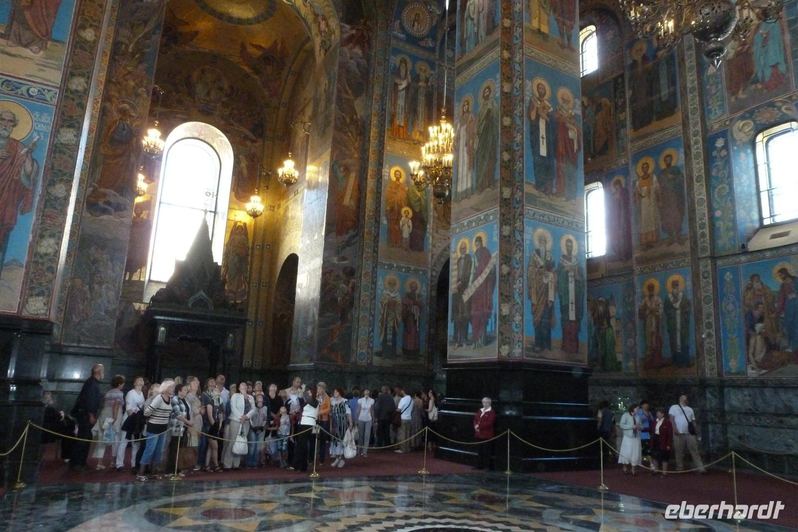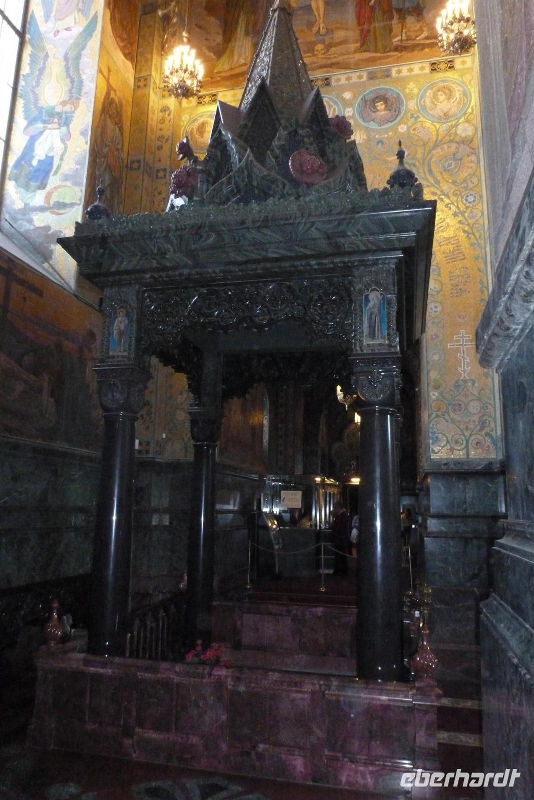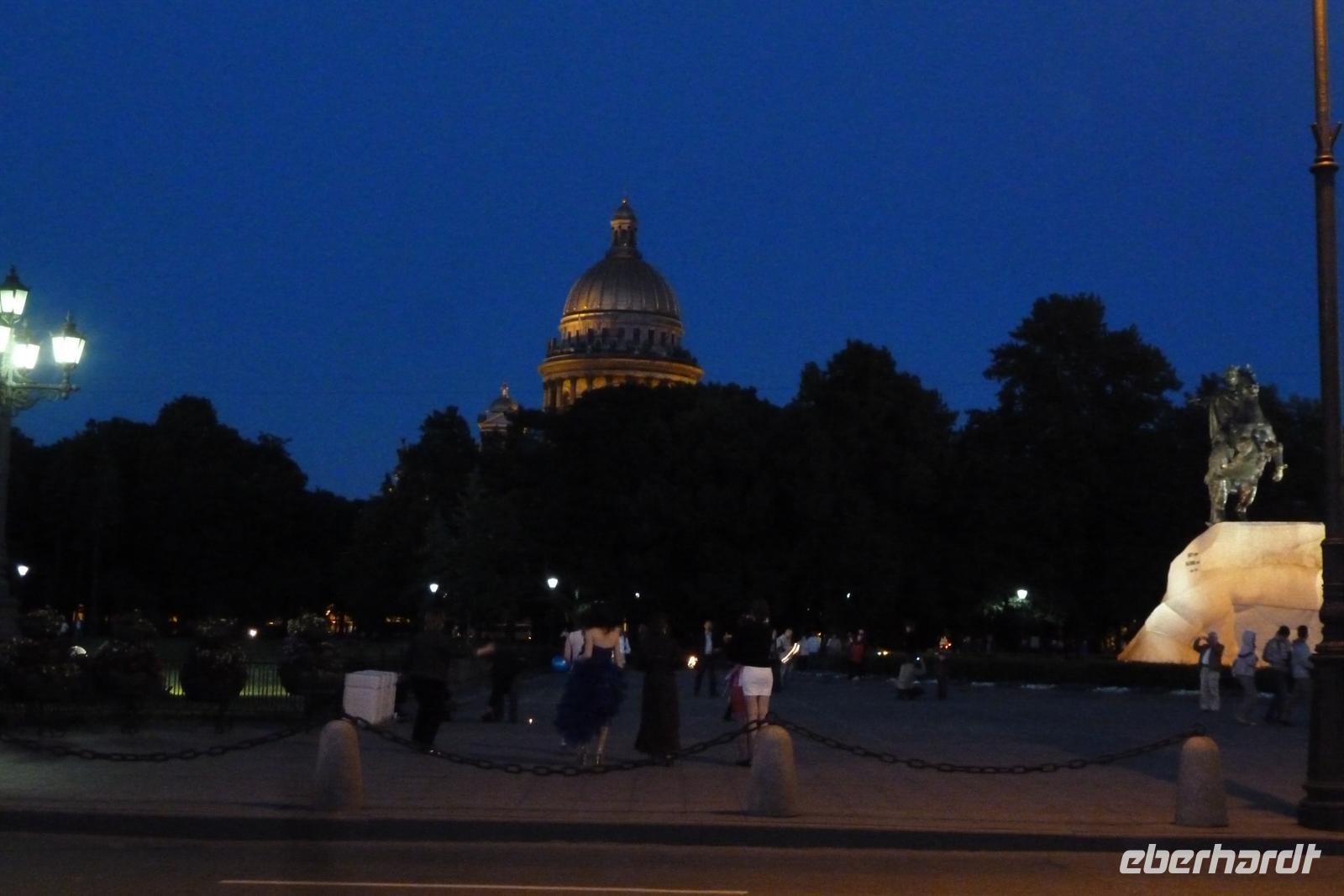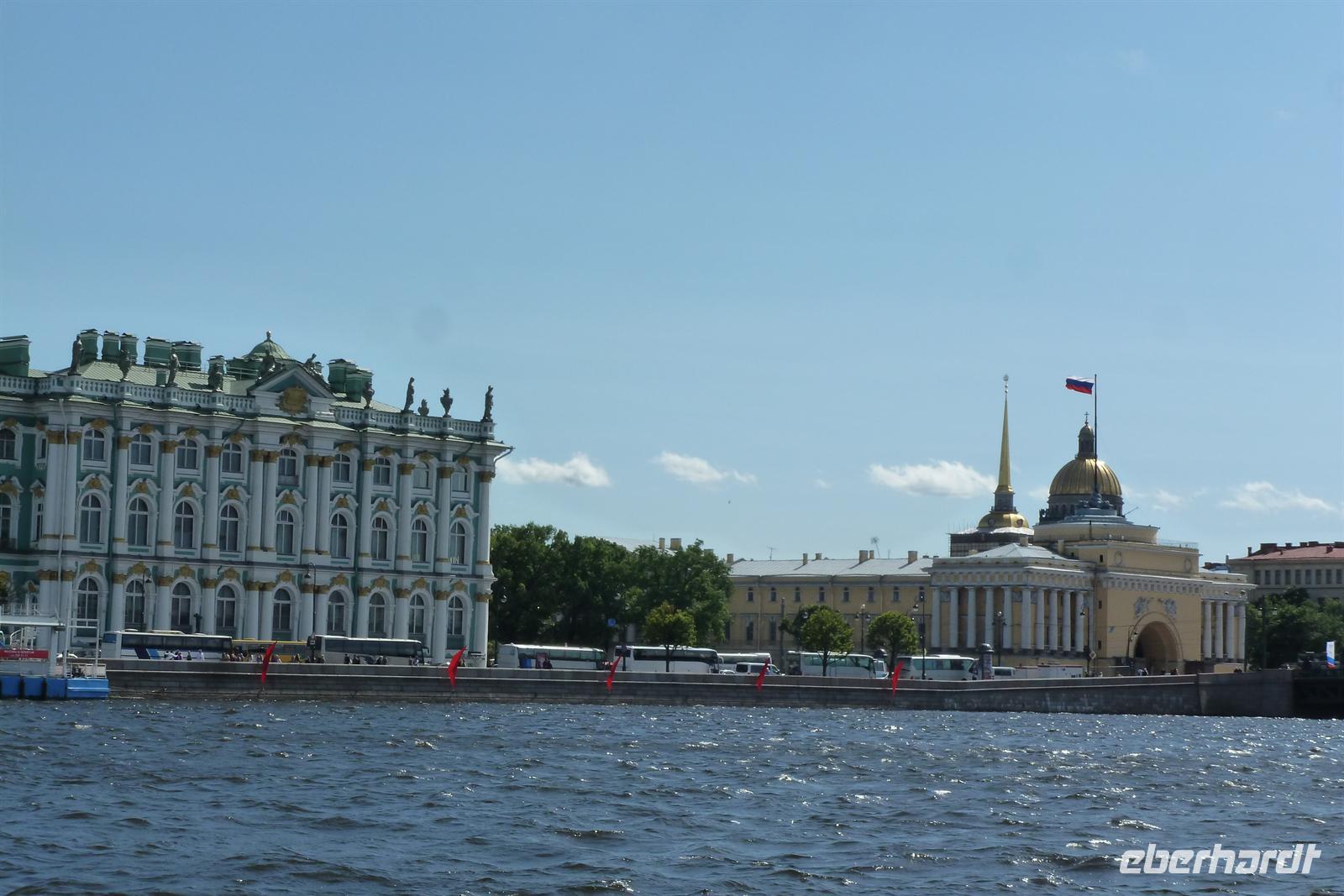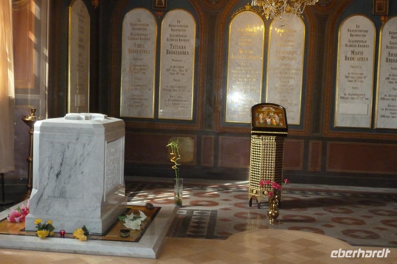 Mächtig erhebt sich die Peter-und-Paul-Kathedrale vor uns, deren goldene schlanke Turmnadel zum Wahrzeichen der Stadt wurde. Die Kathedrale selbst ist die Grablege der Zarenfamilie Romanow und in der Katharinenkapelle ganz in der Nähe des Haupteingangs wurde 1998 in einer feierlichen Zeremonie die Familie des Zaren Nikolaus II.beigesetzt.
