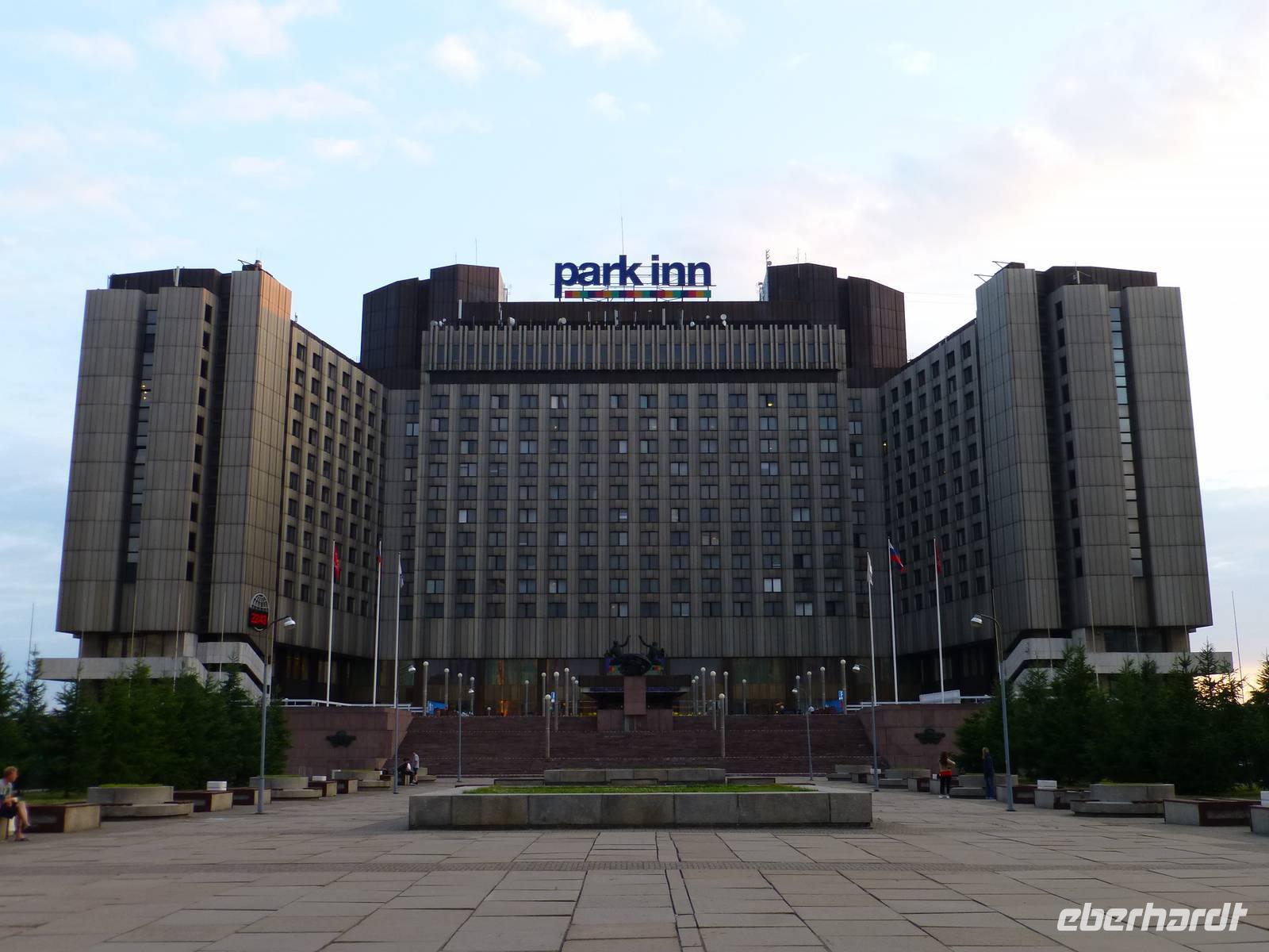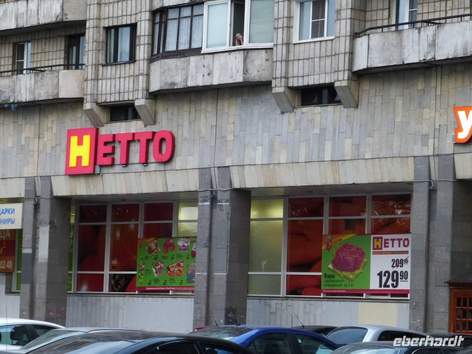 Etwa um 20 Uhr erreichten wir unser Hotel, das Park Inn Pribaltiskaya. Mit Natalia checkten wir ein, nahmen unsere Zimmerkarten entgegen und verstauten erst einmal unser Gepäck und erfrischten uns, bevor es dann zum Abendessen in das Restaurant des Hotels ging. Da es in St. Petersburg erst um 0 Uhr dunkel werden sollte, nutzten viele von uns die Zeit nach dem Abendessen, um die Umgebung des Hotels zu erkunden. Besonders nett fand ich beispielsweise den Netto direkt neben unserem Hotel...