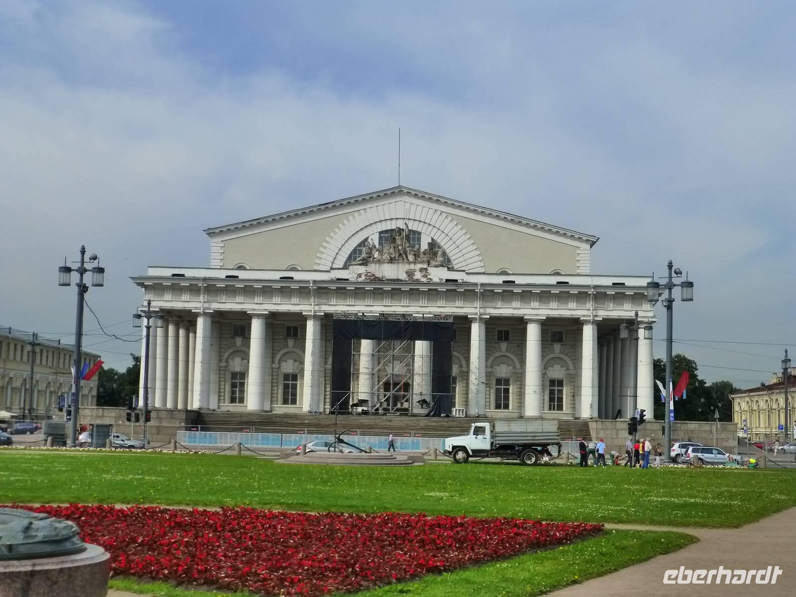 Ein letztes Mal konnten wir nach dem Jussupow-Palast noch ein wenig freie Zeit genießen, wir fuhren gemeinsam mit dem Bus zum Ostrowski-Platz direkt am Newski-Prospekt. Dort konnten wir uns für eine weitere Stunde umsehen, viele von uns sahen sich das nahe gelegene Spezialitätengeschäft Jelissejew mit seiner berühmten Jugendstileinrichtung an.