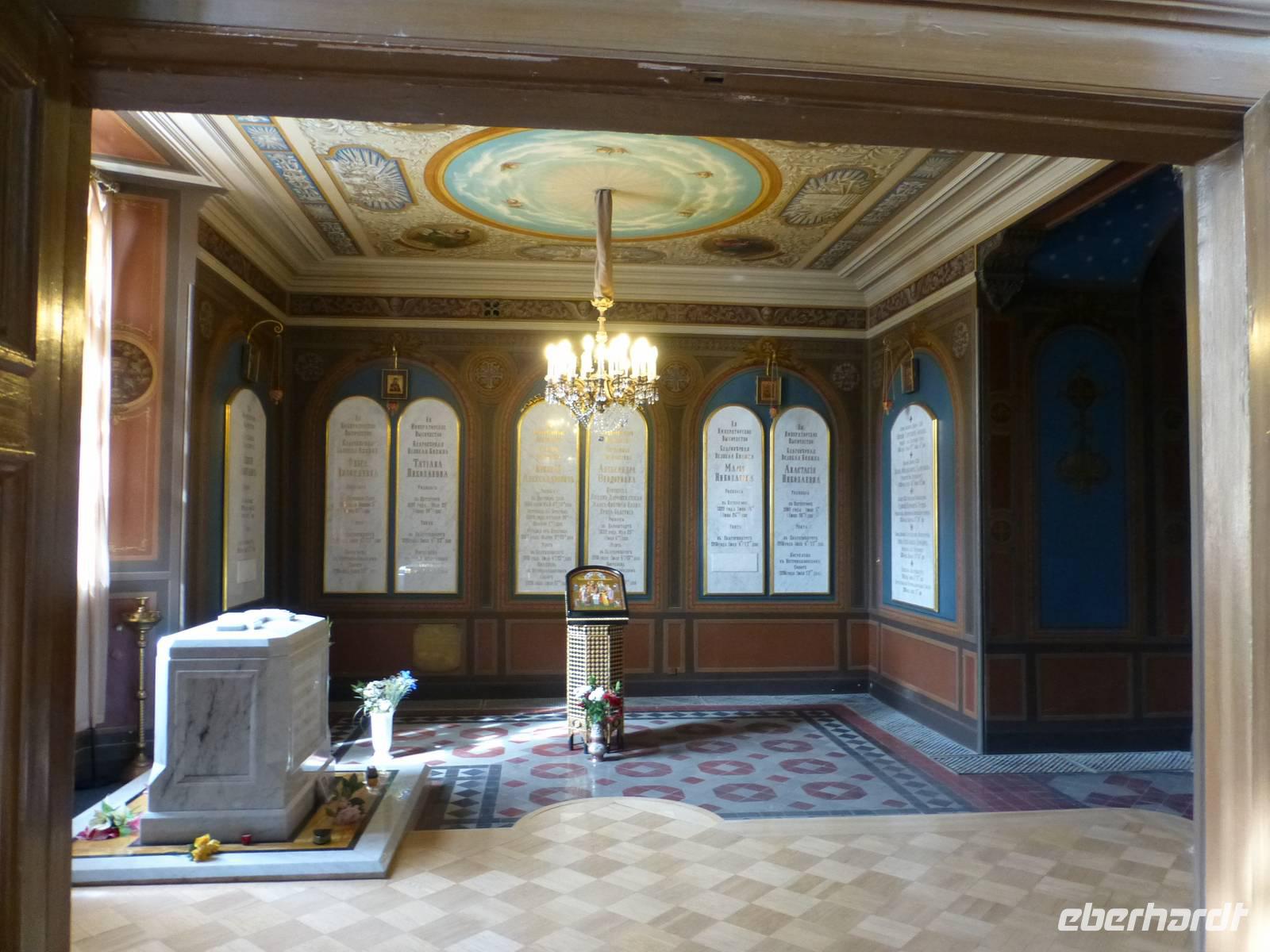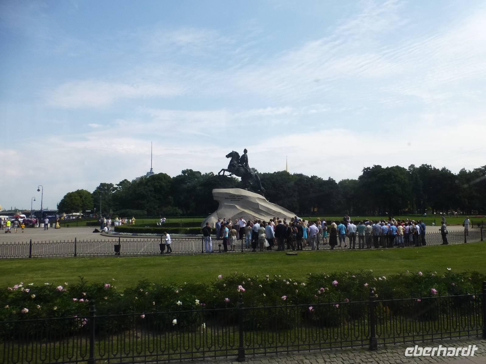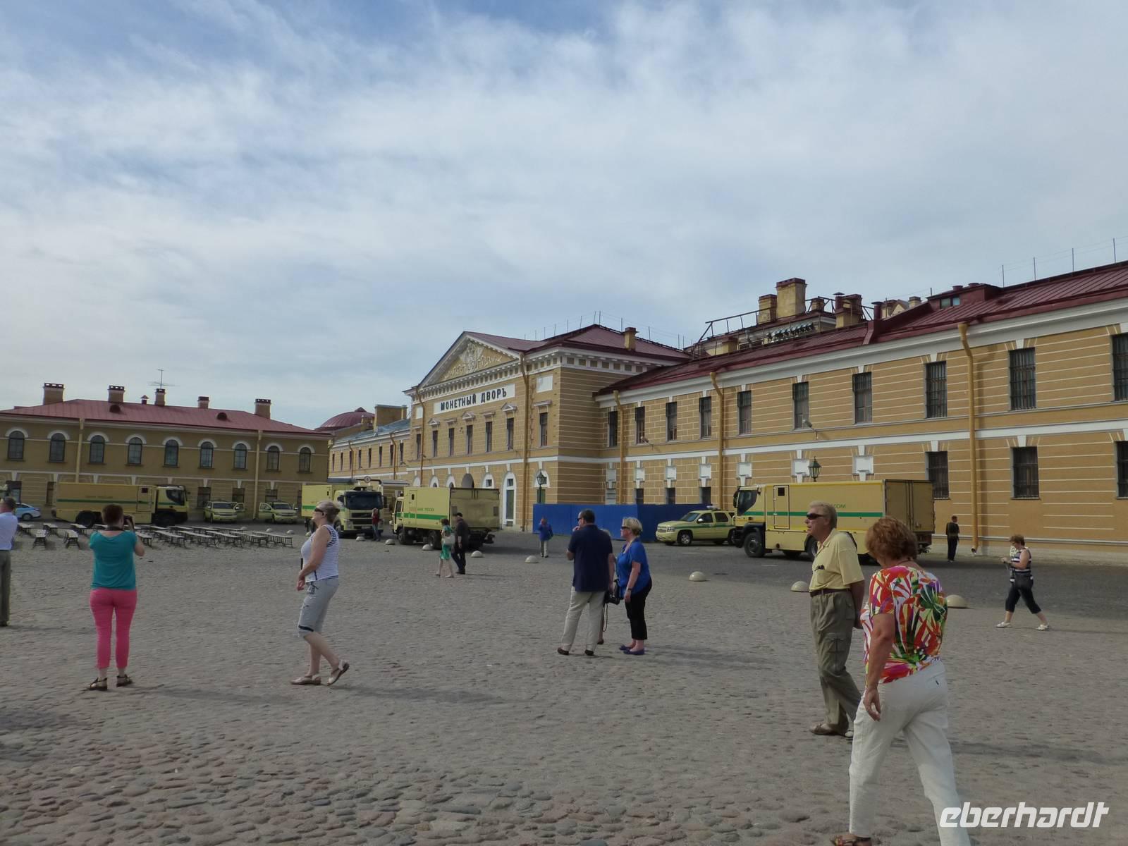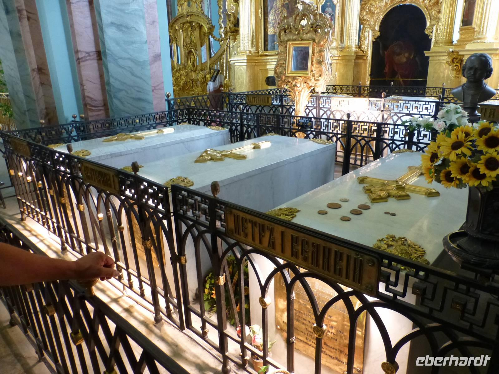 Mit Betreten der Peter-und-Pauls-Kathedrale lernten wir erstmals den besonderen Prunk St. Petersburgs zur Zarenzeit kennen, die Kirche war reichlich geschmückt und goldverziert. Ein ganz besonderes Highlight waren die Gräber der Zaren, die in der Kathedrale beigesetzt worden waren. Noch ganz beeindruckt verließen wir die Kathedrale und machten uns auf den Weg zum Bus für die Fortsetzung der Stadtrundfahrt.