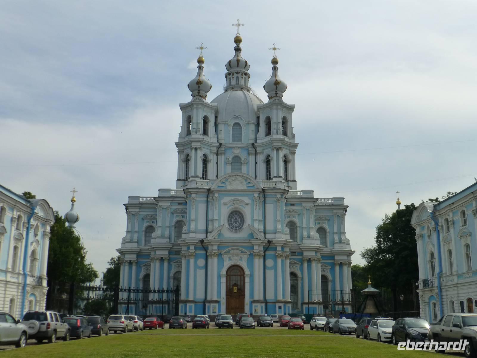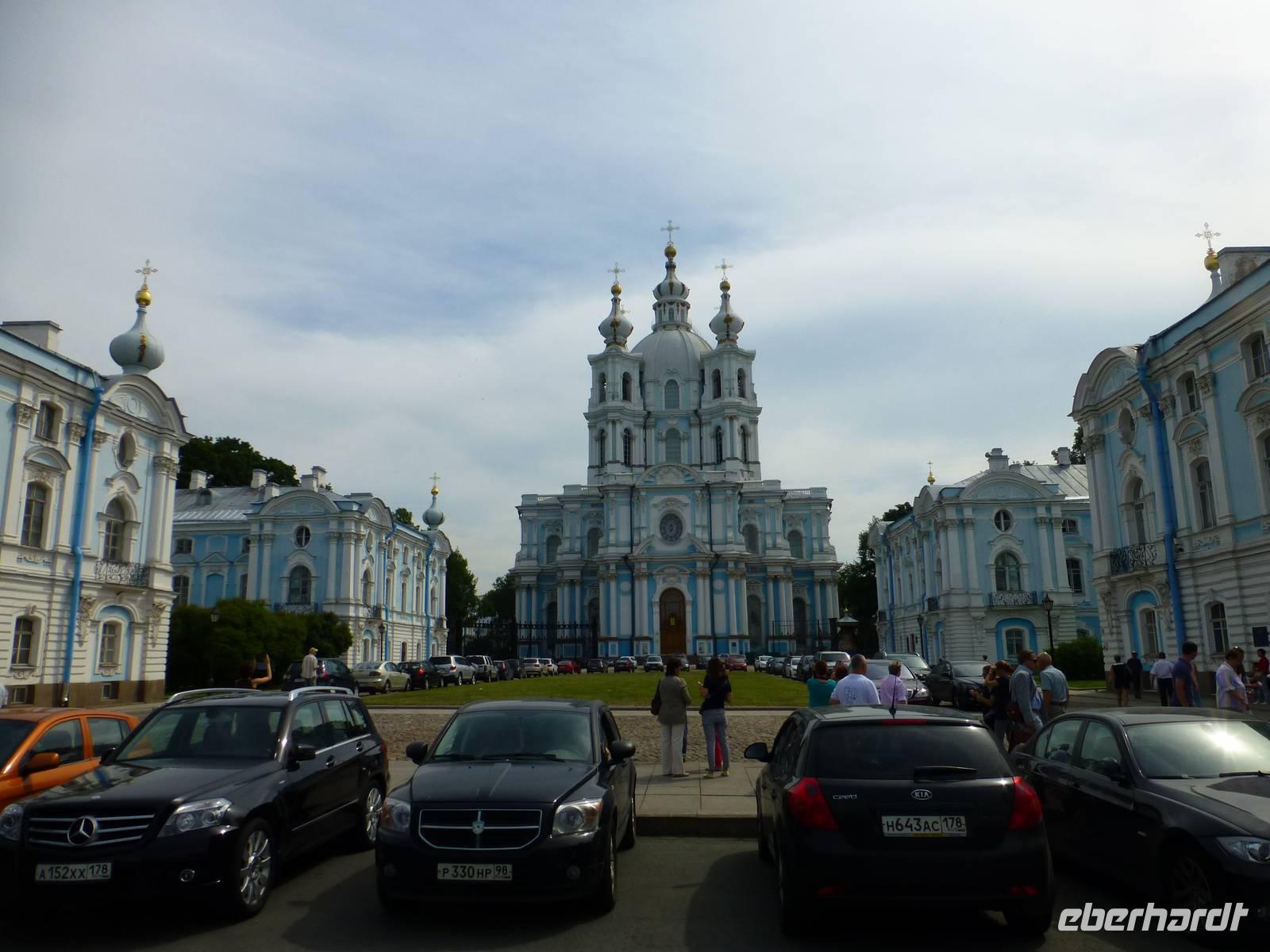 Nach der Pause ging es weiter zum Smolny-Kloster, einer Bildungsanstalt für adlige Mädchen. Von dort fuhren wir weiter zur Blutskirche, um auch dort einen kleinen Fotostopp einzulegen. Natürlich fotografierten einige von uns auch das frisch verheiratete Ehepaar, das mit einer langen Limousine vor der Blutskirche vorgefahren war.
