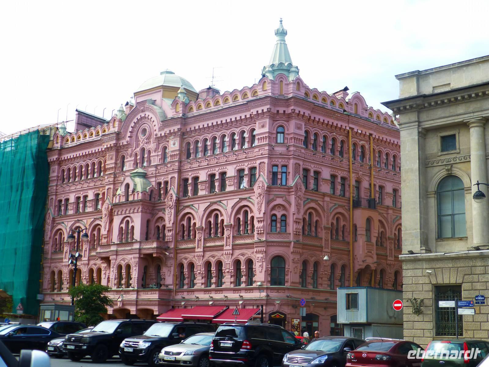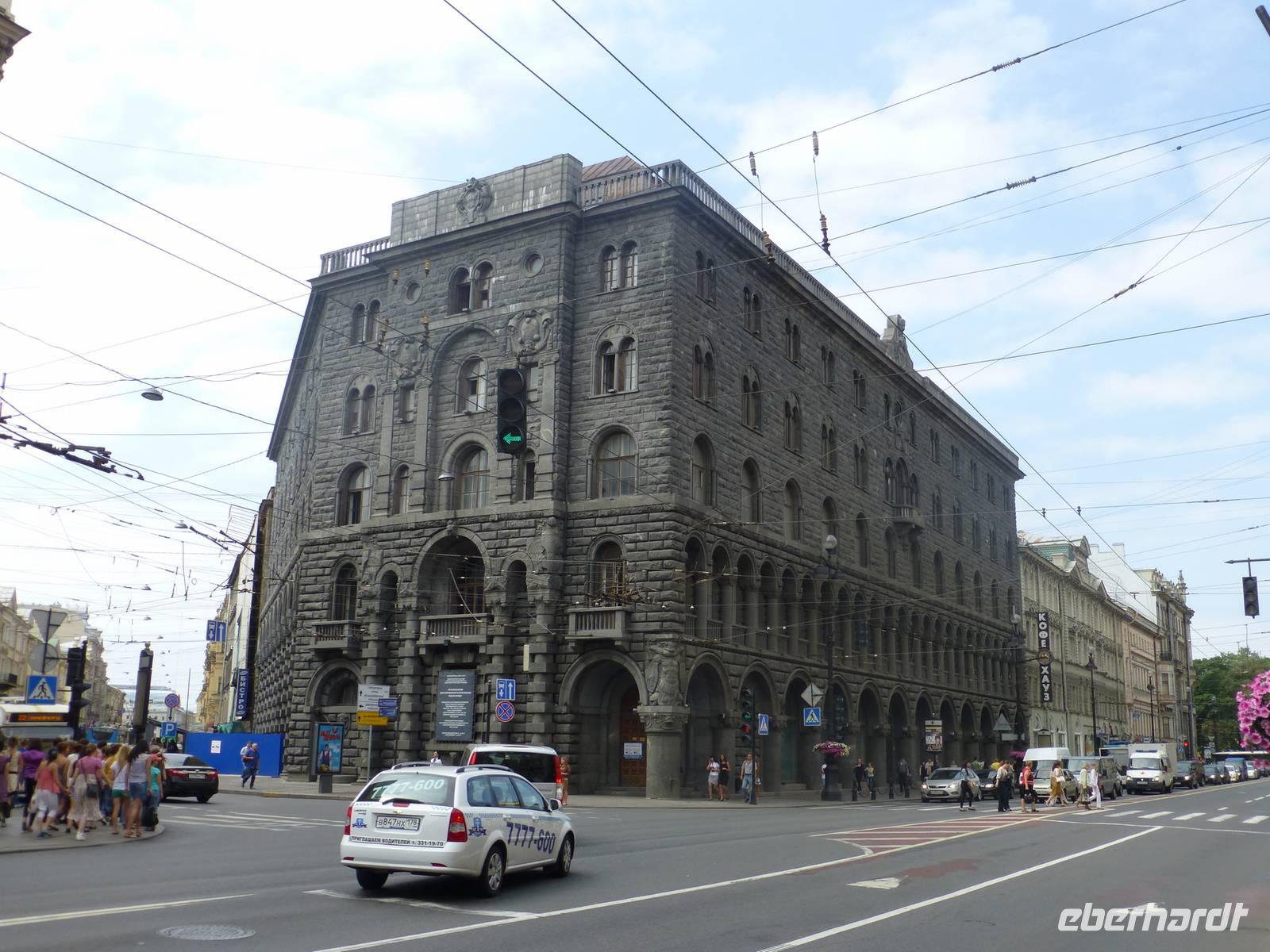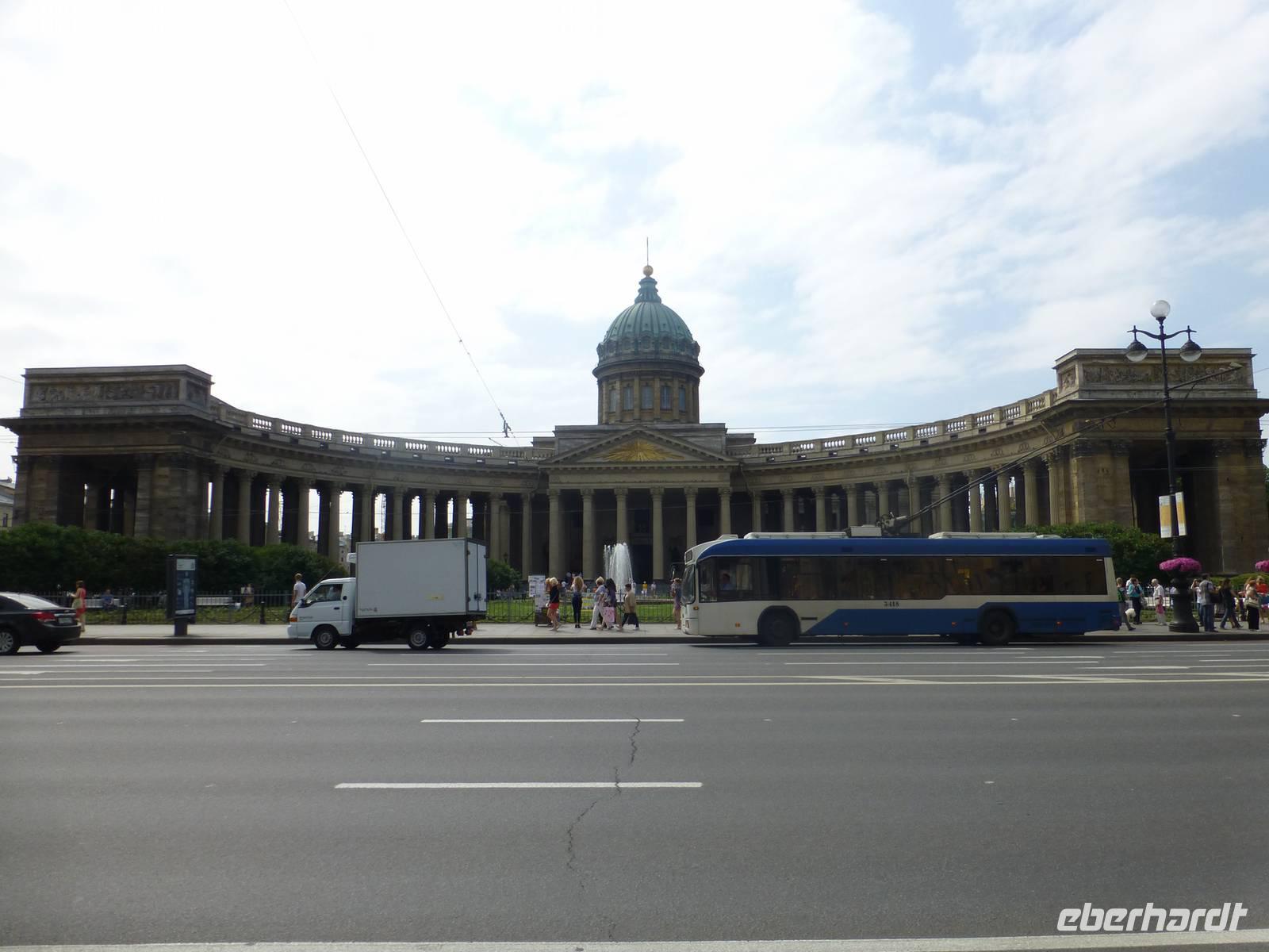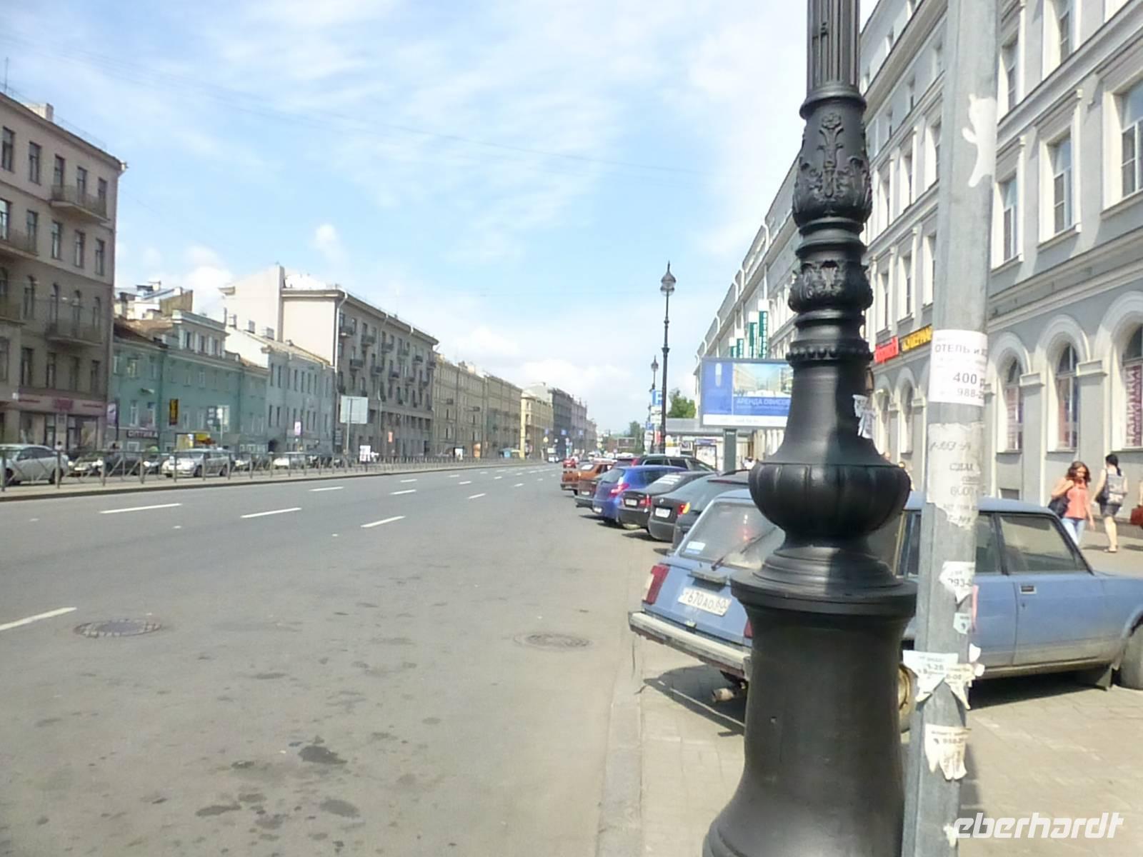 Nach unserem Kurzausflug in das Souvenirgeschäft fuhren wir weiter zur Hauptstraße der Stadt, dem Newski-Prospekt. Im Vorbeifahren bestaunten wir die Kasaner-Kathedrale, bevor wir am Hotel Europa abbogen und in der parallel zum Newski-Prospekt verlaufenden Italyanska anhielten. In der italienischen Straße hatten wir Zeit, um entweder einen Teil des Newski-Prospekts zu erkunden, oder dort gemütlich zu Mittag zu essen.