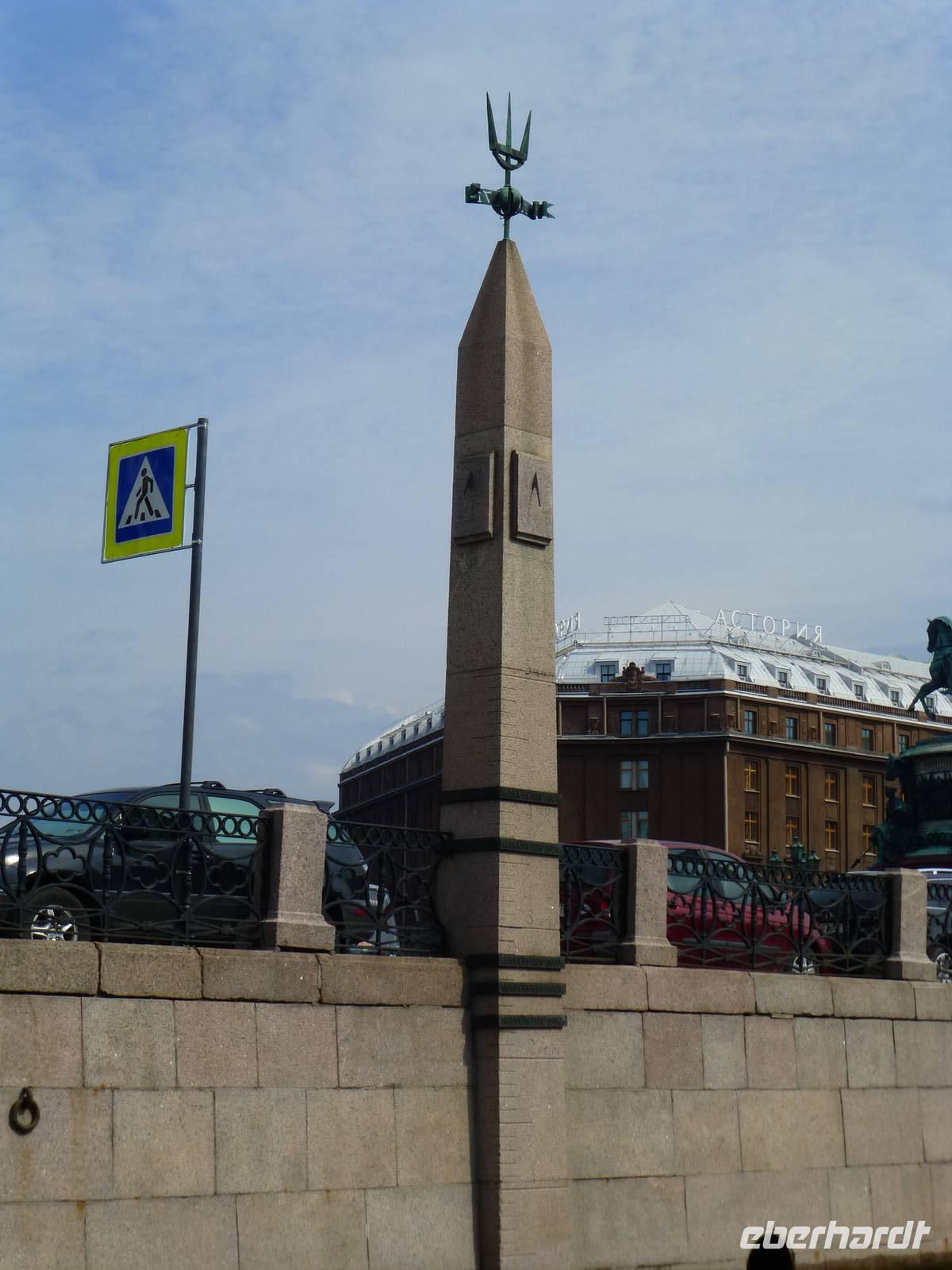 Am nächsten Morgen hatten wir genug Zeit, um in Ruhe zu frühstücken, denn erst um 9.30 Uhr holte uns Natalia am Hotel ab. Für diesen ersten Tag stand eine große Stadtrundfahrt auf dem Programm, viel Zeit im Bus also. Wir fuhren vom Norden der Wassiljewski-Insel durch das Gebiet, das einst das Venedig des Nordens werden sollte und an der Maria-Himmelfahrtskirche zur Leutnant-Schmidt-Brücke. Von dort hatten wir einen fabelhaften Ausblick entlang des Newa-Ufers der Stadt. Wir überquerten den Fluss und fuhren vorbei am Arbeiterplatz bis zum Isaaksplatz. Wir hielten direkt an der blauen Brücke, der breitesten Brücke der Welt, erhaschten einen ersten Blick auf die Isaaks-Kathedrale und schossen jede Menge Fotos des Denkmals von Nikolaus I, dem Hotel Astoria und dem Marienpalast. Was für ein toller erster Stopp!